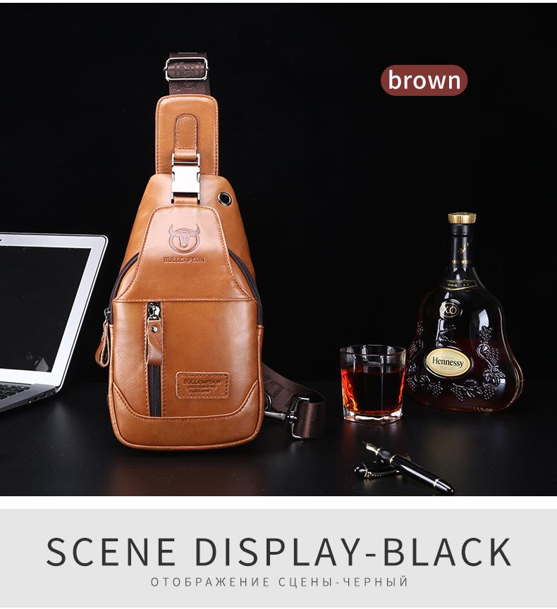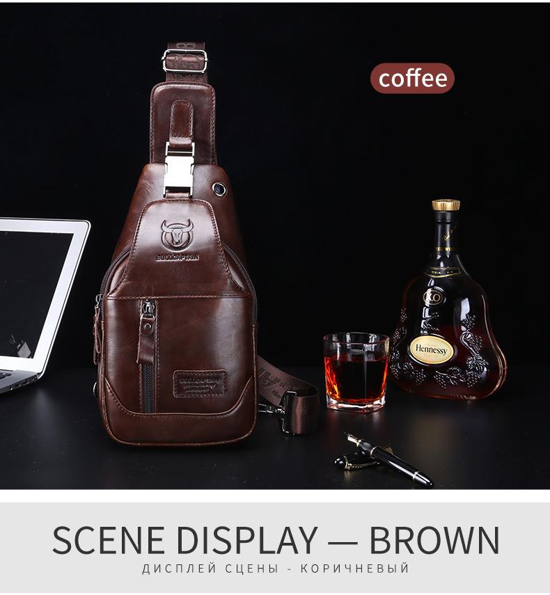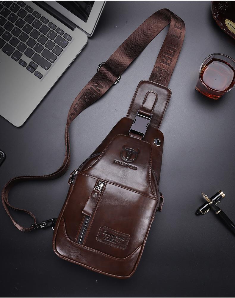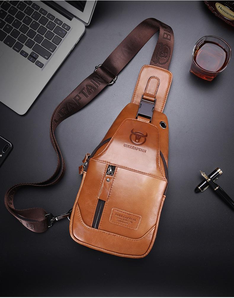 牛船长皮具BULLCAPTAIN头层牛皮男真皮单肩斜挎休闲真皮胸包