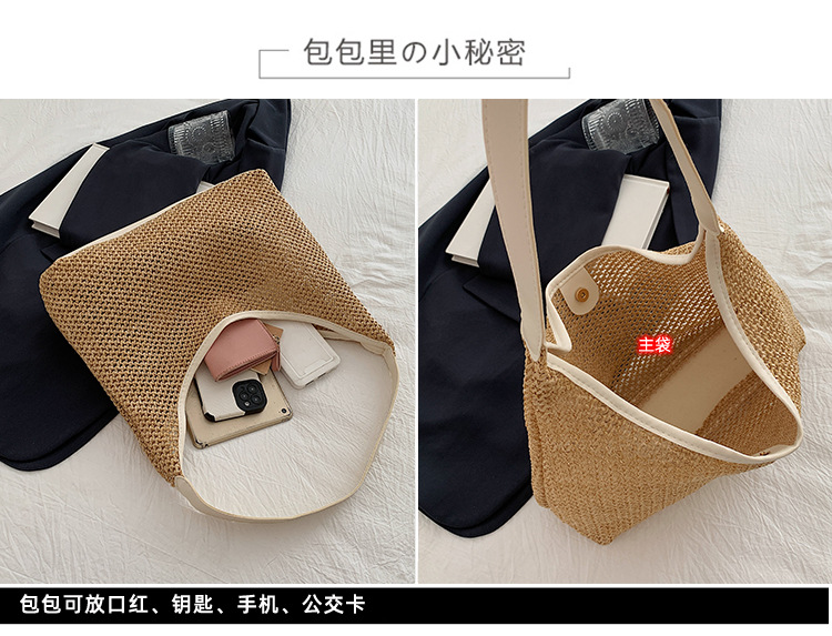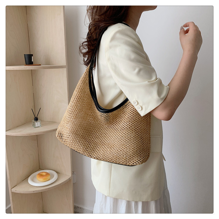 【复古托特包】复古编织托特包草编包大容量腋下包单肩包度假风沙滩包女。ya