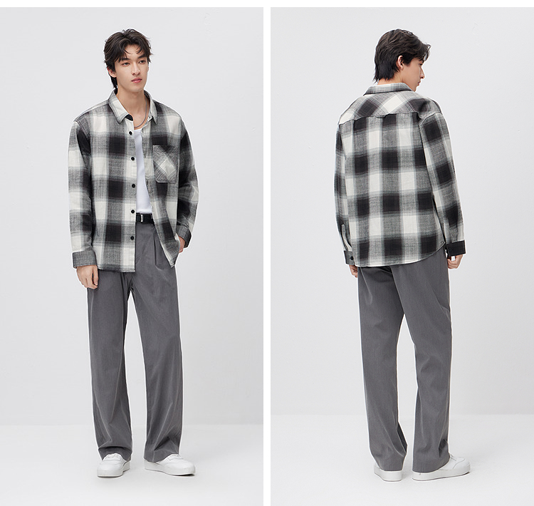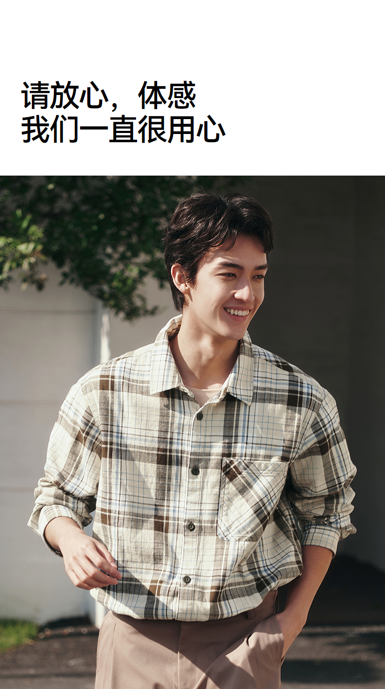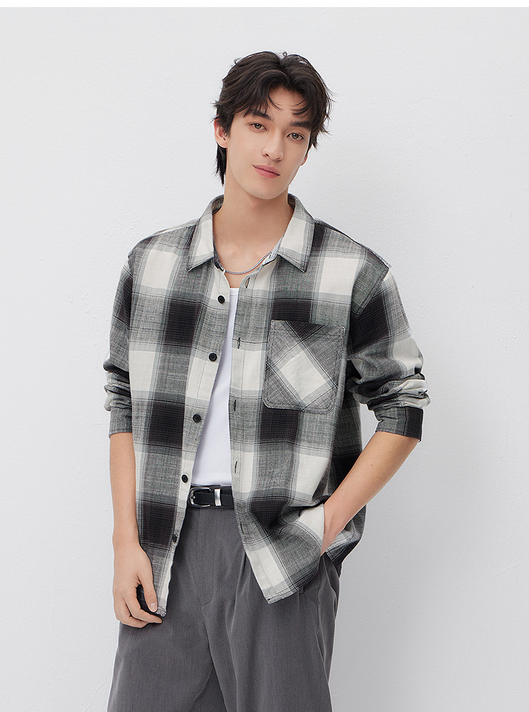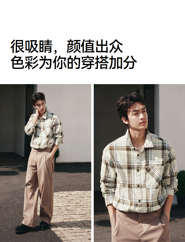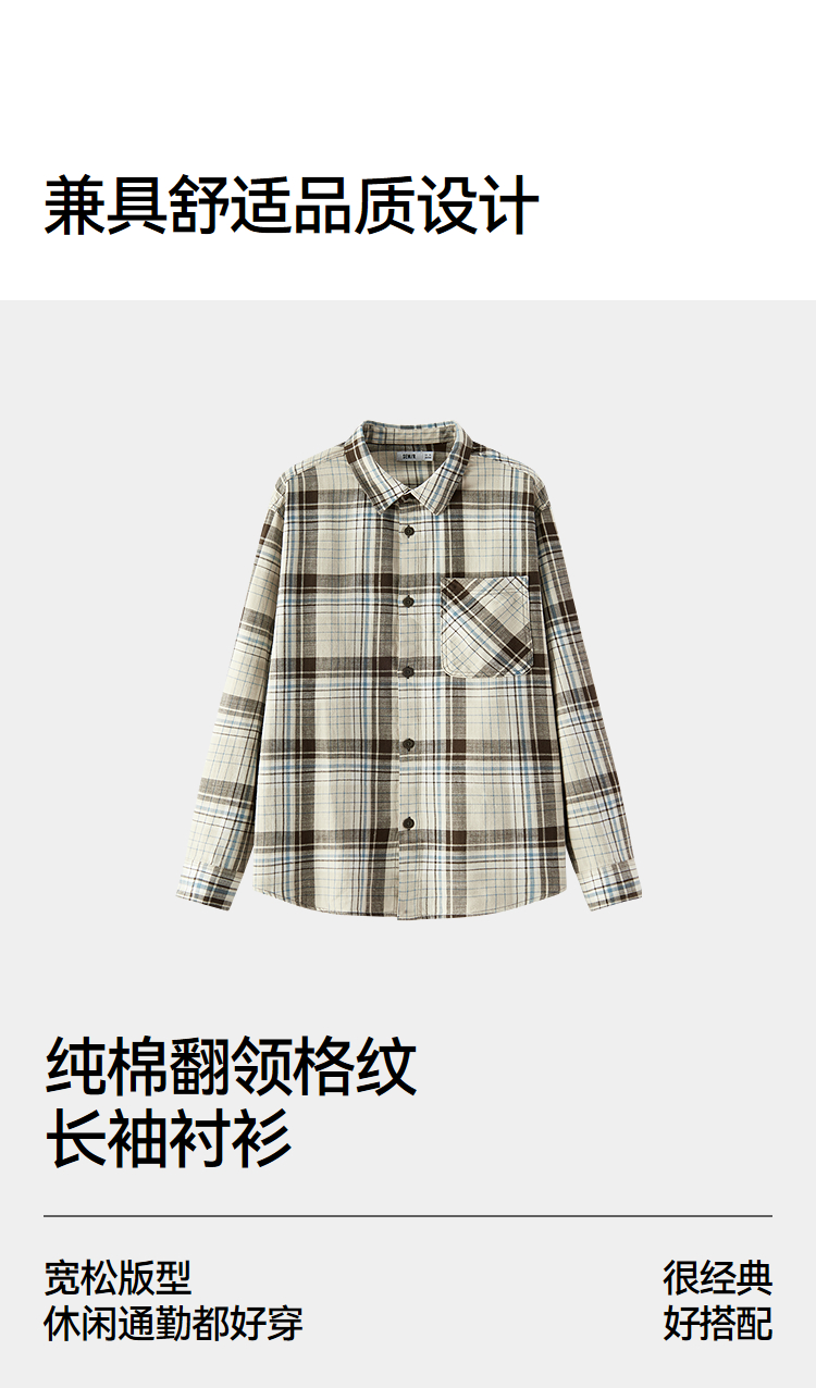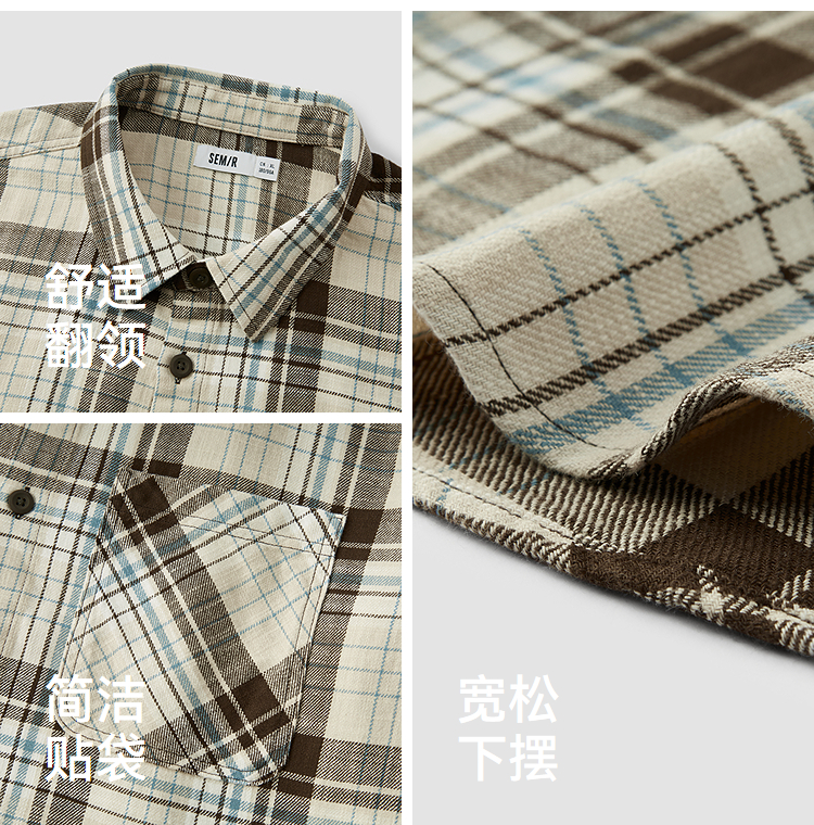 森马长袖衬衫男春季纯棉格纹外套宽松翻领外穿式上衣休闲通勤百搭