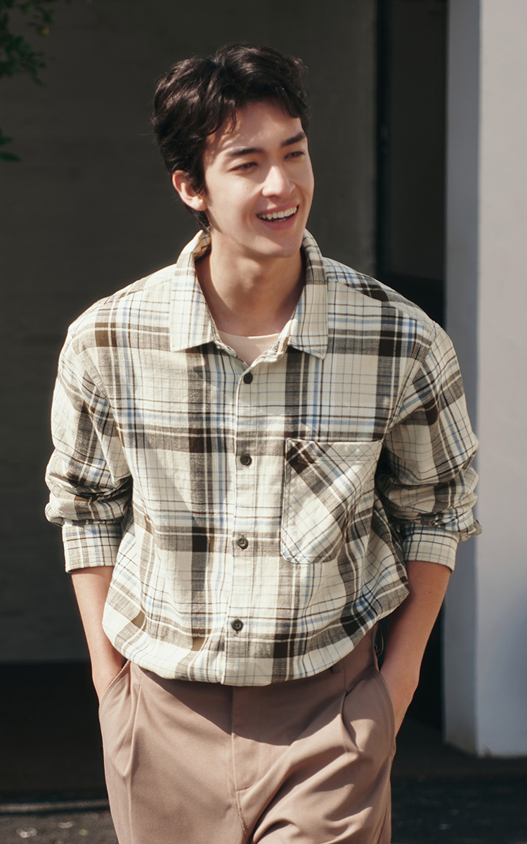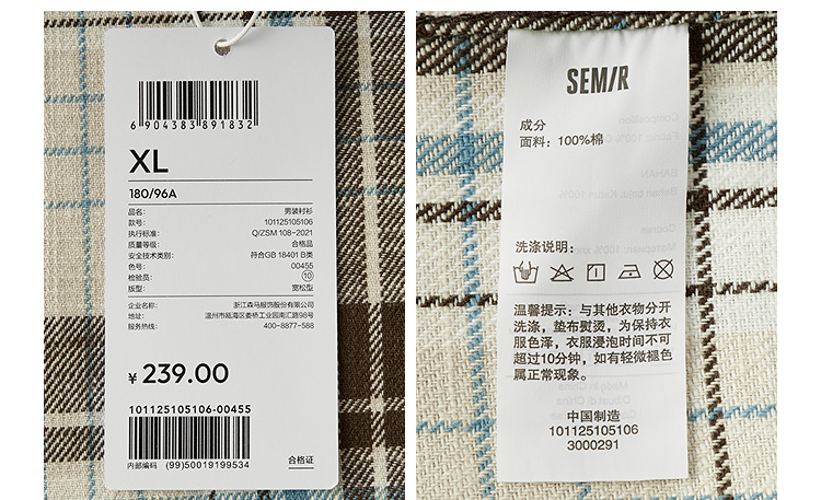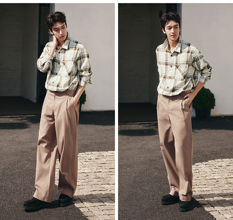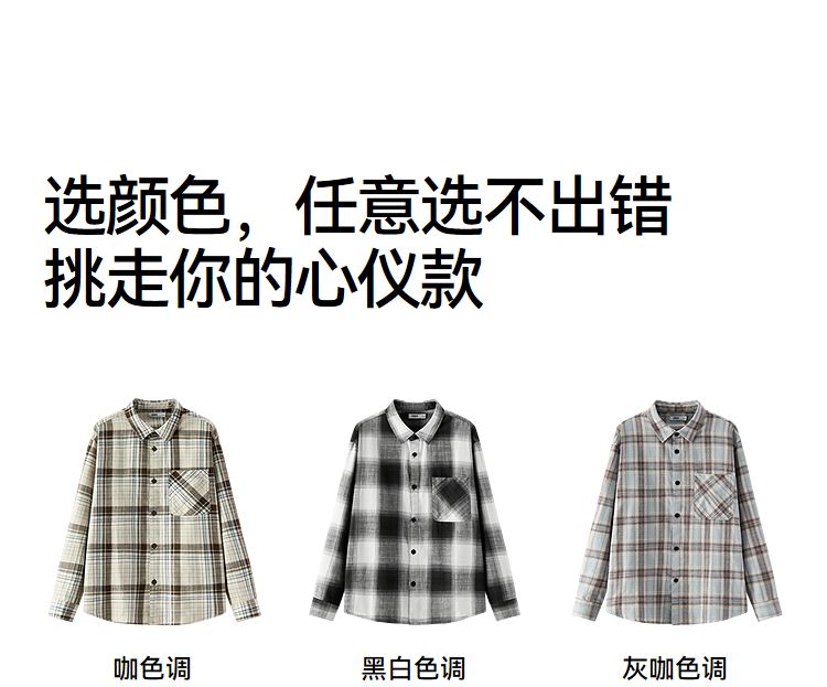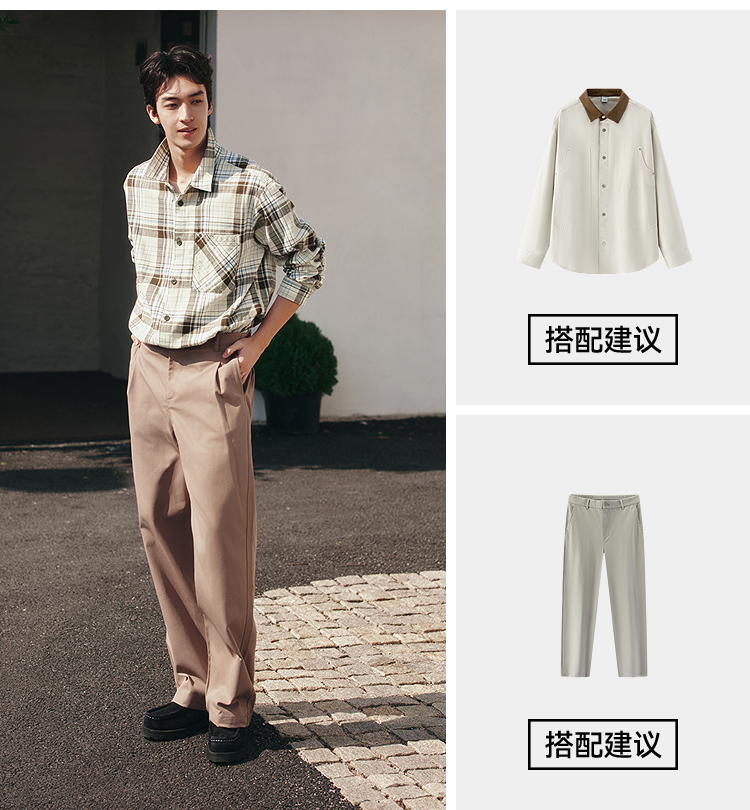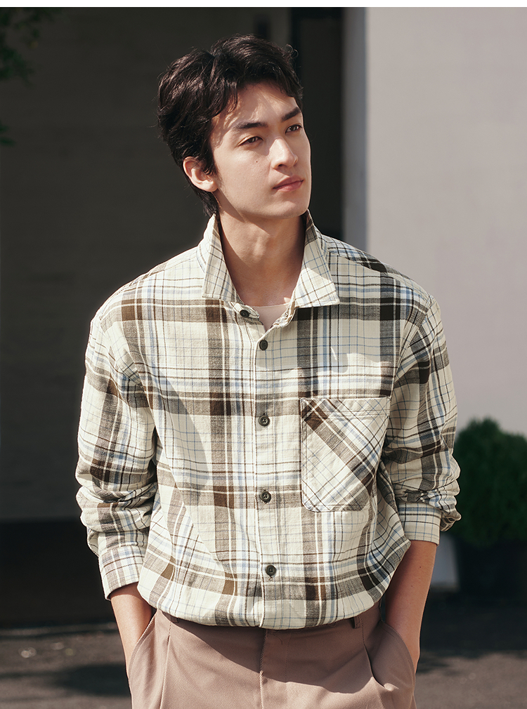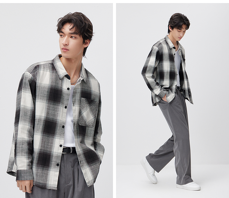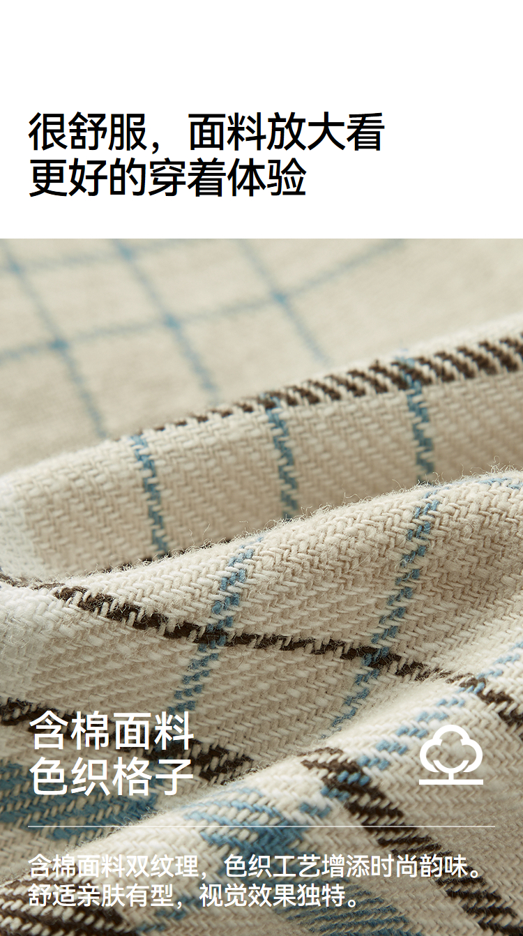 森马长袖衬衫男春季纯棉格纹外套宽松翻领外穿式上衣休闲通勤百搭