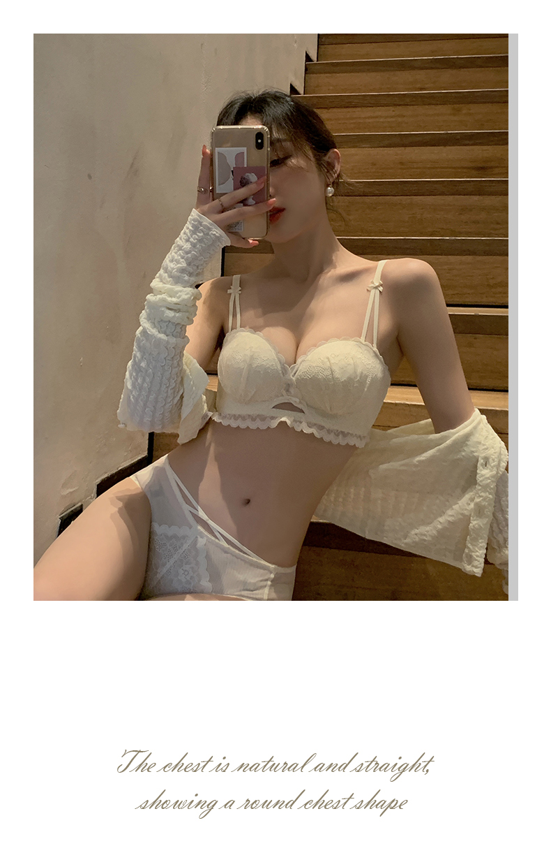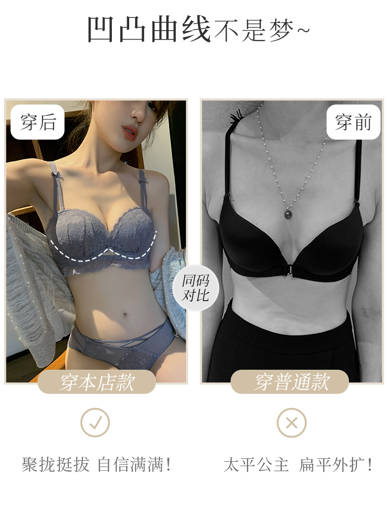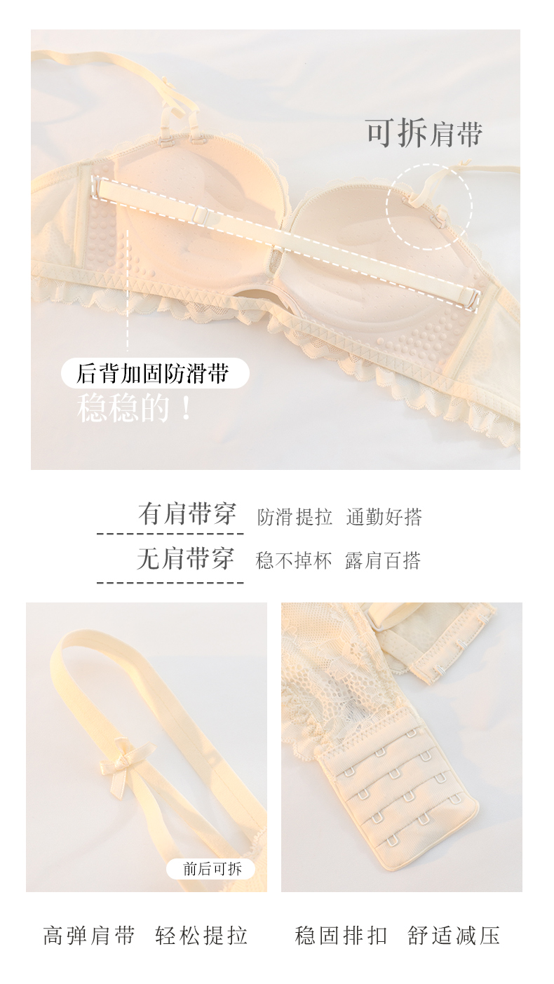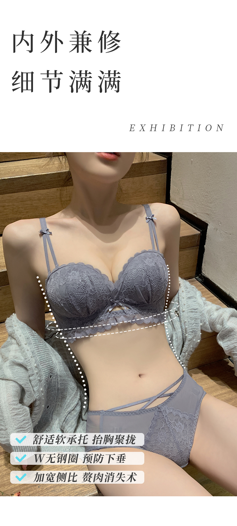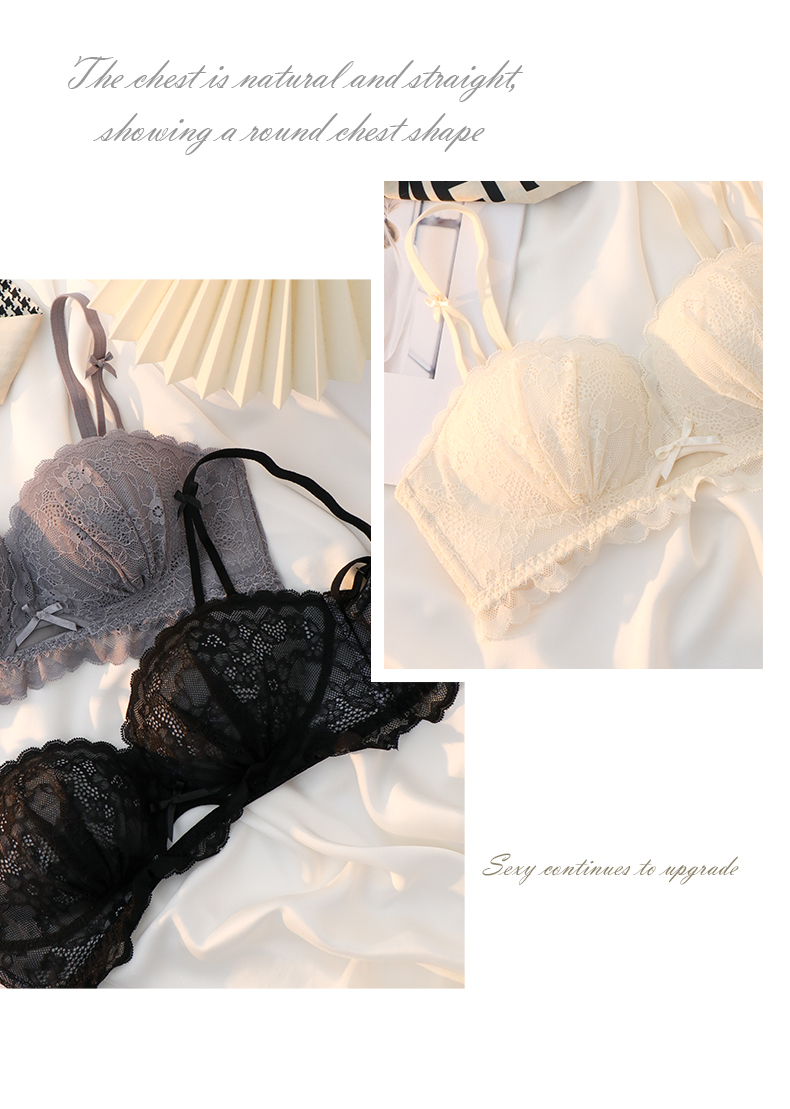 黛唯梵聚拢内衣收副乳防下垂少女纯欲蕾丝胸罩性感无钢圈小胸文胸套装厚