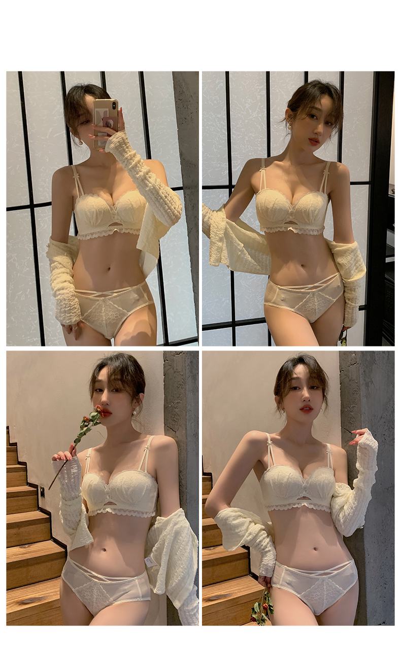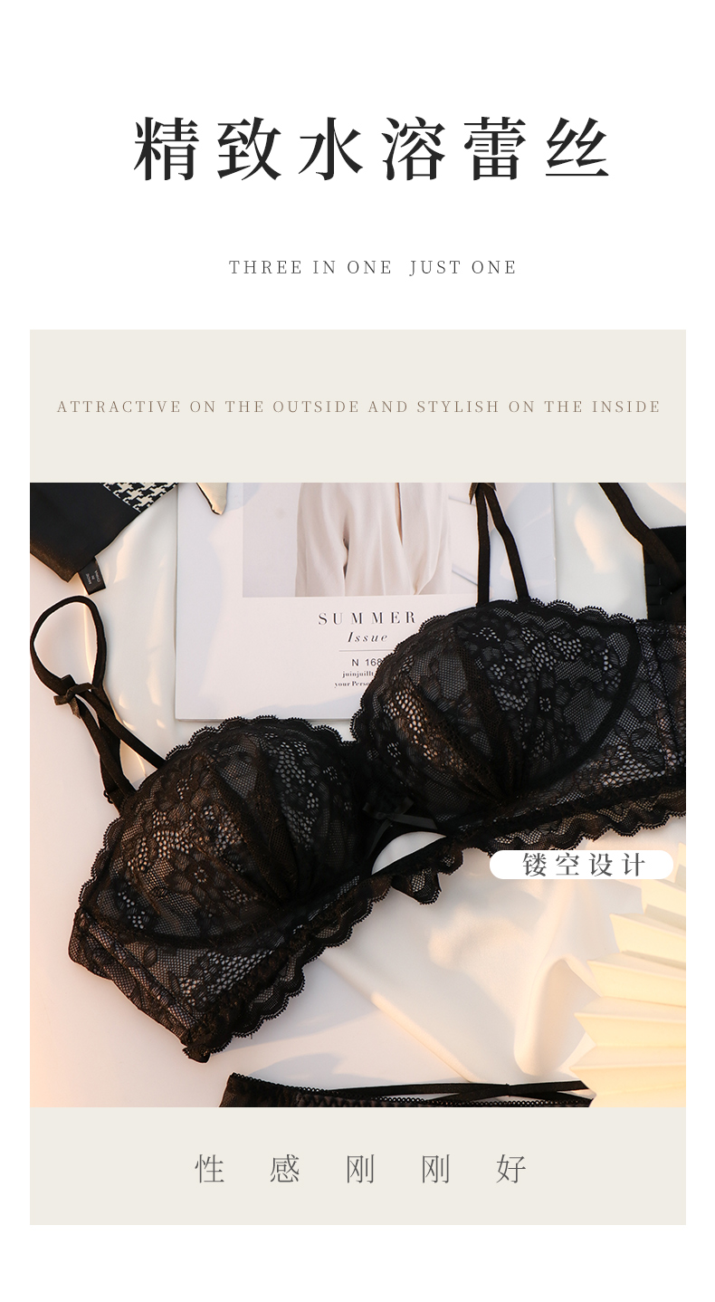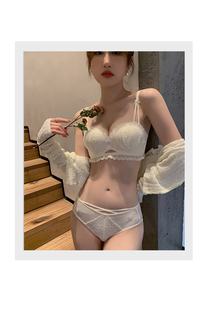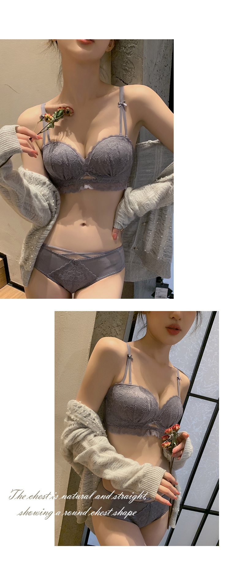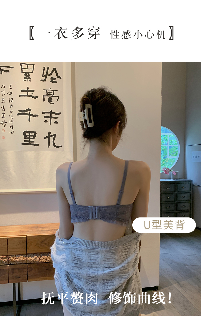 黛唯梵聚拢内衣收副乳防下垂少女纯欲蕾丝胸罩性感无钢圈小胸文胸套装厚