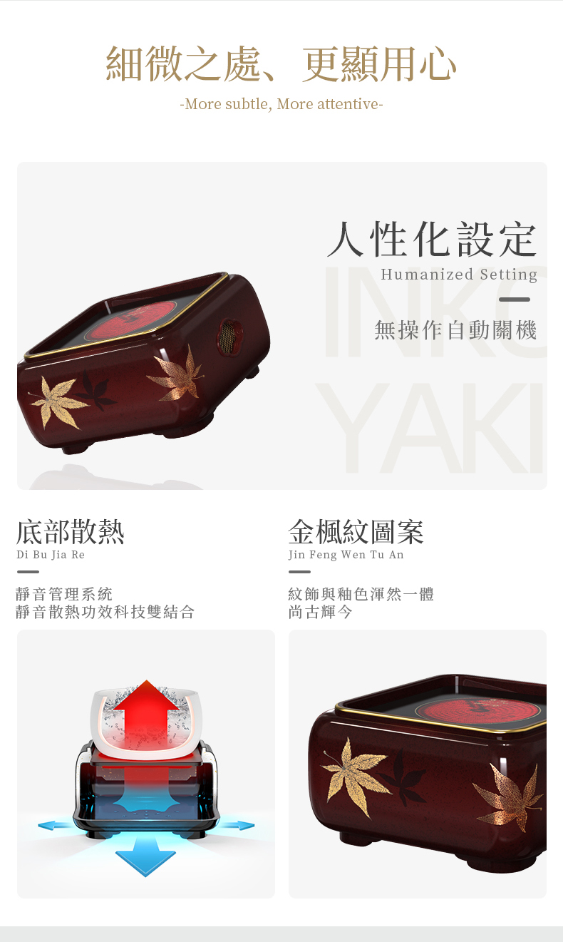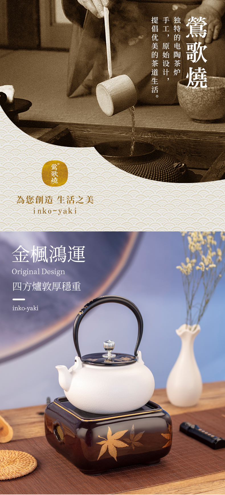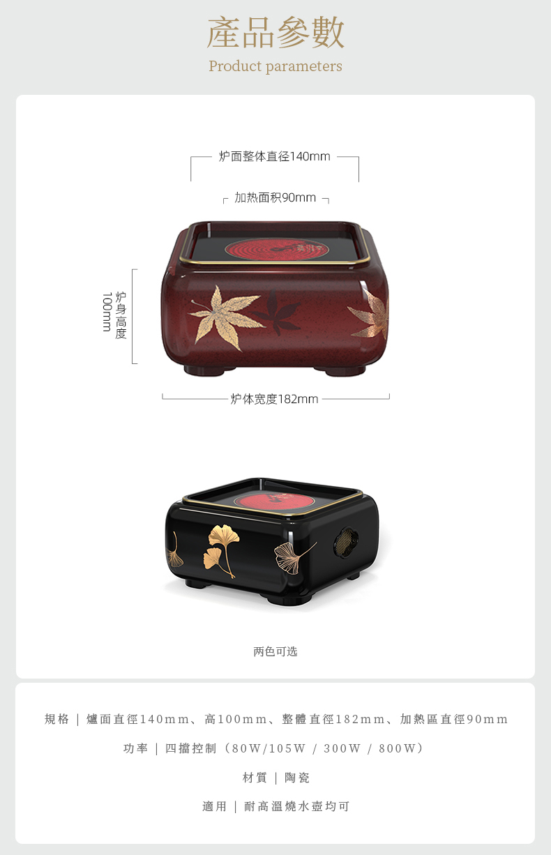 【莺歌烧旗舰店】海棠窗四方大漆地金枫纹电陶炉