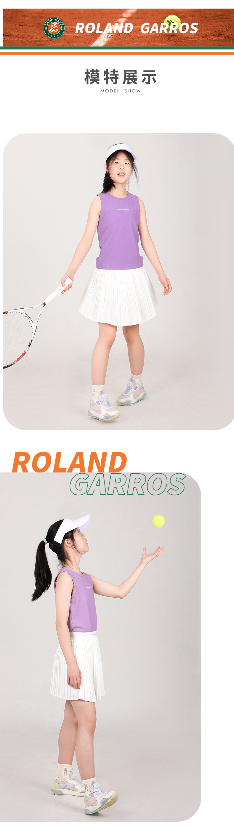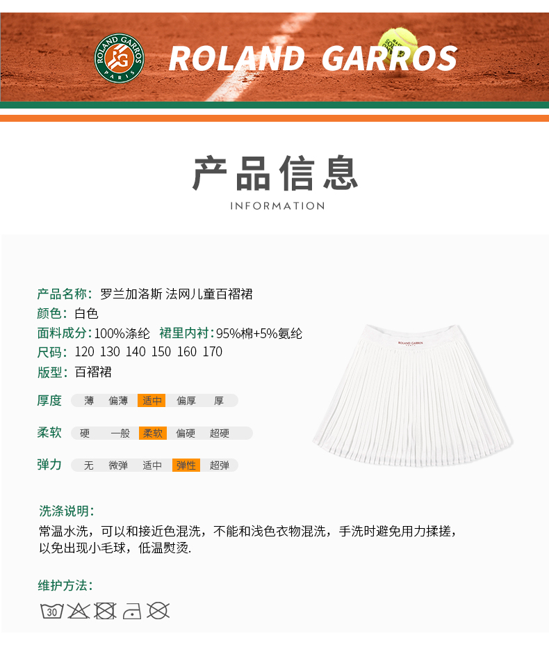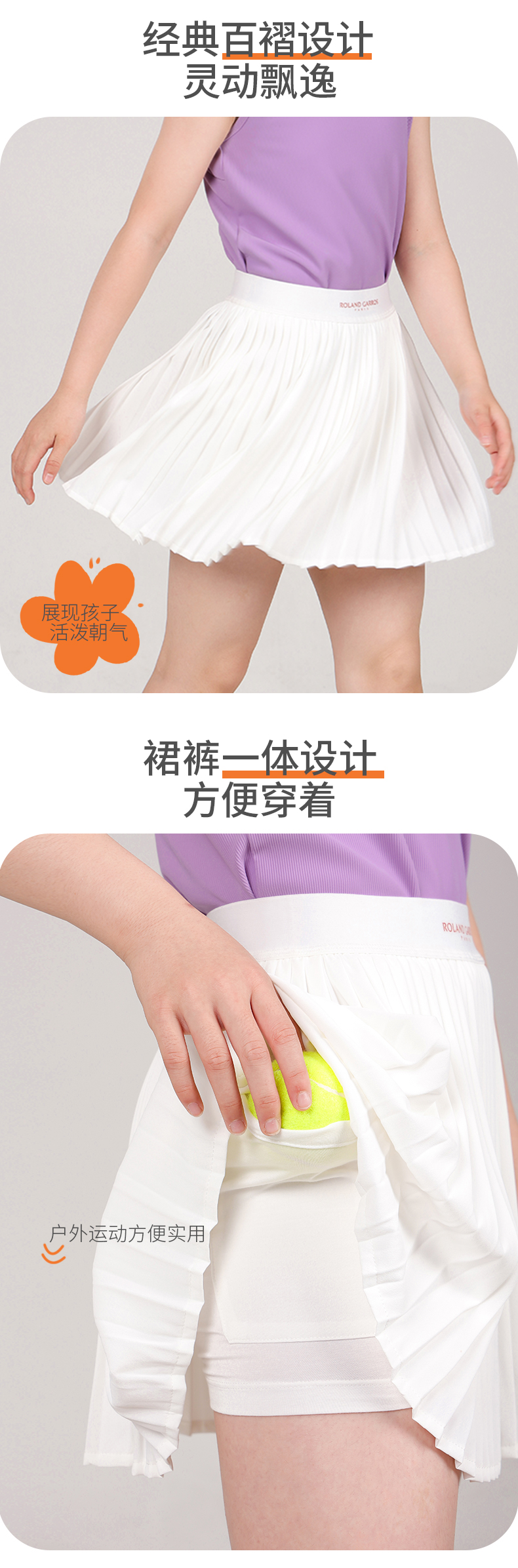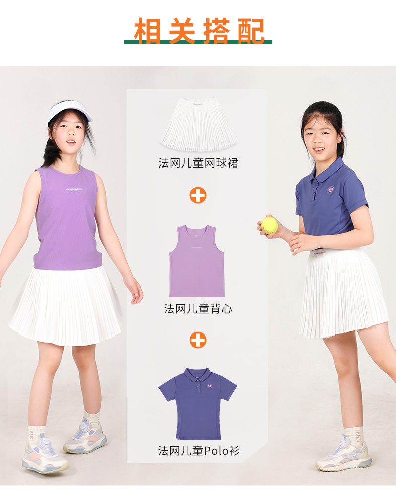 罗兰加洛斯女童短裙半身裙夏季中大童网球运动防走光儿童百褶裙