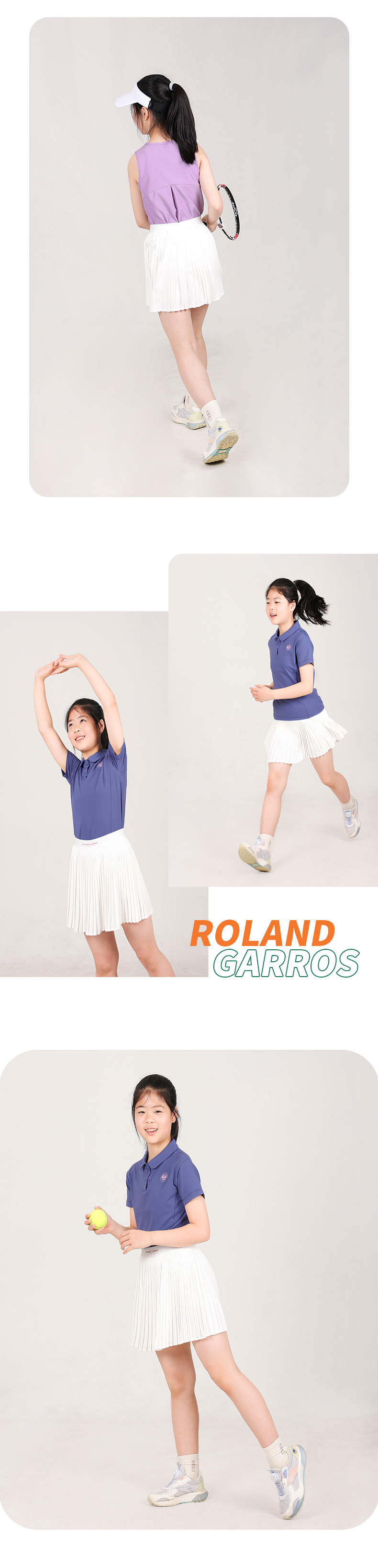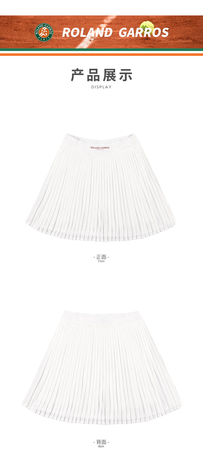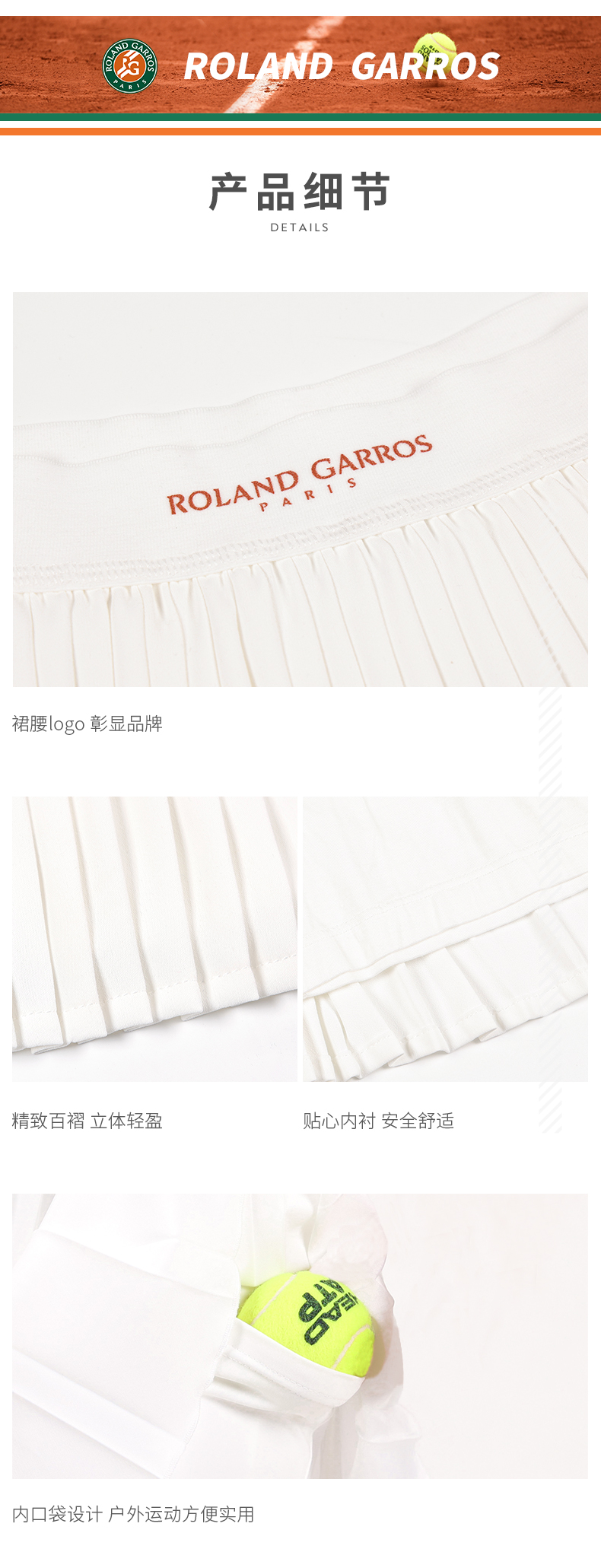 罗兰加洛斯女童短裙半身裙夏季中大童网球运动防走光儿童百褶裙
