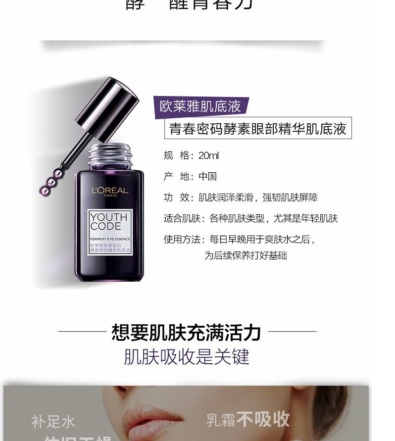 【中欧班列精选】欧莱雅眼霜小黑瓶青春密码酵素眼部精华肌底液20ml/瓶