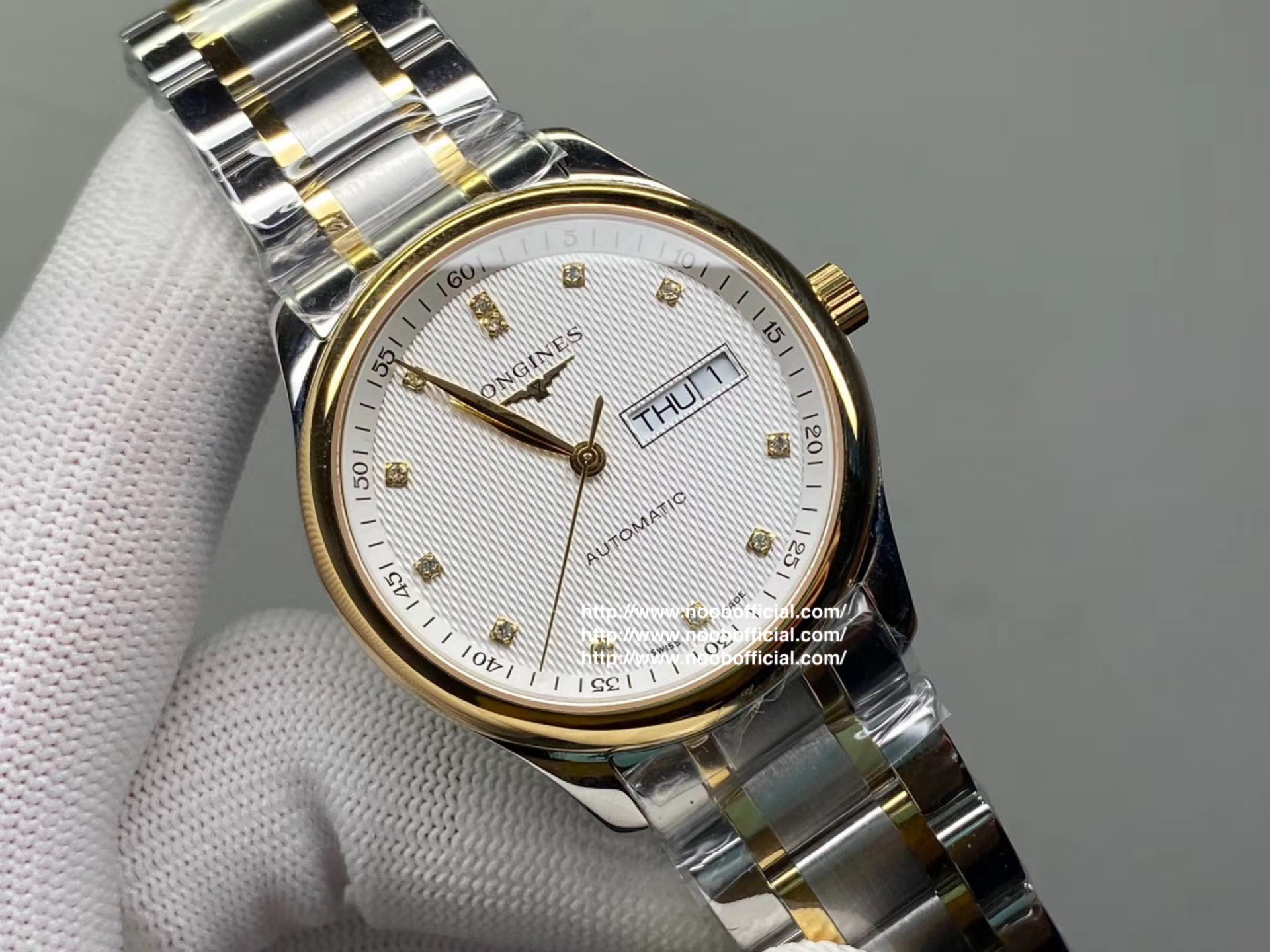 【KY出品】浪琴名匠双日历系列,原版开模,搭载和正品一致的原装瑞士eta2836-2自动机械机芯(即浪琴型号Cal.L636.5机芯)机芯返修率接近零,直径🈶40毫米和38.5mm厚度11mm,烤蓝钢针,把头大小与原装吻合,所有配件包括机芯与原装100%可互换通用,一表一号编码,整表完美无暇市场最高版本(给它一个专柜它就是正品)
