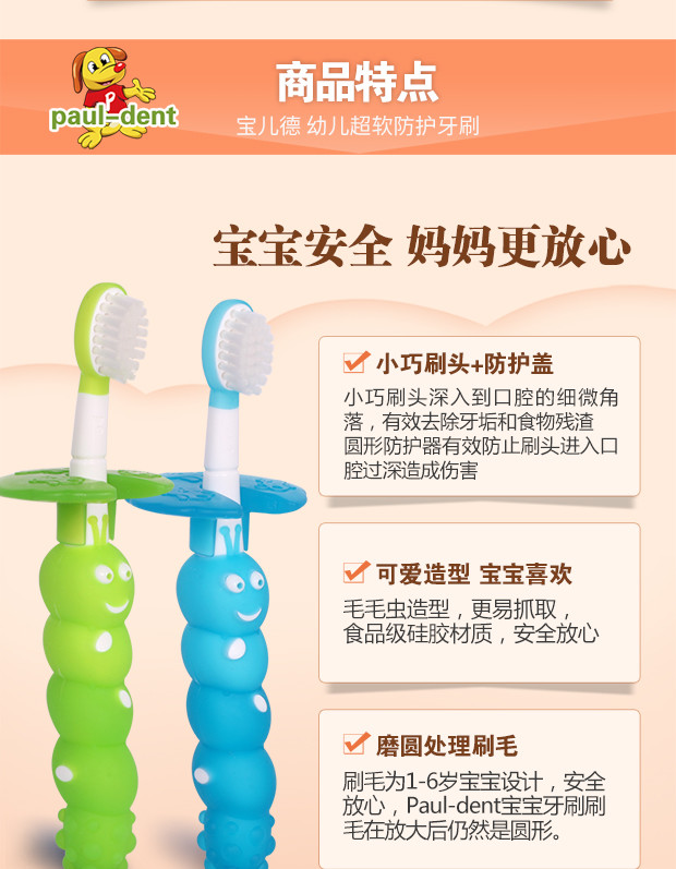 德国原装进口宝儿德Paul-dent儿童牙刷幼儿软毛防护训练牙刷乳牙清洁1-2-3-6岁