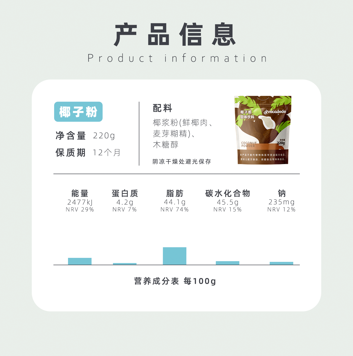 Avocadodo椰子粉植物奶冲饮速溶生酮早餐饮料桥本不加白砂糖桥本