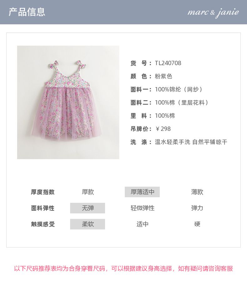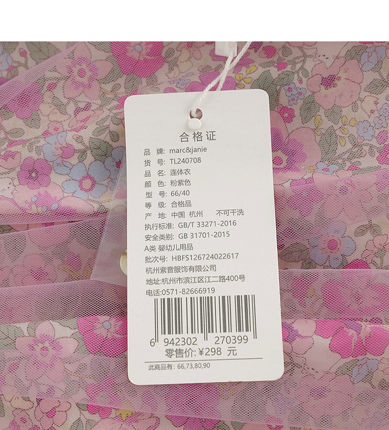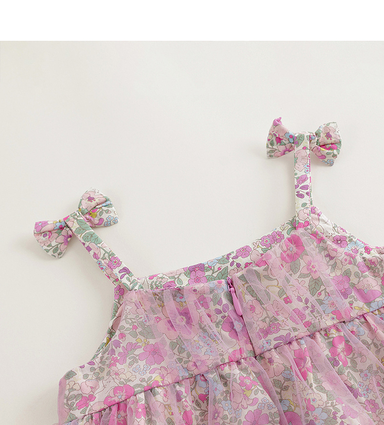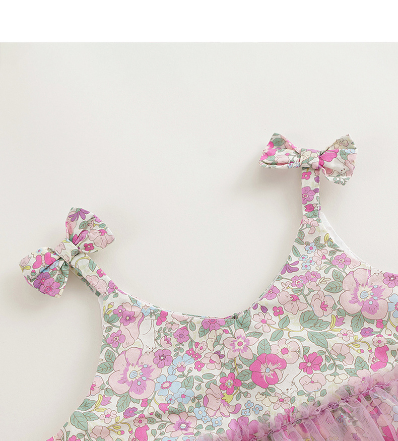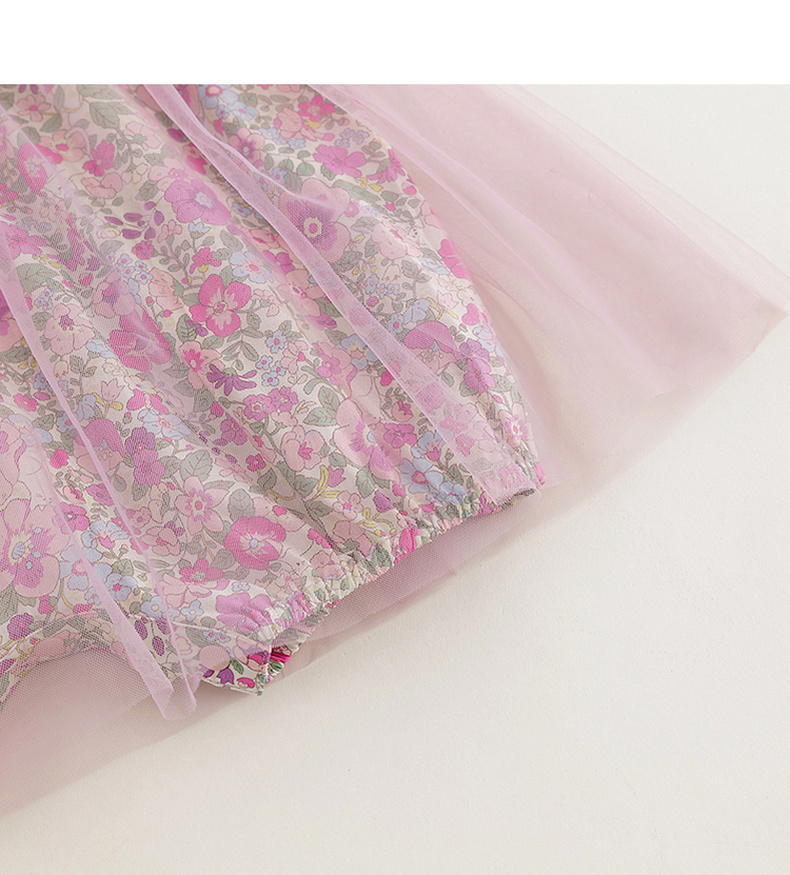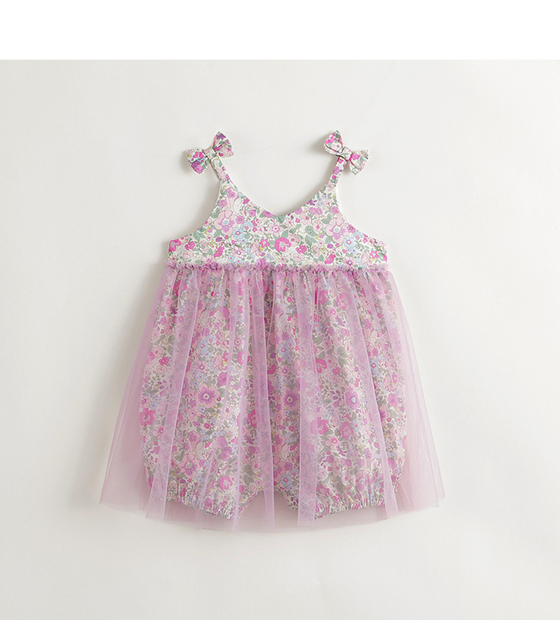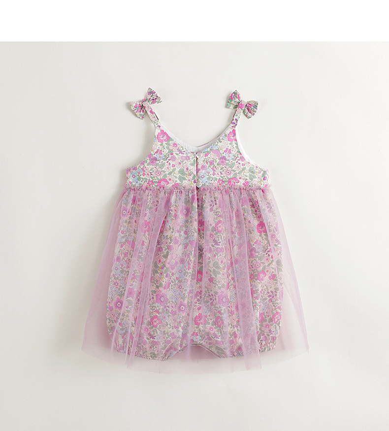 马克珍妮女宝宝粉紫花园网纱吊带连体衣婴儿哈衣夏装新款240708