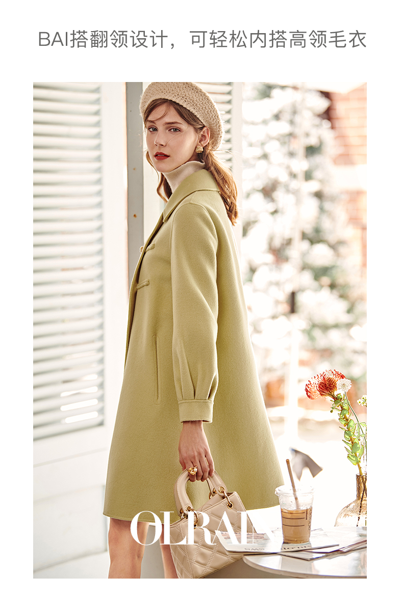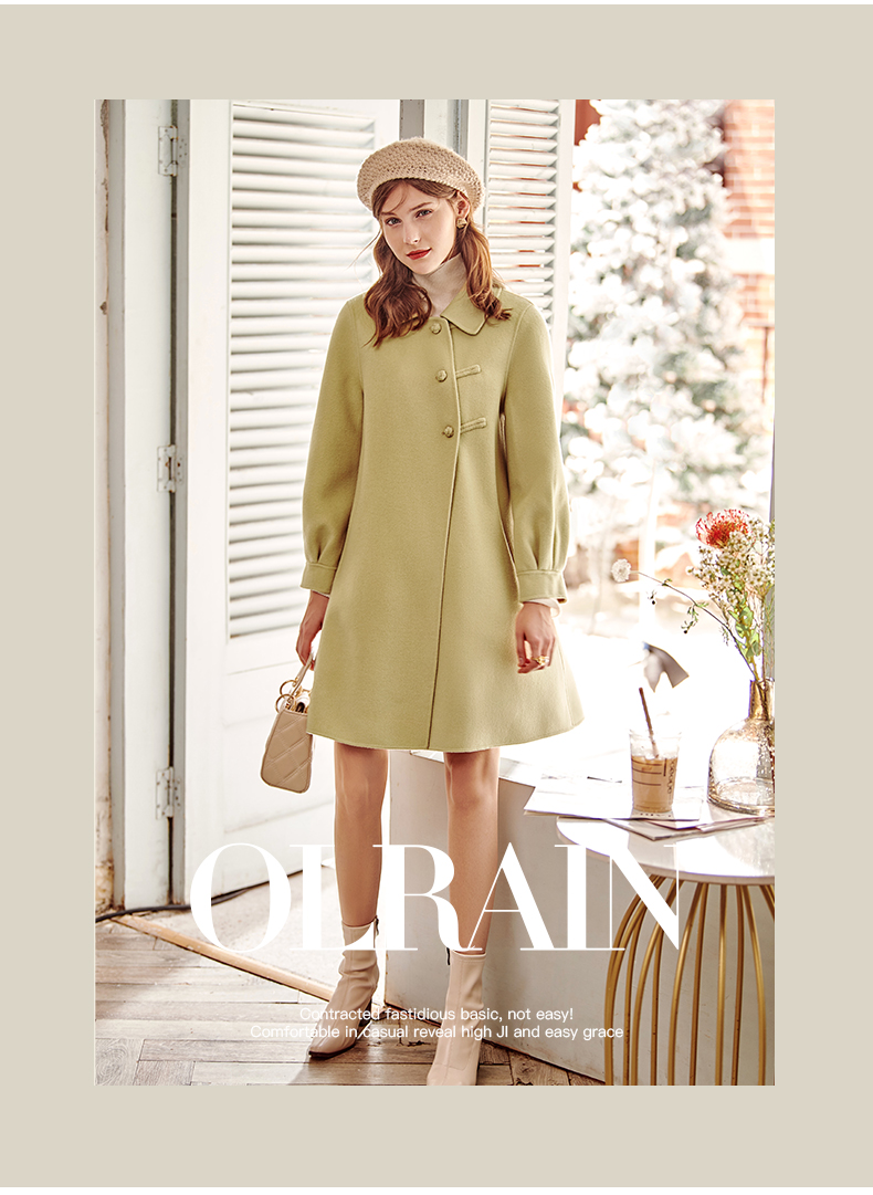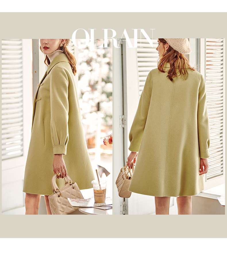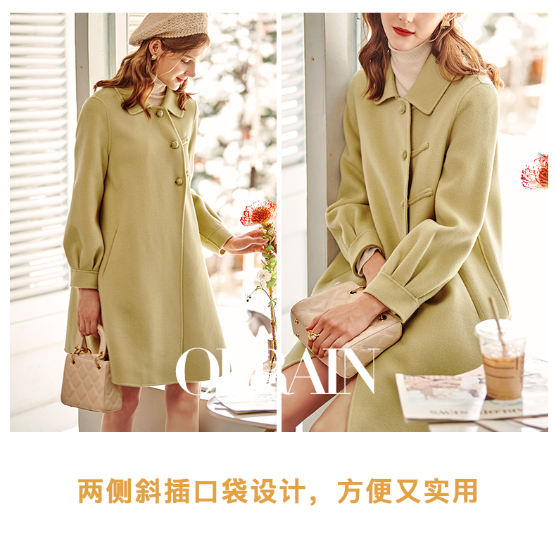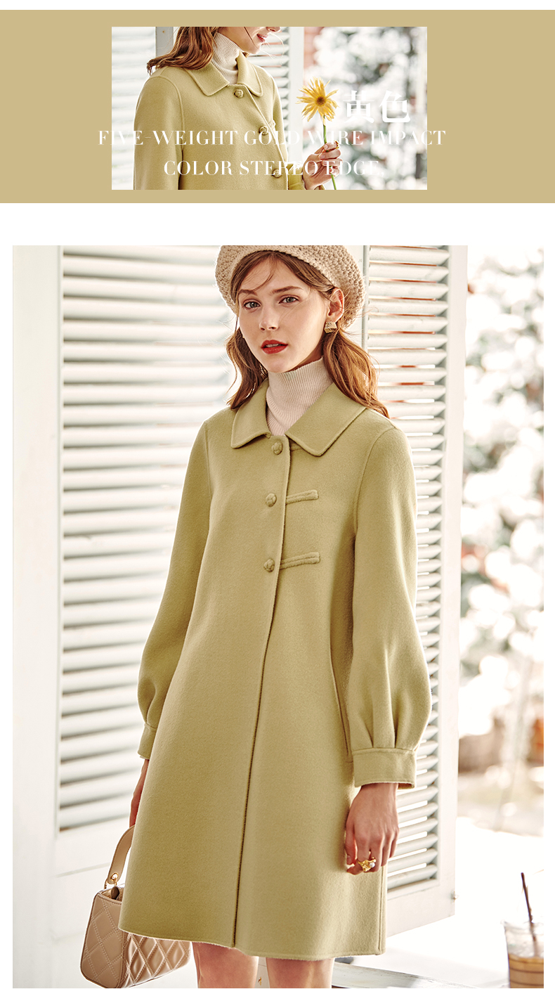 欧芮儿长双面呢外套黄色