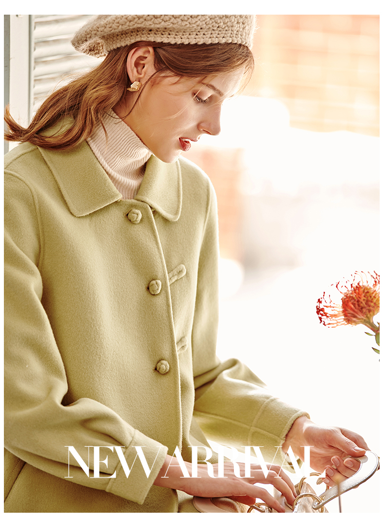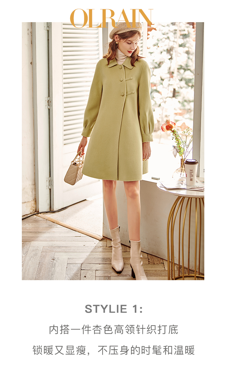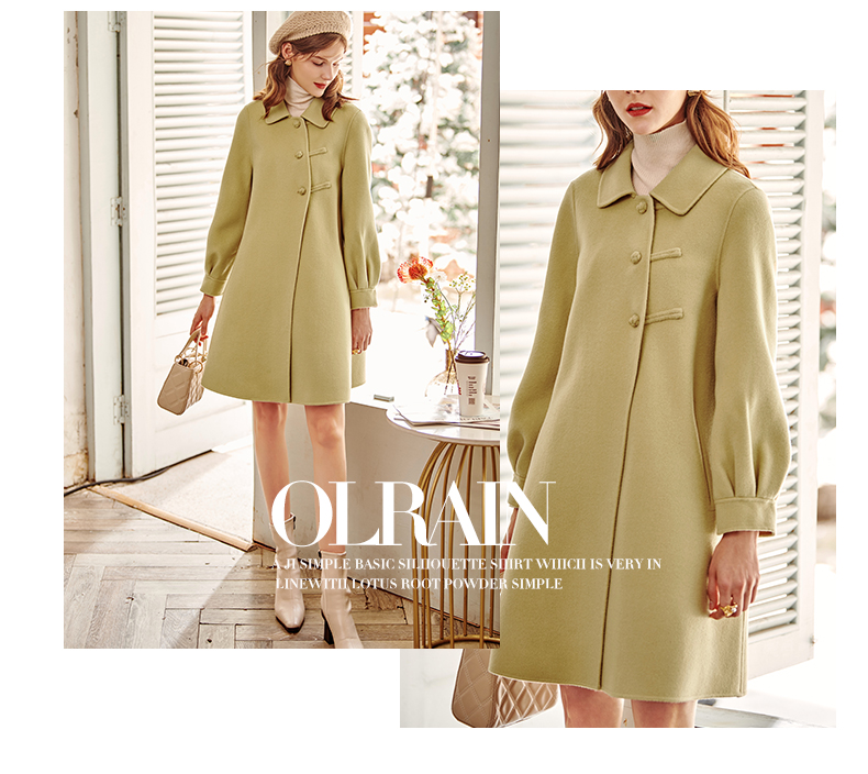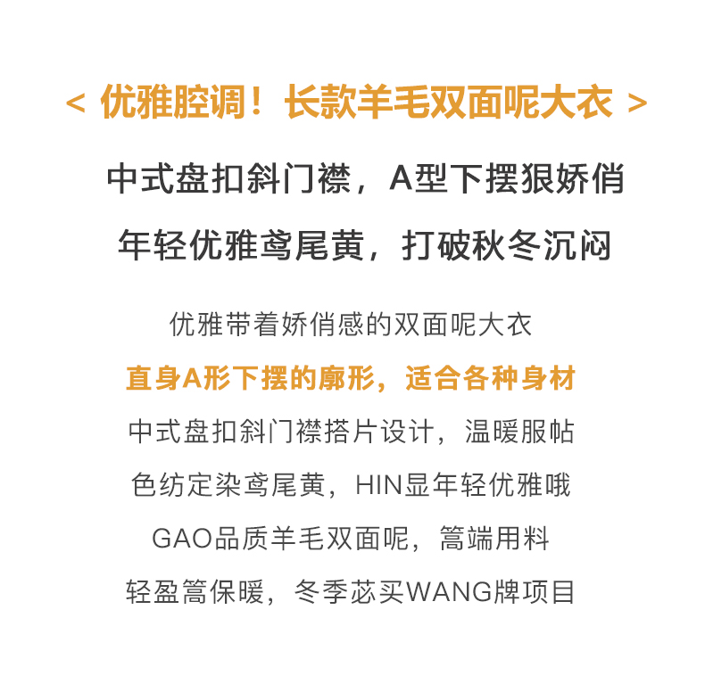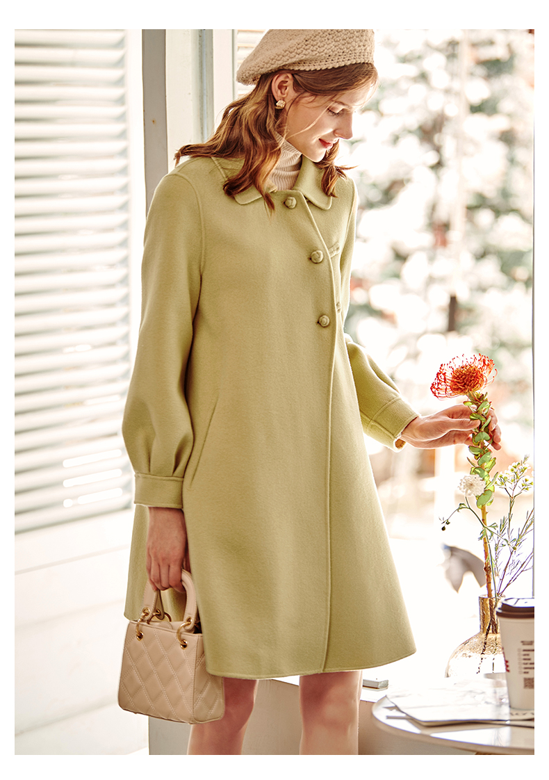 欧芮儿长双面呢外套黄色