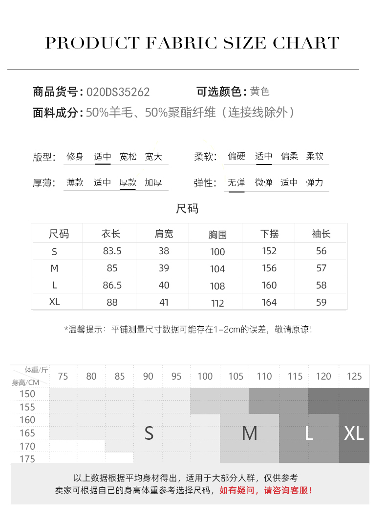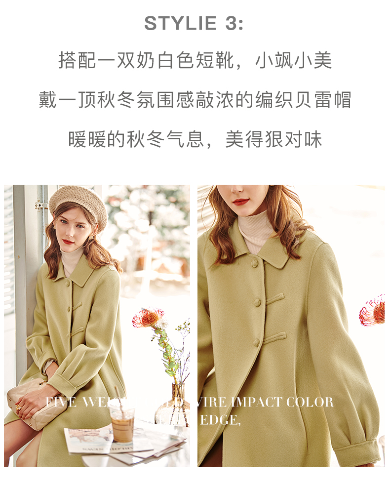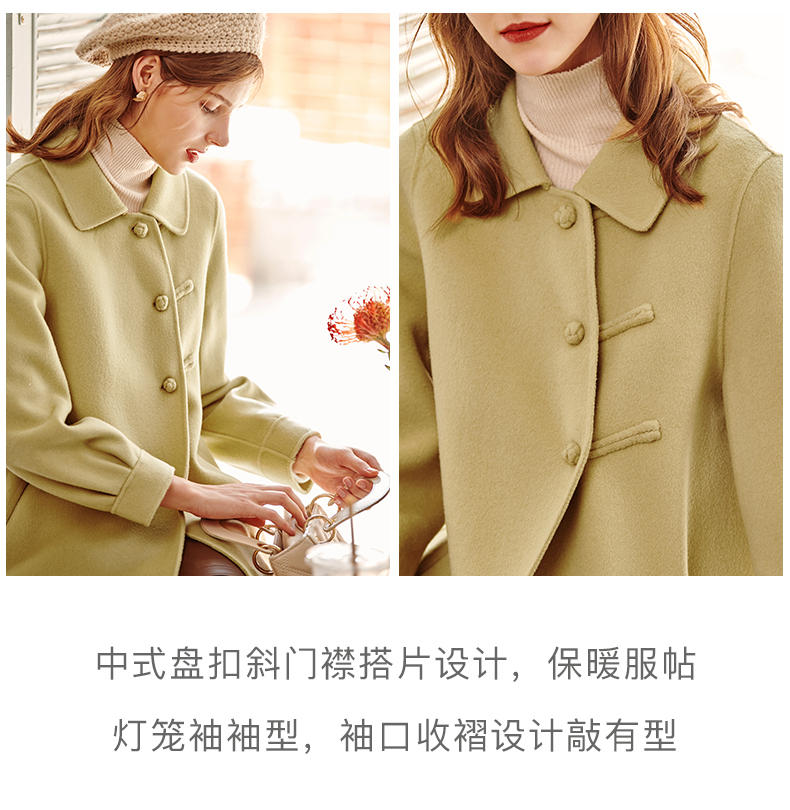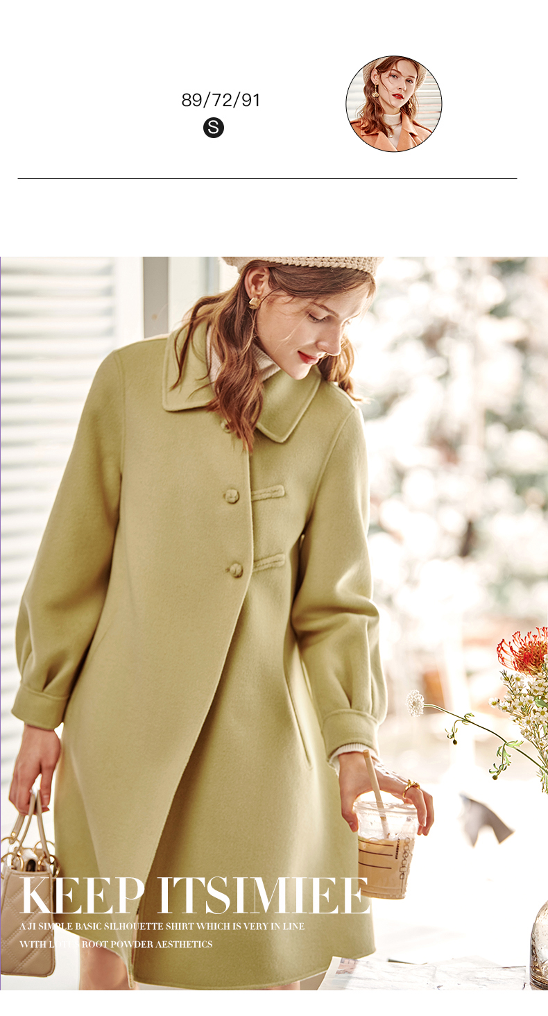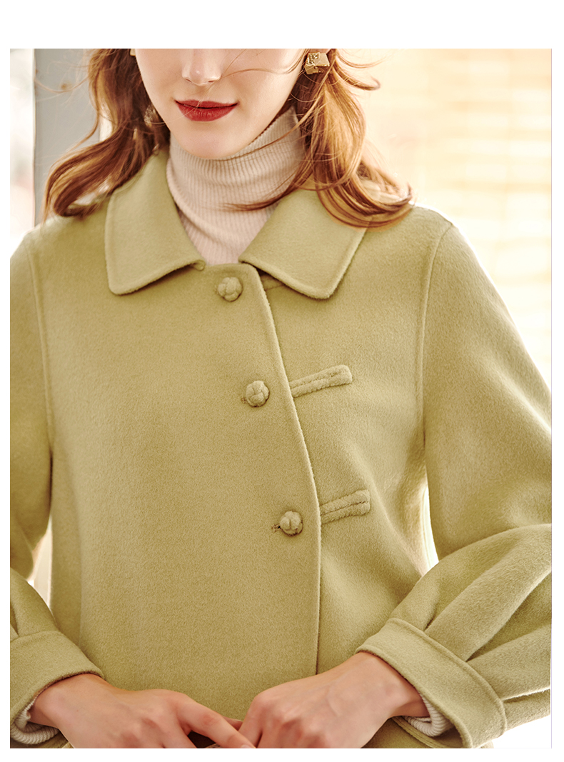 欧芮儿长双面呢外套黄色
