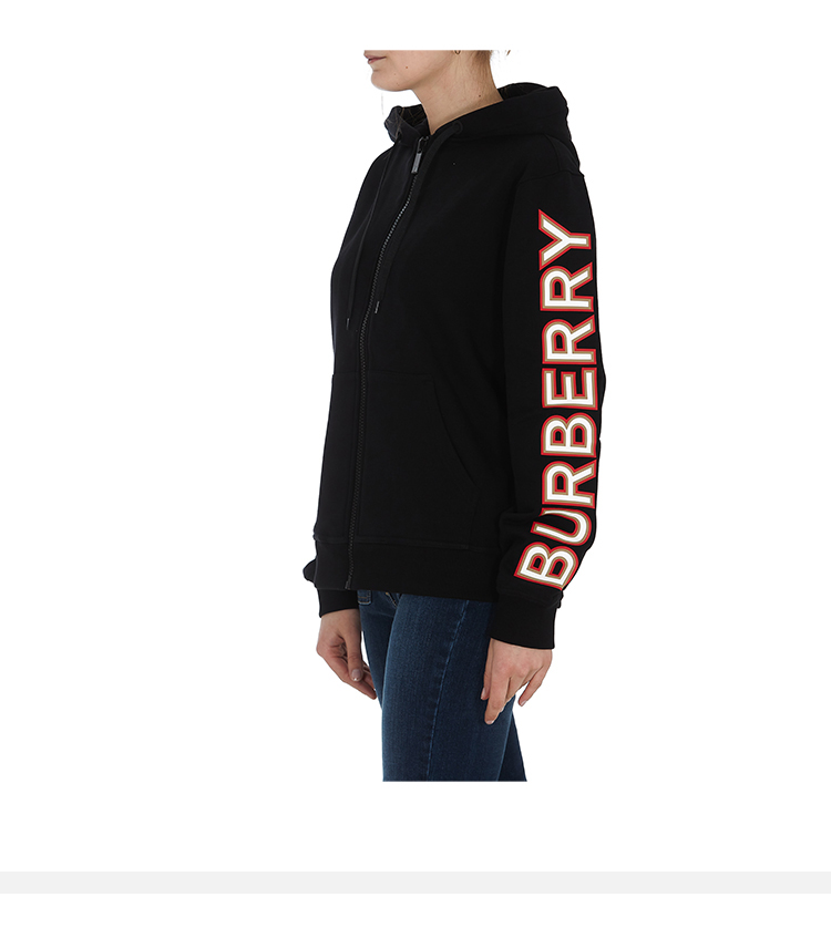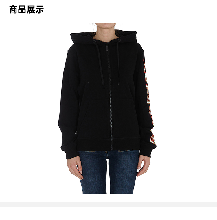 【二】BURBERRY 巴宝莉 女士字母徽标印花棉质宽松连帽上衣外套 黑色 8036691 A1189