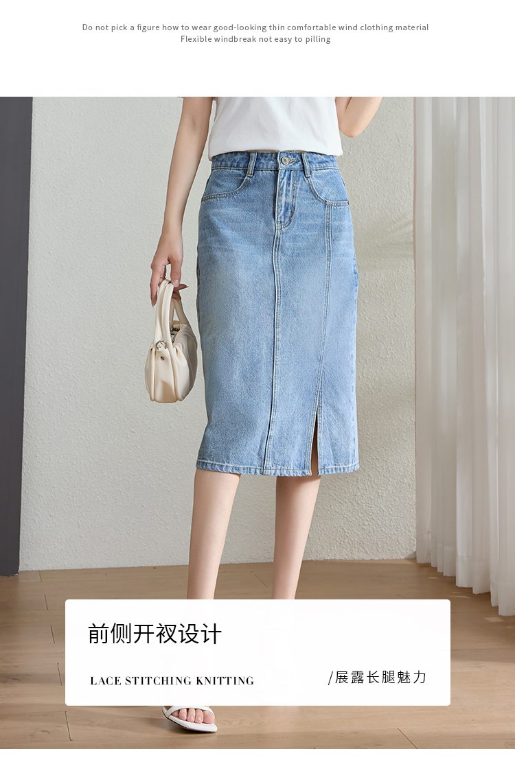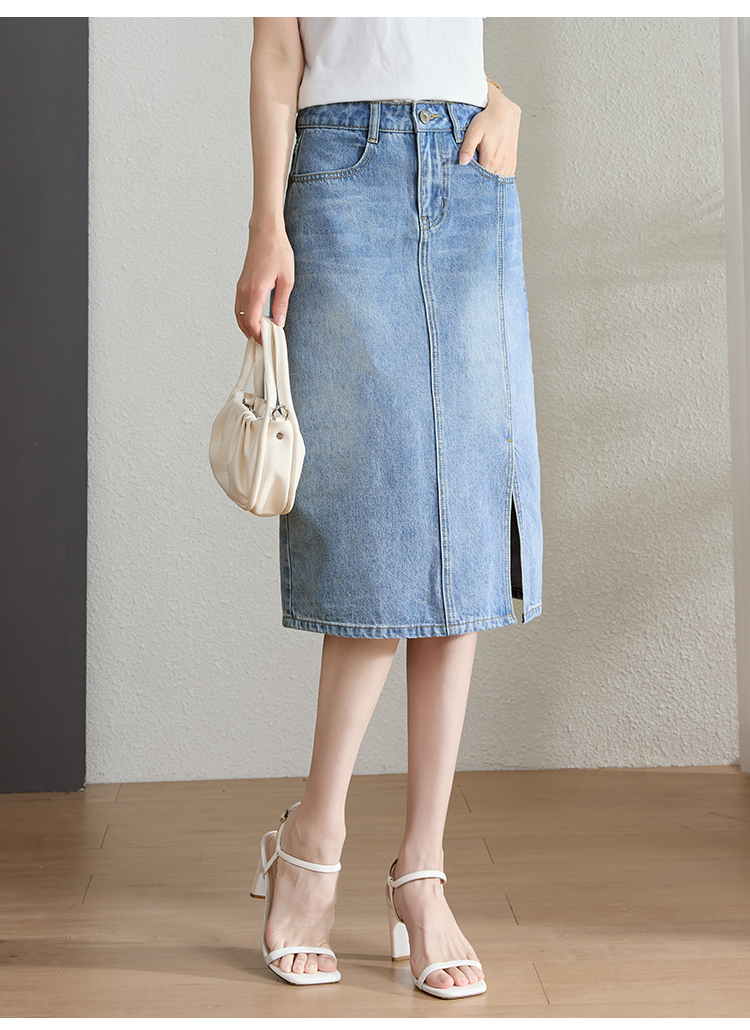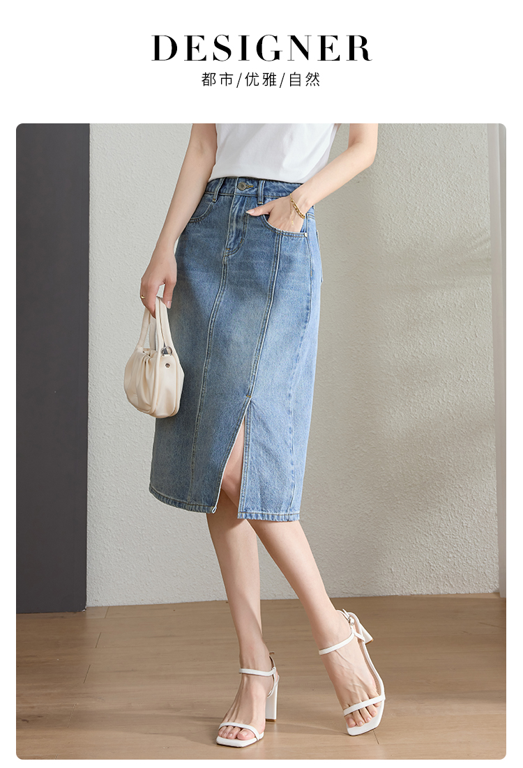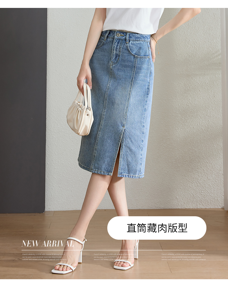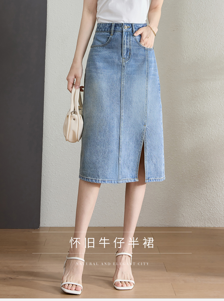 【五折购】熙世界开叉牛仔半身裙女中长款复古高腰显瘦包臀裙子2025夏装新款
