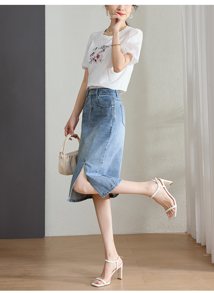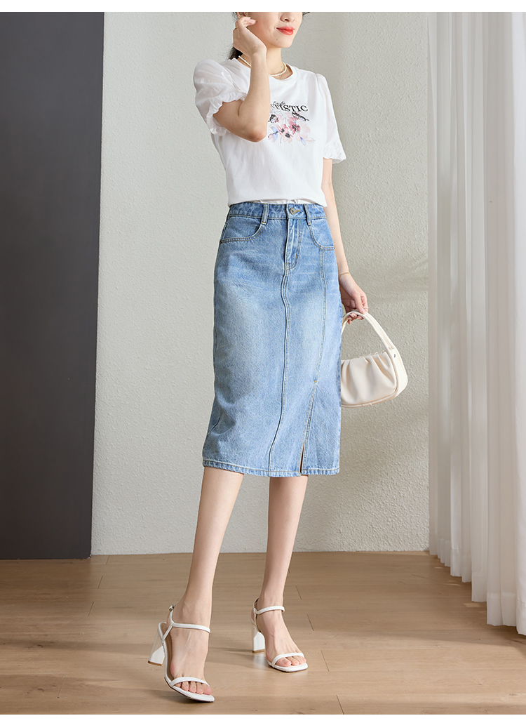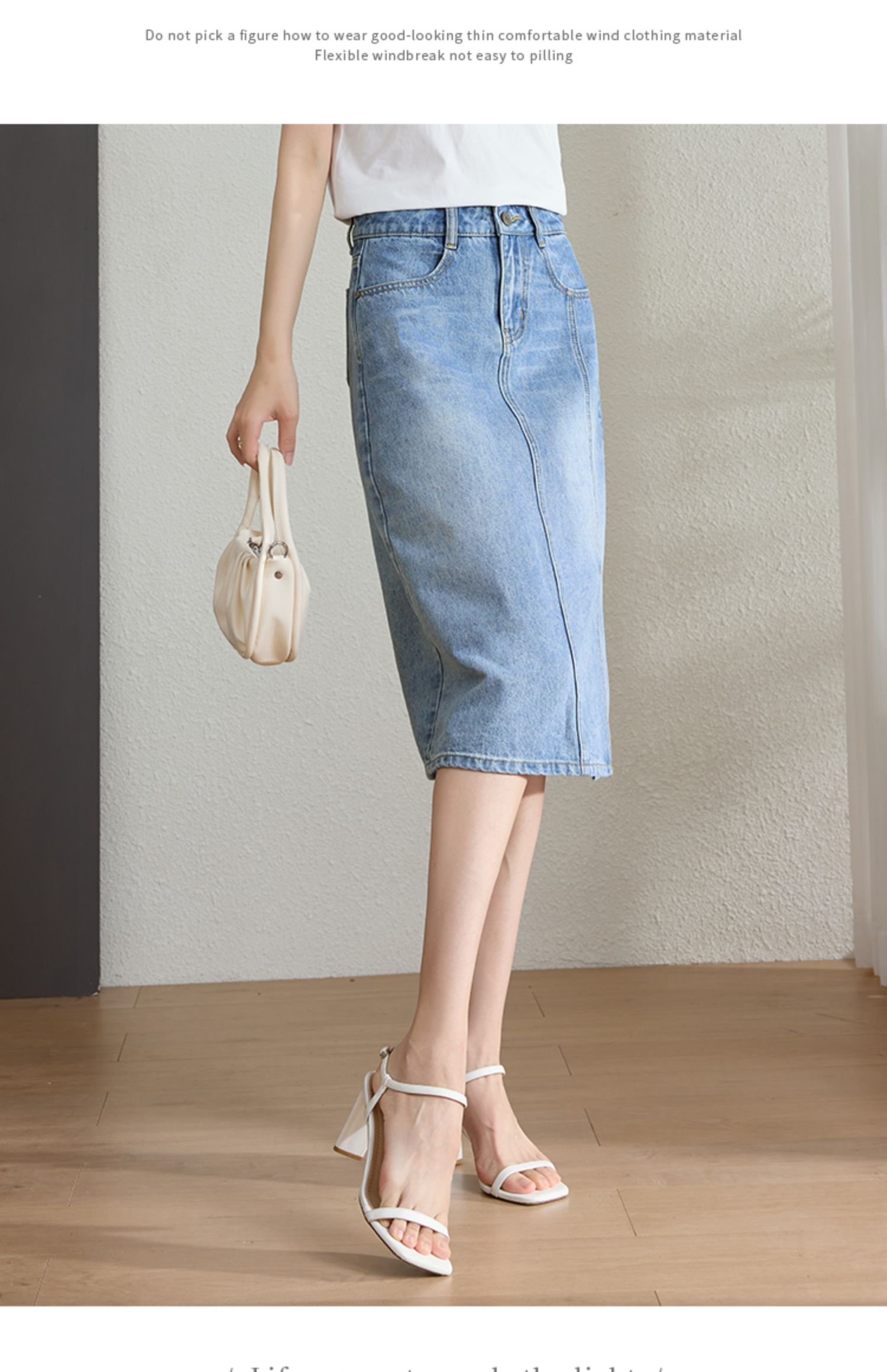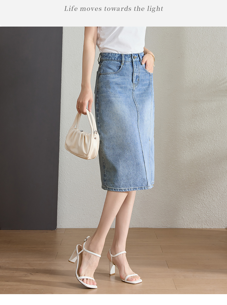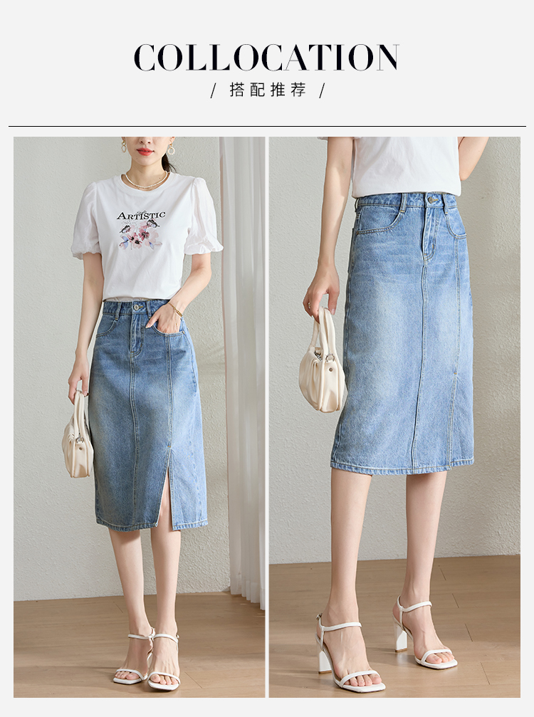 【五折购】熙世界开叉牛仔半身裙女中长款复古高腰显瘦包臀裙子2025夏装新款