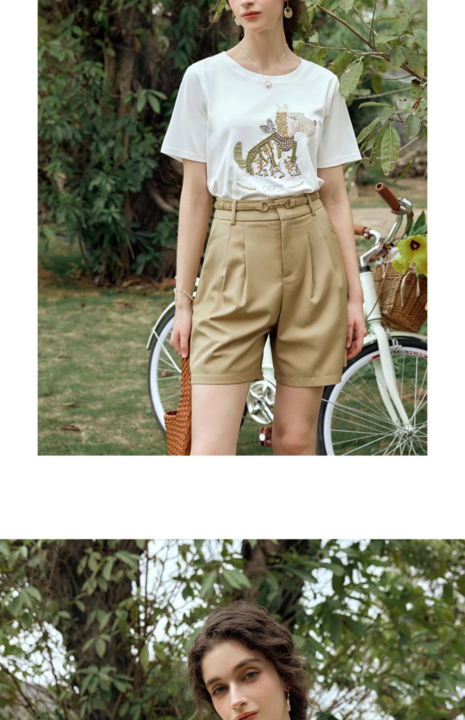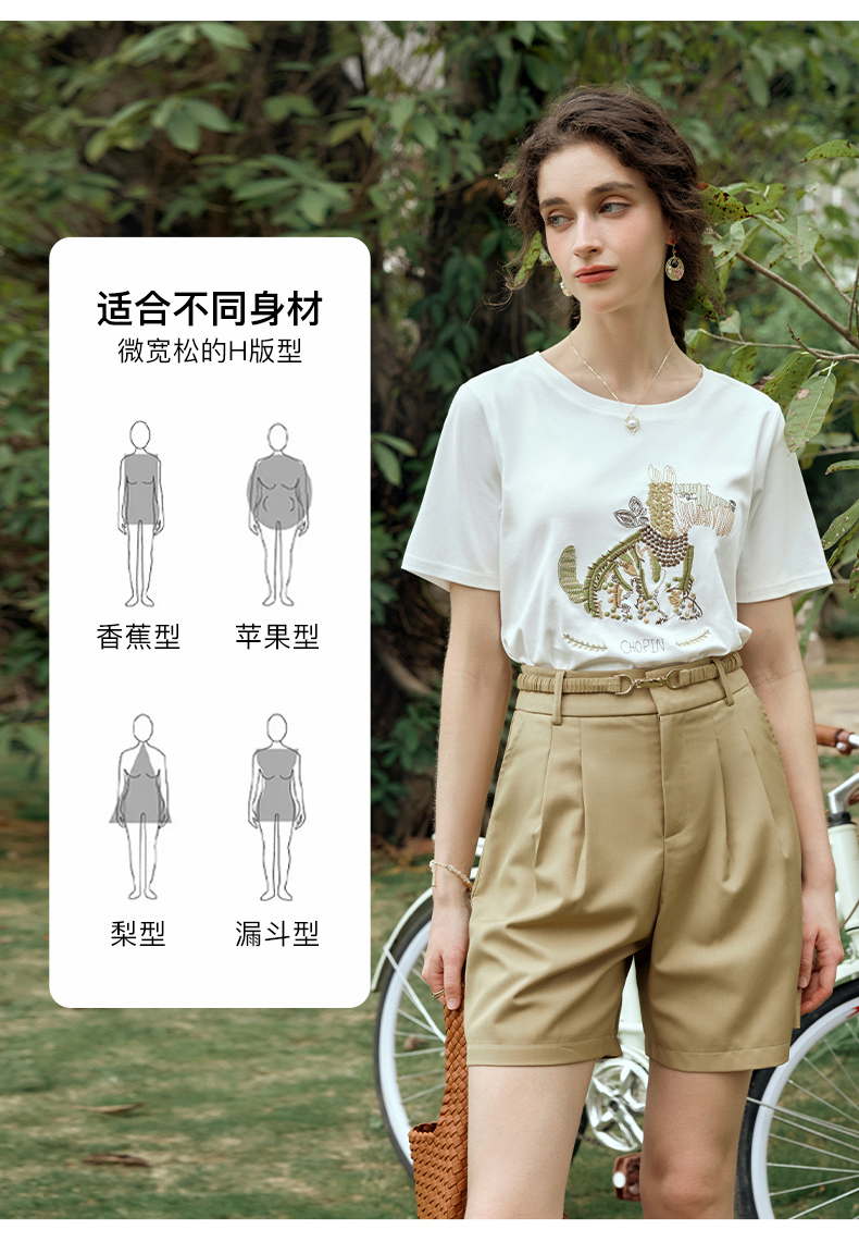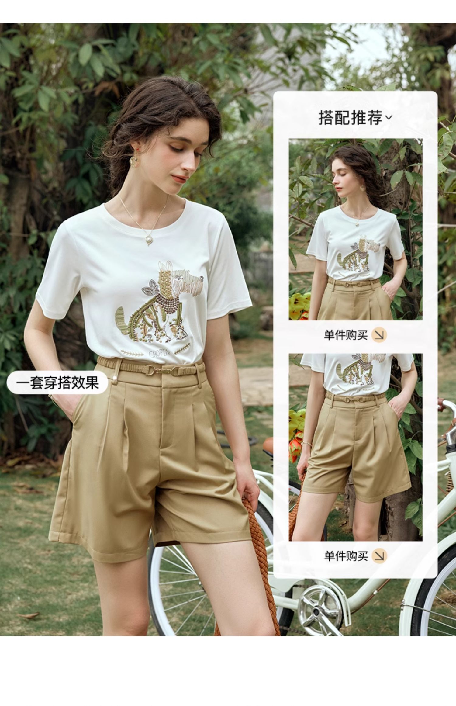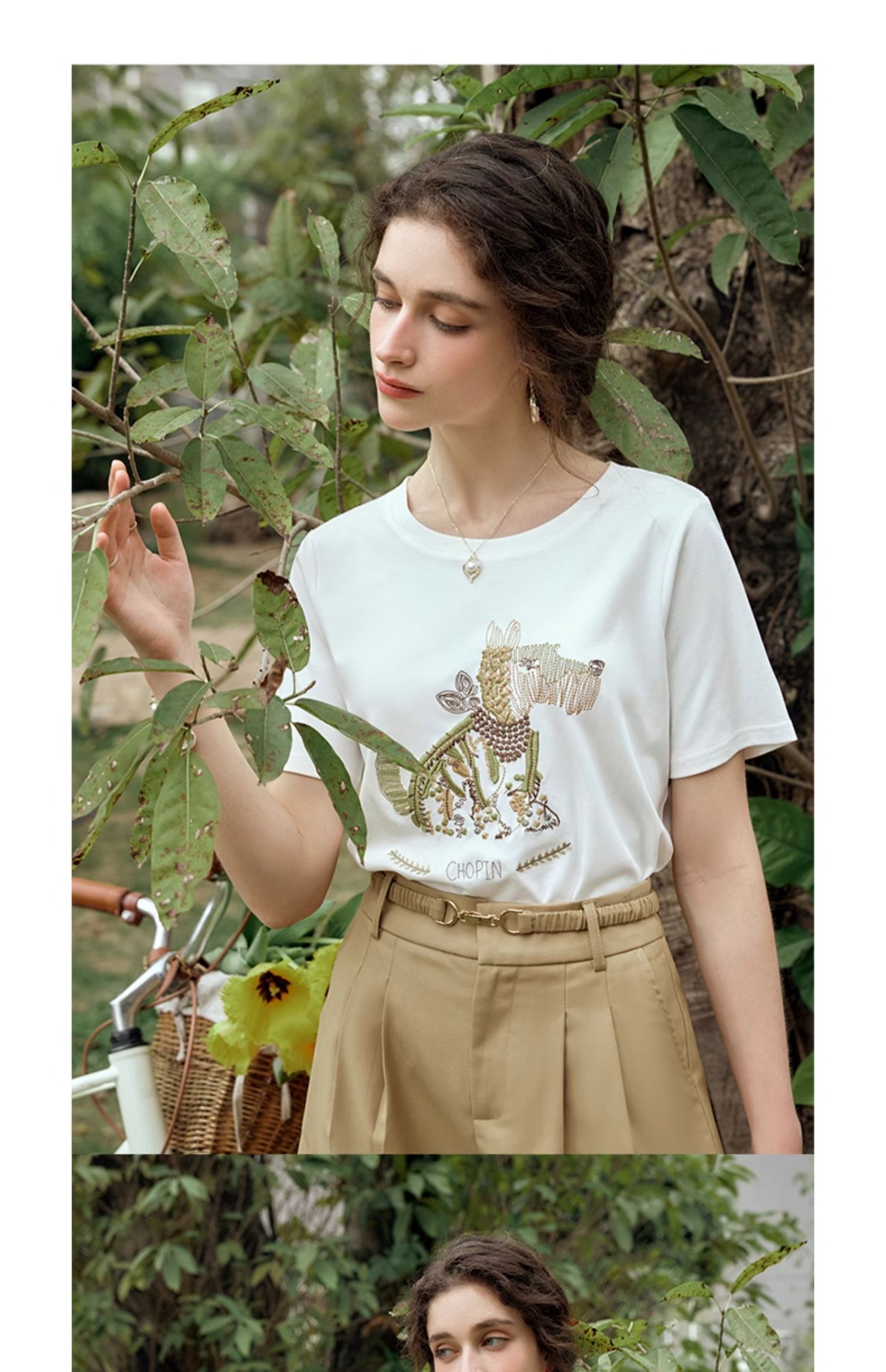 OLrain欧芮儿米白色宽松T恤女夏季2024新款圆领刺绣小狗趣味短袖