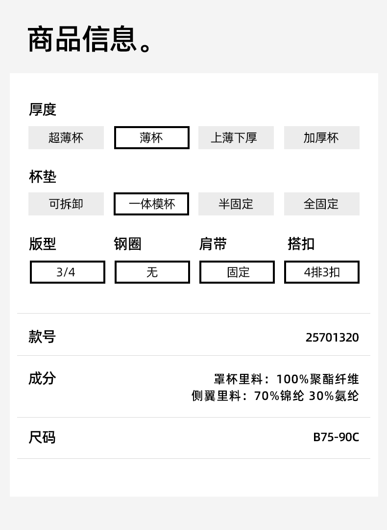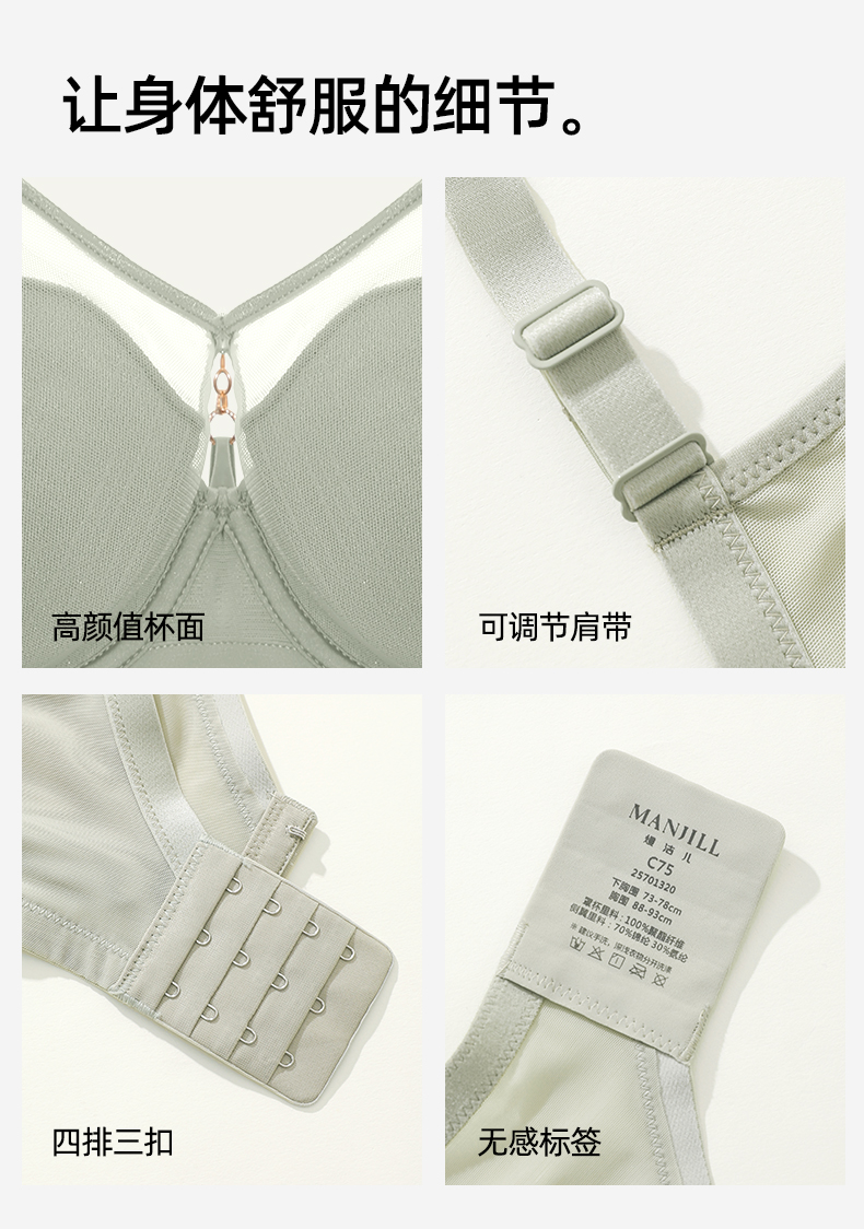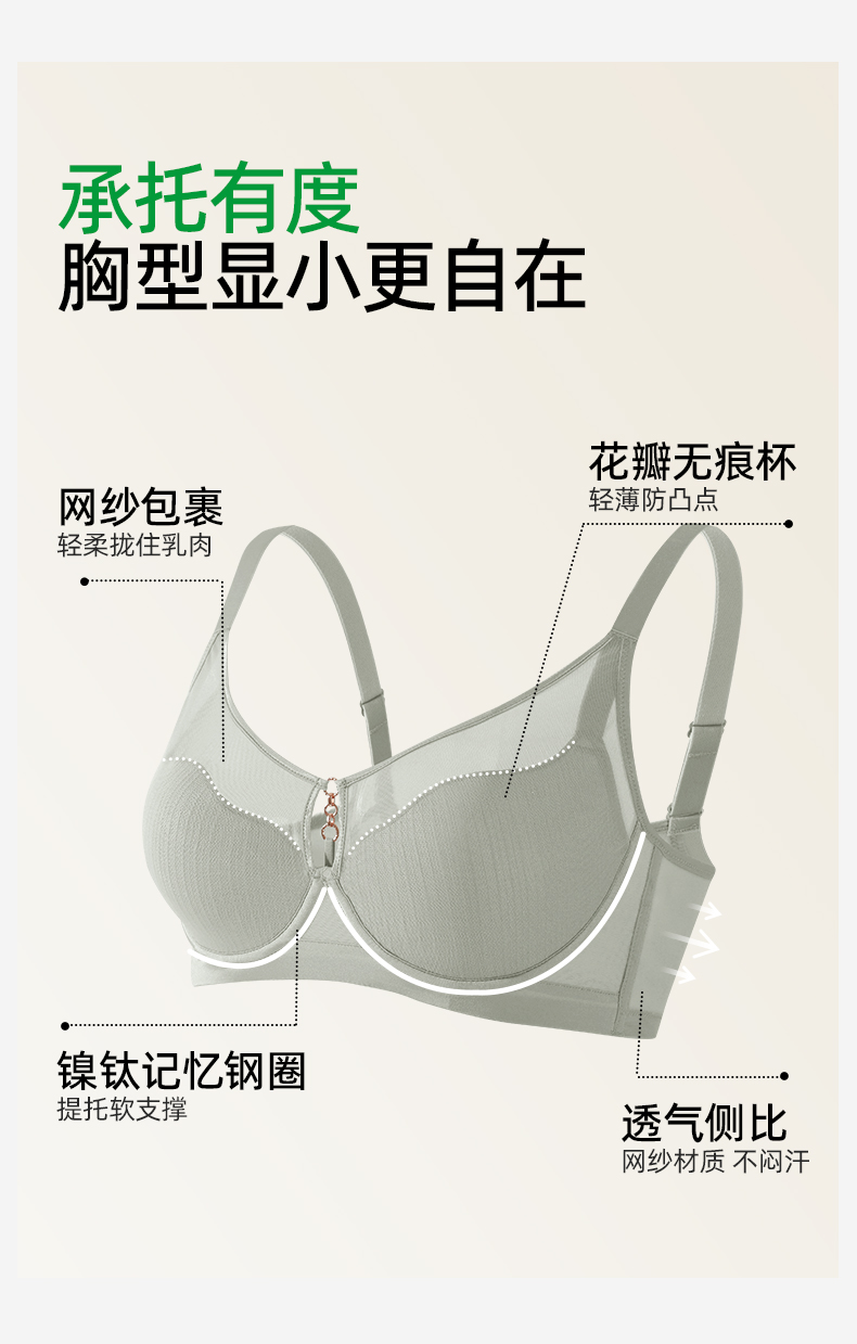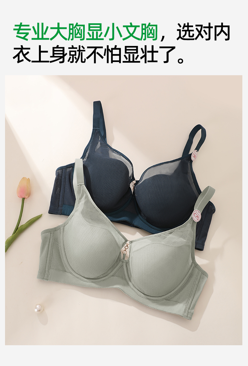 【商场同款】熳洁儿 美丽大杯系列大胸显小文胸光面薄杯花瓣杯抹胸25701320