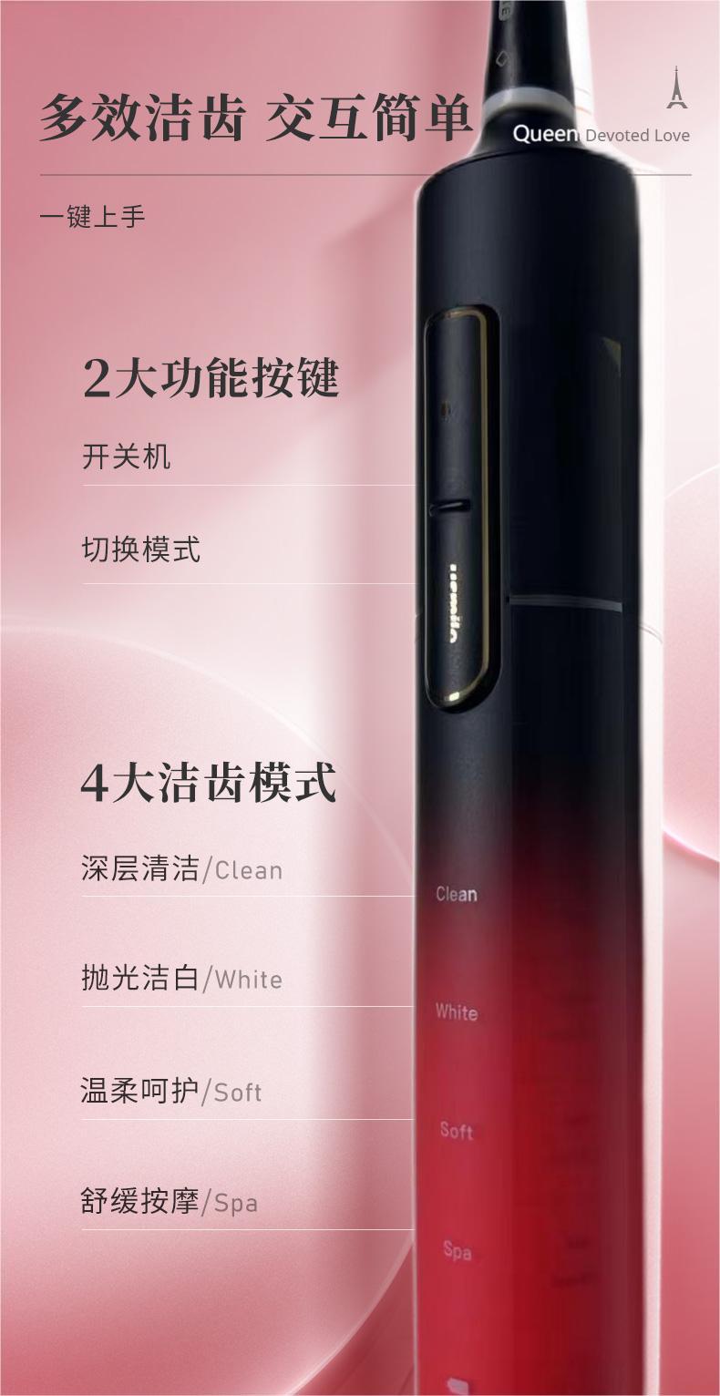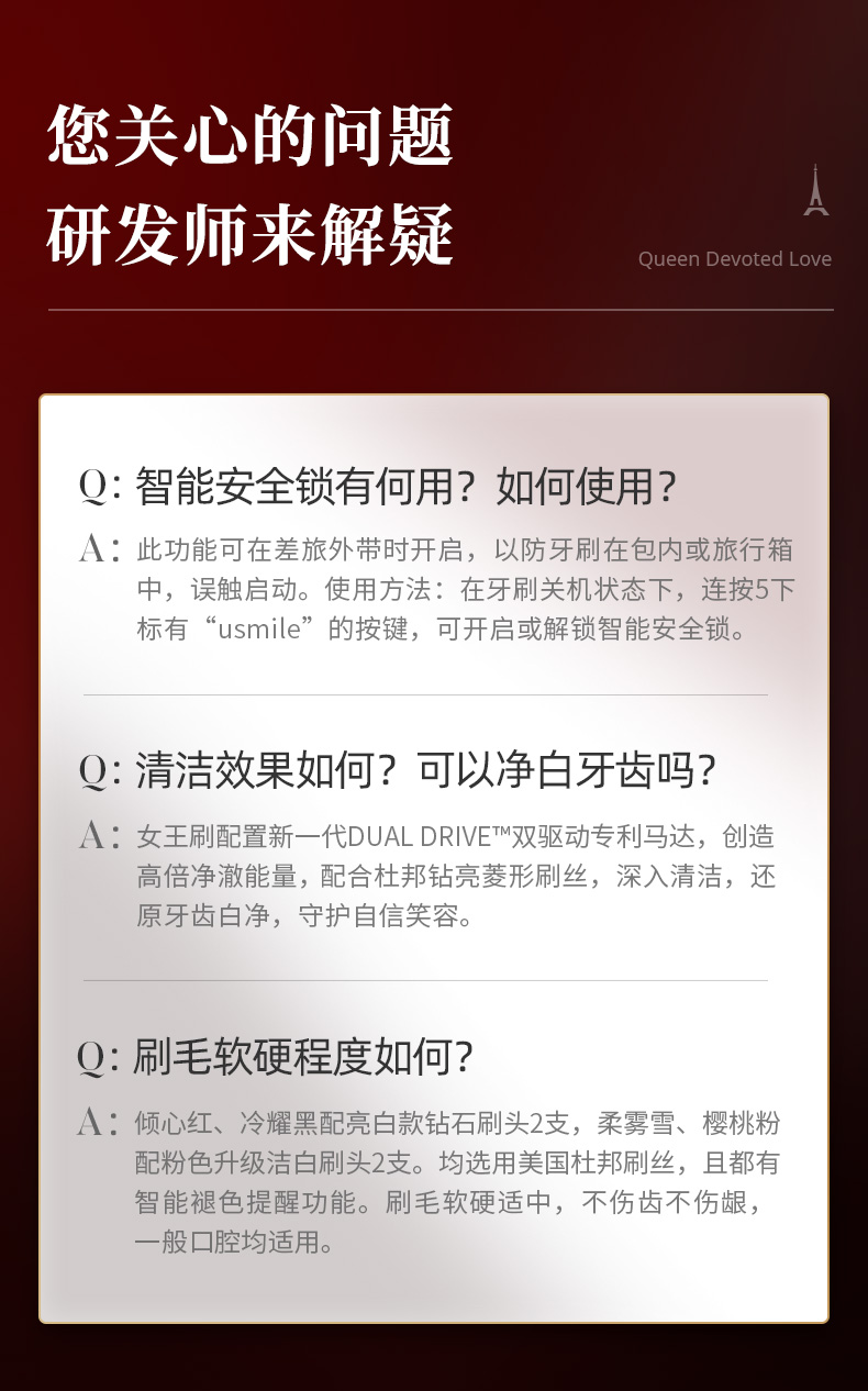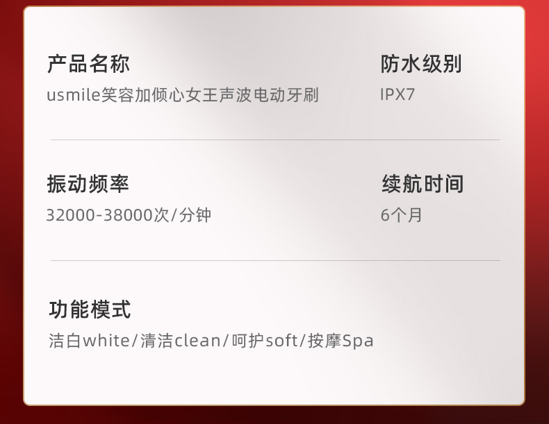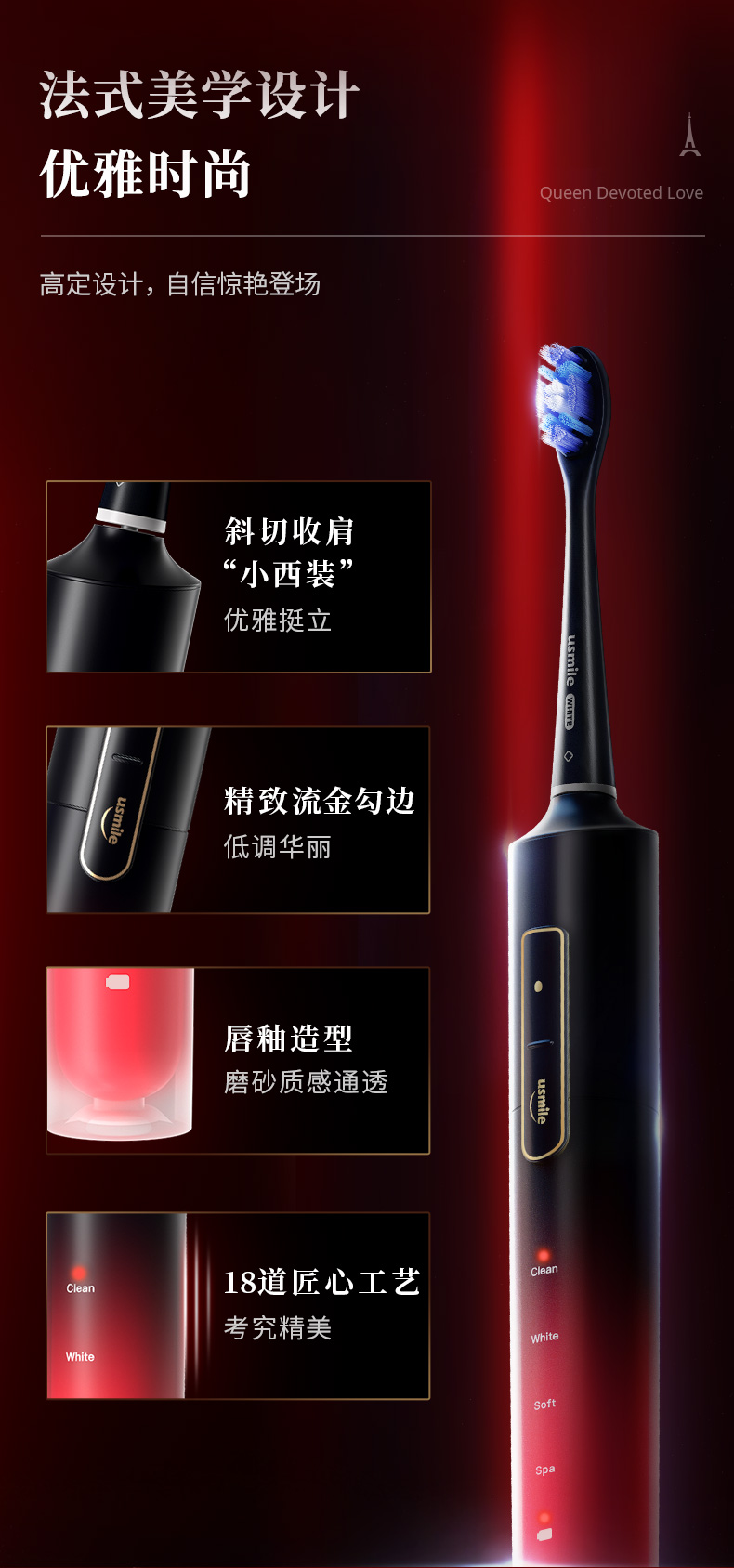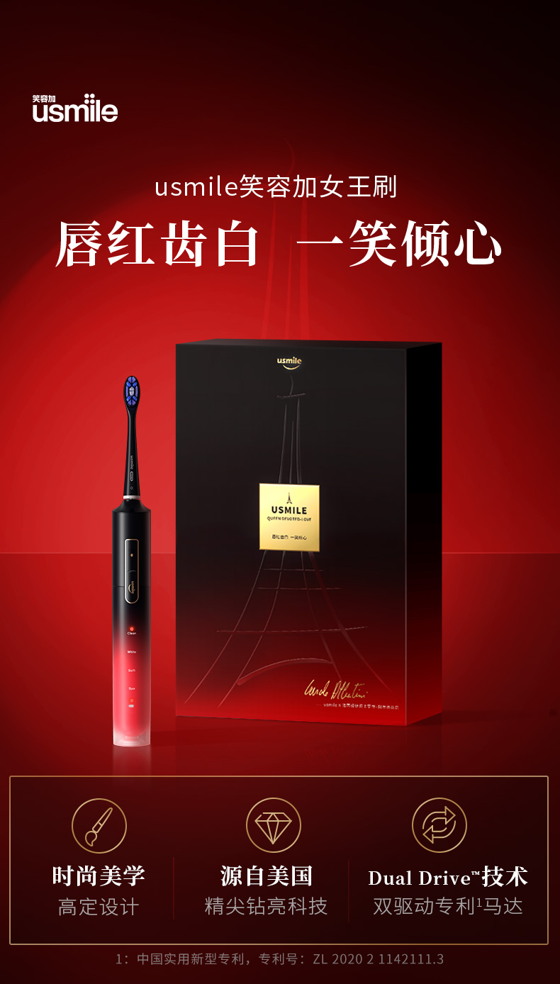 usmile笑容加 倾心女王声波电动牙刷 (倾心红)U4