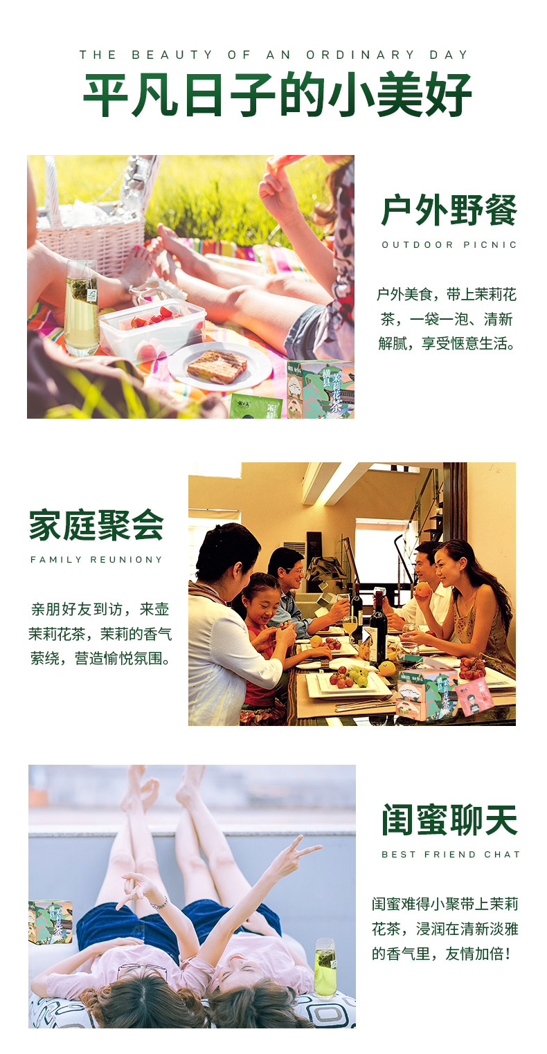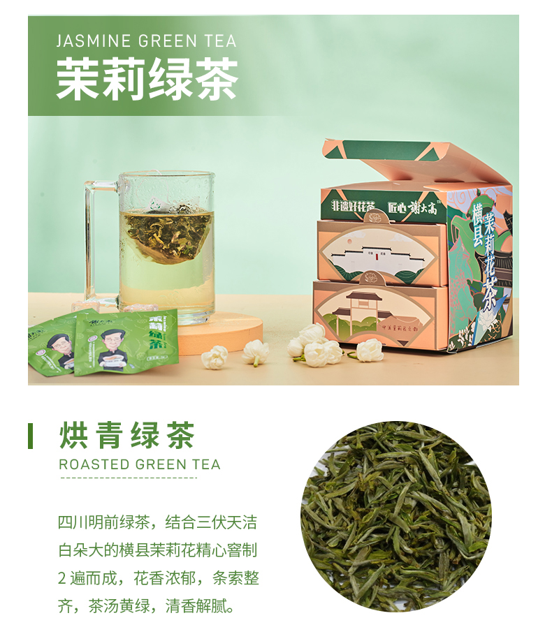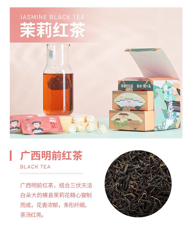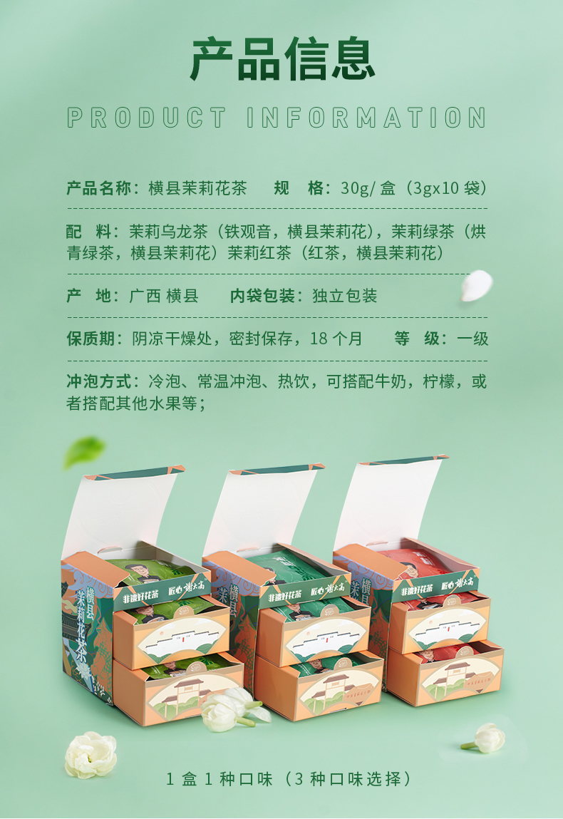 产品规格:横县茉莉花干50g/袋*3袋、茉莉乌龙、红茶、绿茶(3g*10包)