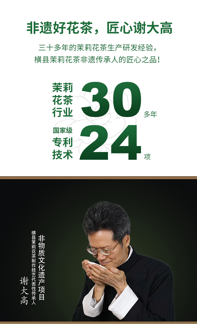 【非遗传承人匠心之品 来着“中国茉莉之都”】谢大高横县茉莉花 国家地理产品 滋味浓醇叶衣嫩匀 耐冲泡 多规格