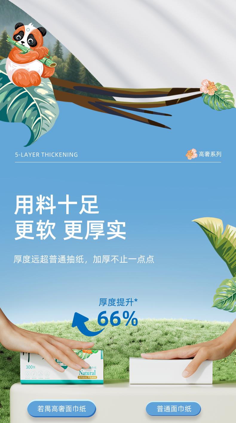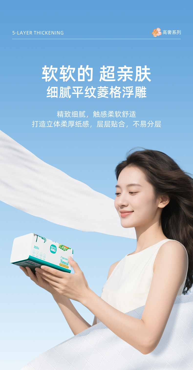 若禺软抽纸高奢禺宝系列5层加厚300张/包1件8包RR2108