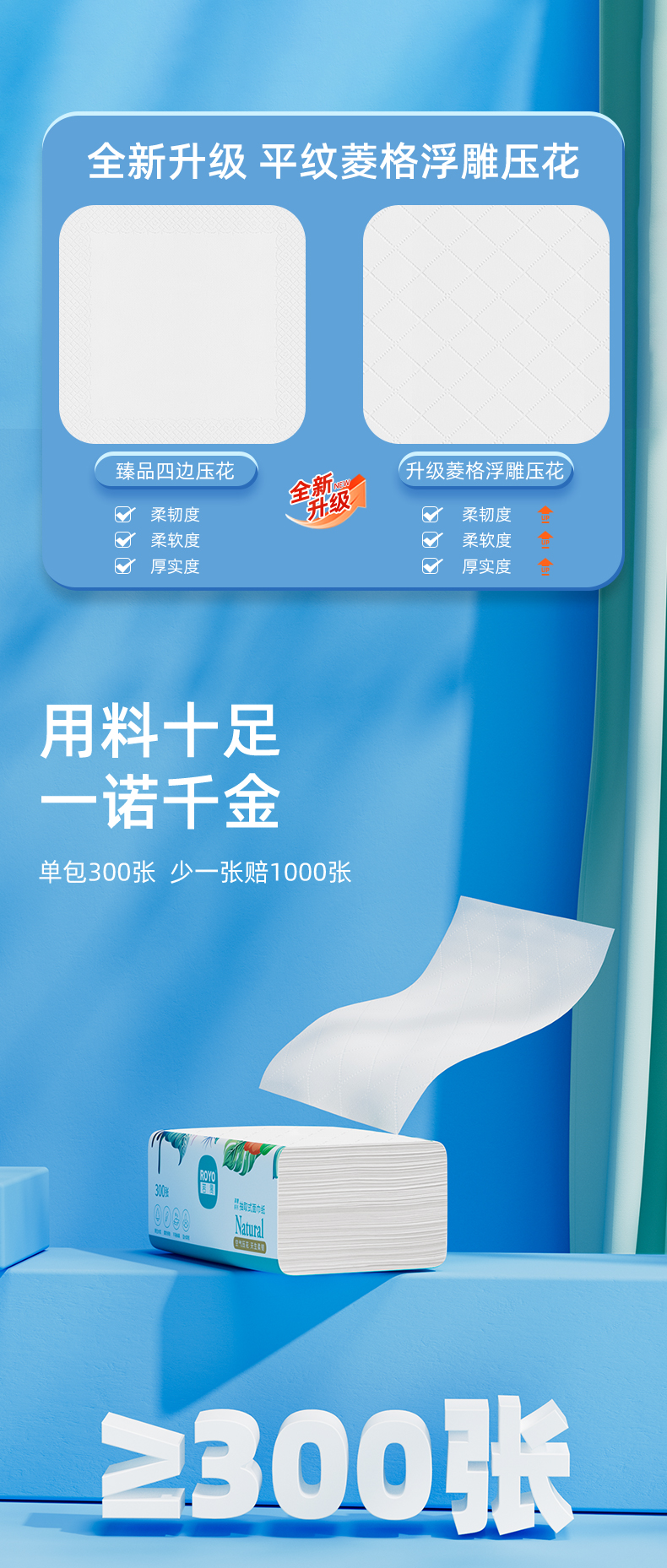 若禺采琪采软抽纸4层300张/包原生木浆经典升级柔爽抽取式面巾纸1件27包 QZR024B27