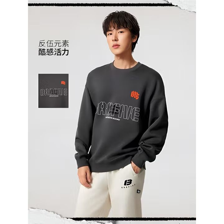 李宁男子2025秋季套头印花运动上衣健身卫衣AWDV323-6