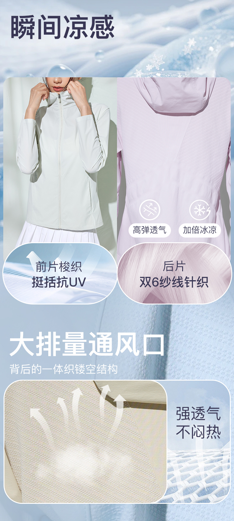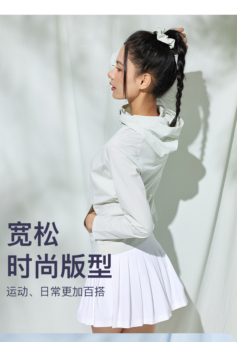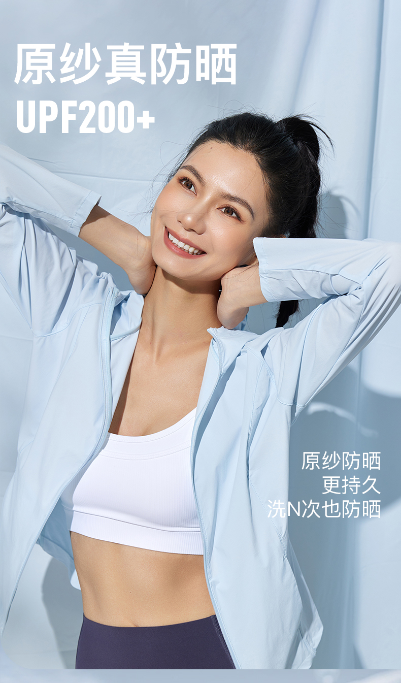 Leorrey/乐拉原纱防紫外线一体织高透气凉感运动连帽防晒衣外套