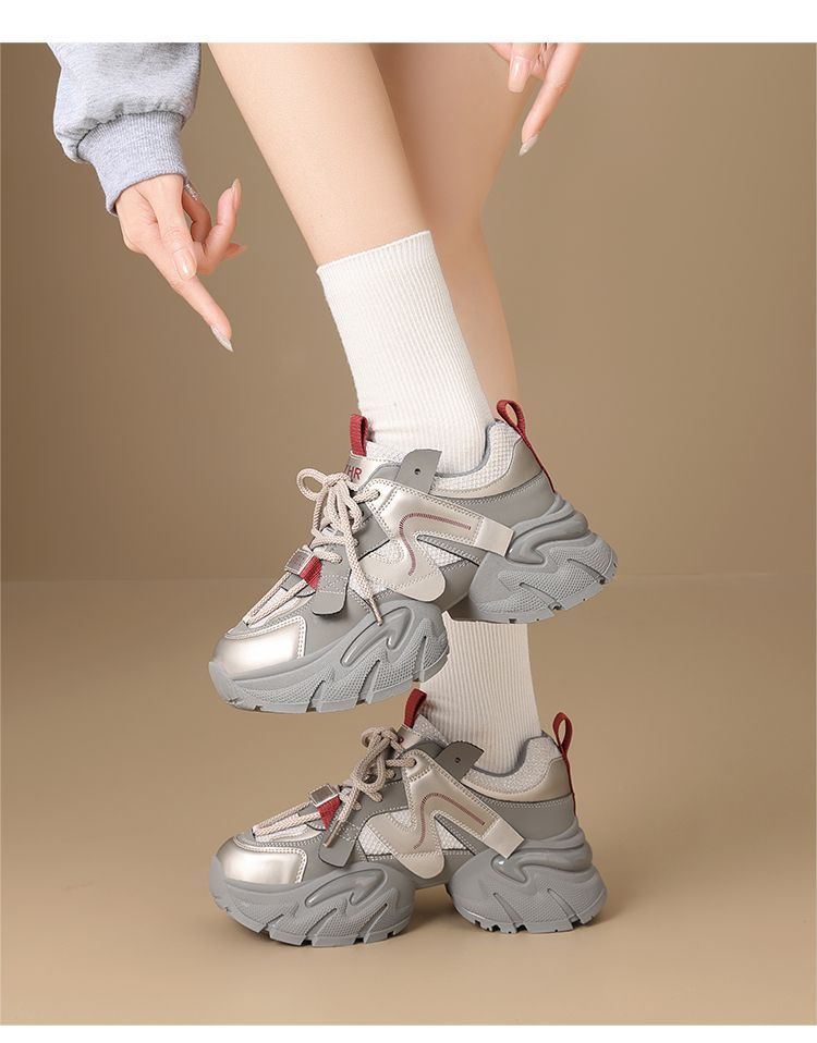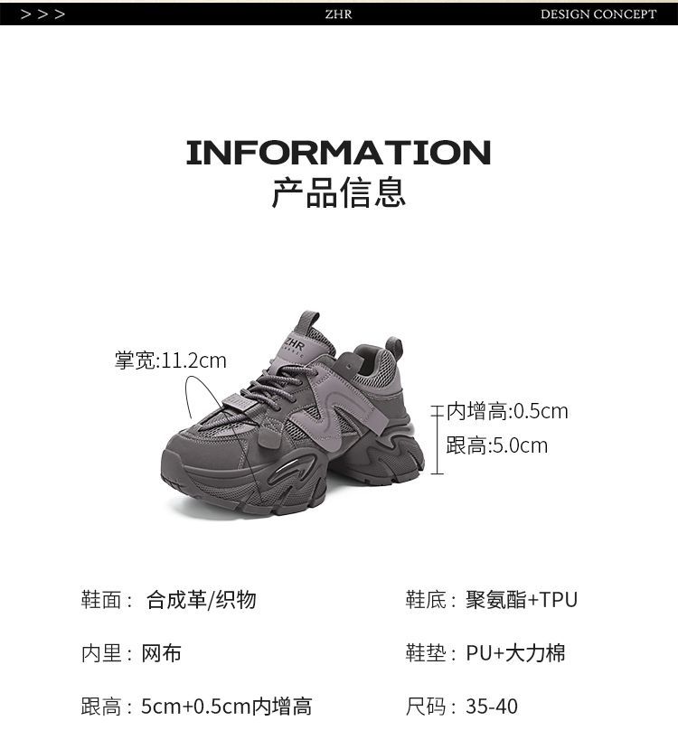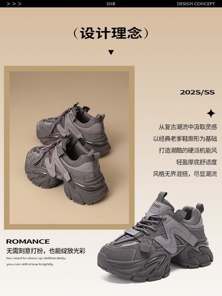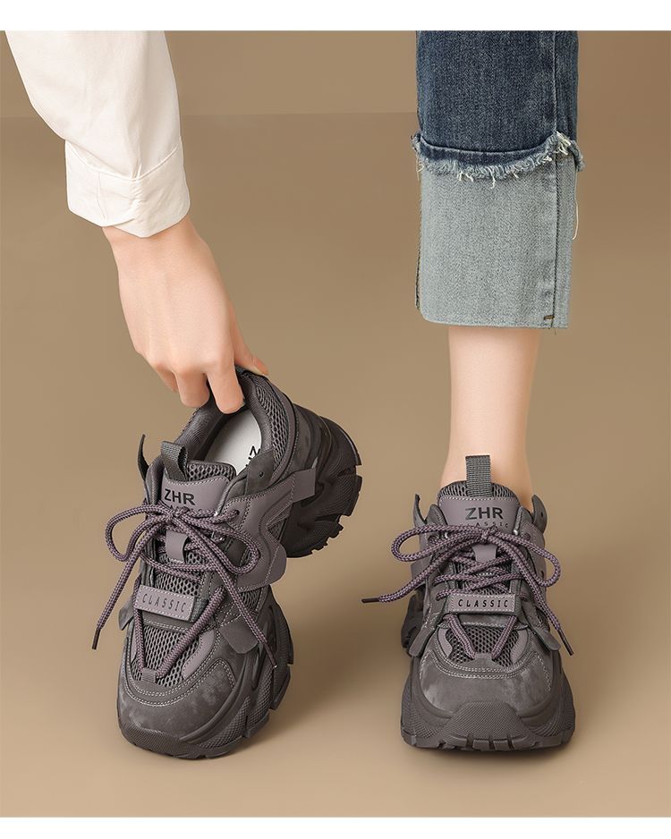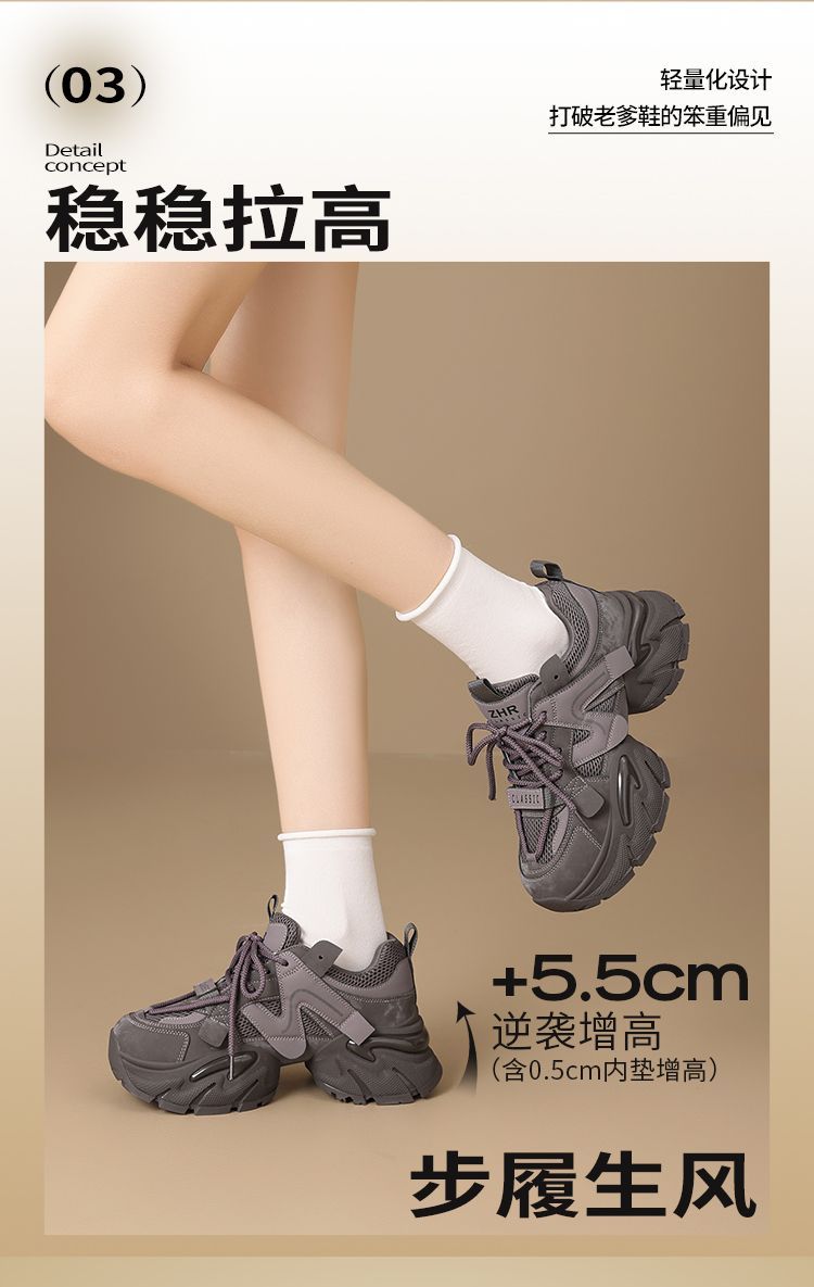 ZHR则则厚底老爹鞋女2026春季新款小个子增高紫色户外运动休闲鞋