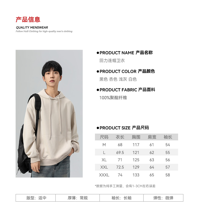 回力卫衣男士春秋季美式重磅潮牌外套2025青少年新款纯色连帽上衣