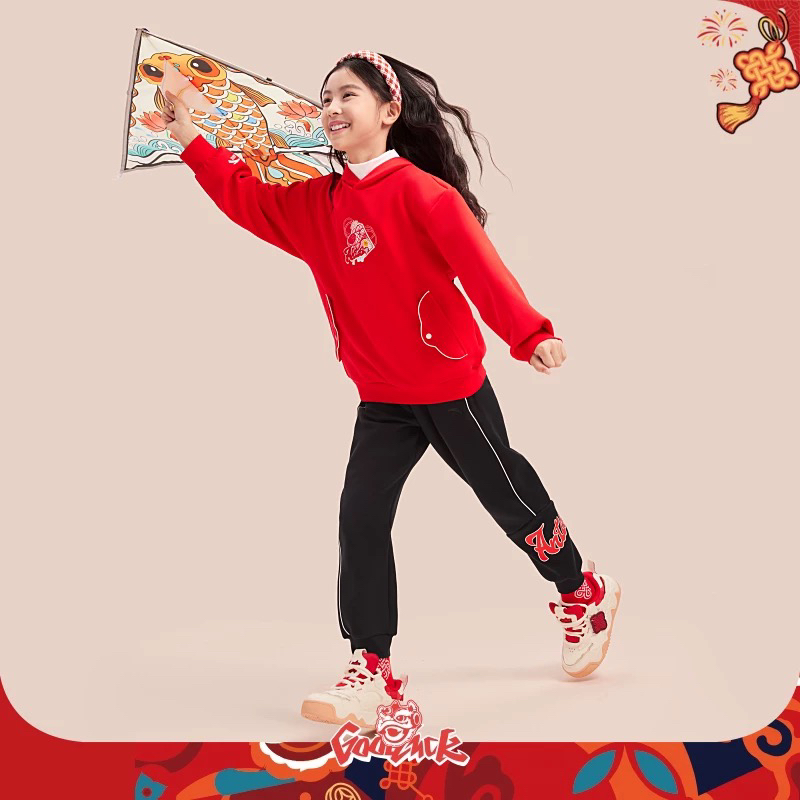 MJ|安踏儿童春季新品新年系列女大童套头衫连帽卫衣内搭外穿时尚百搭