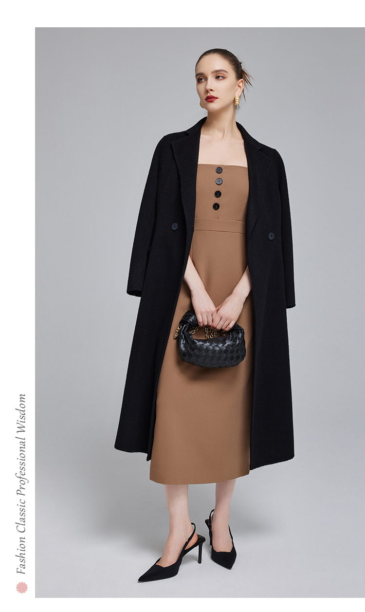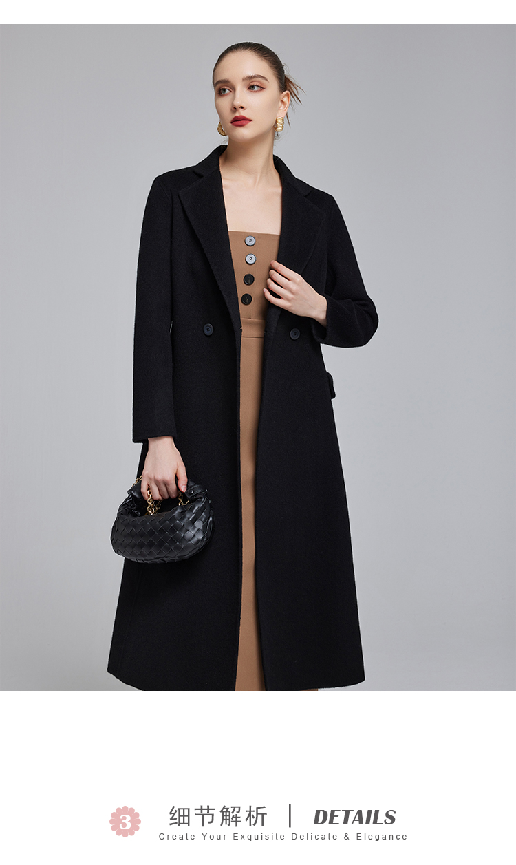 NH927斯尔丽23冬季新款气质时尚收腰修身西装领长款双面呢大衣