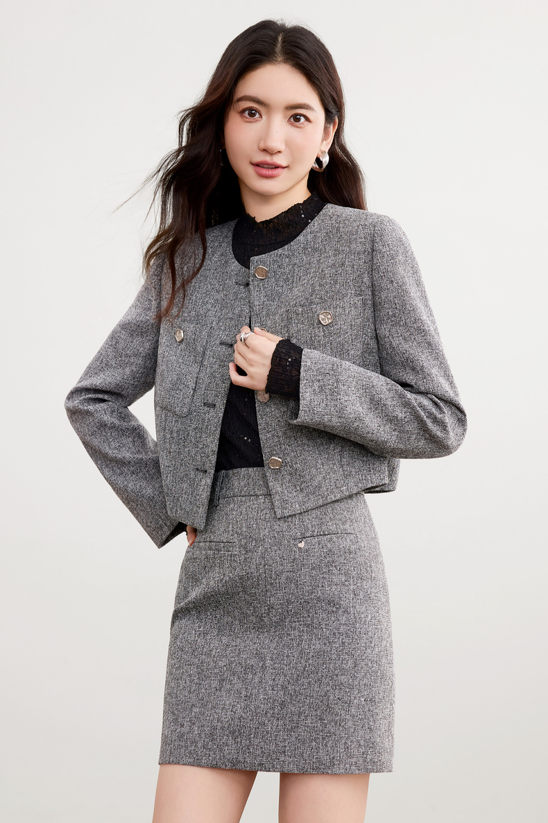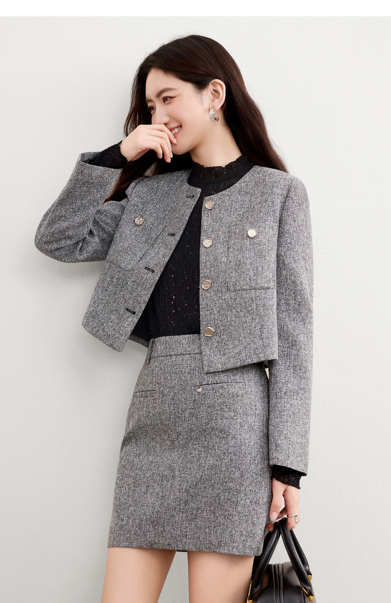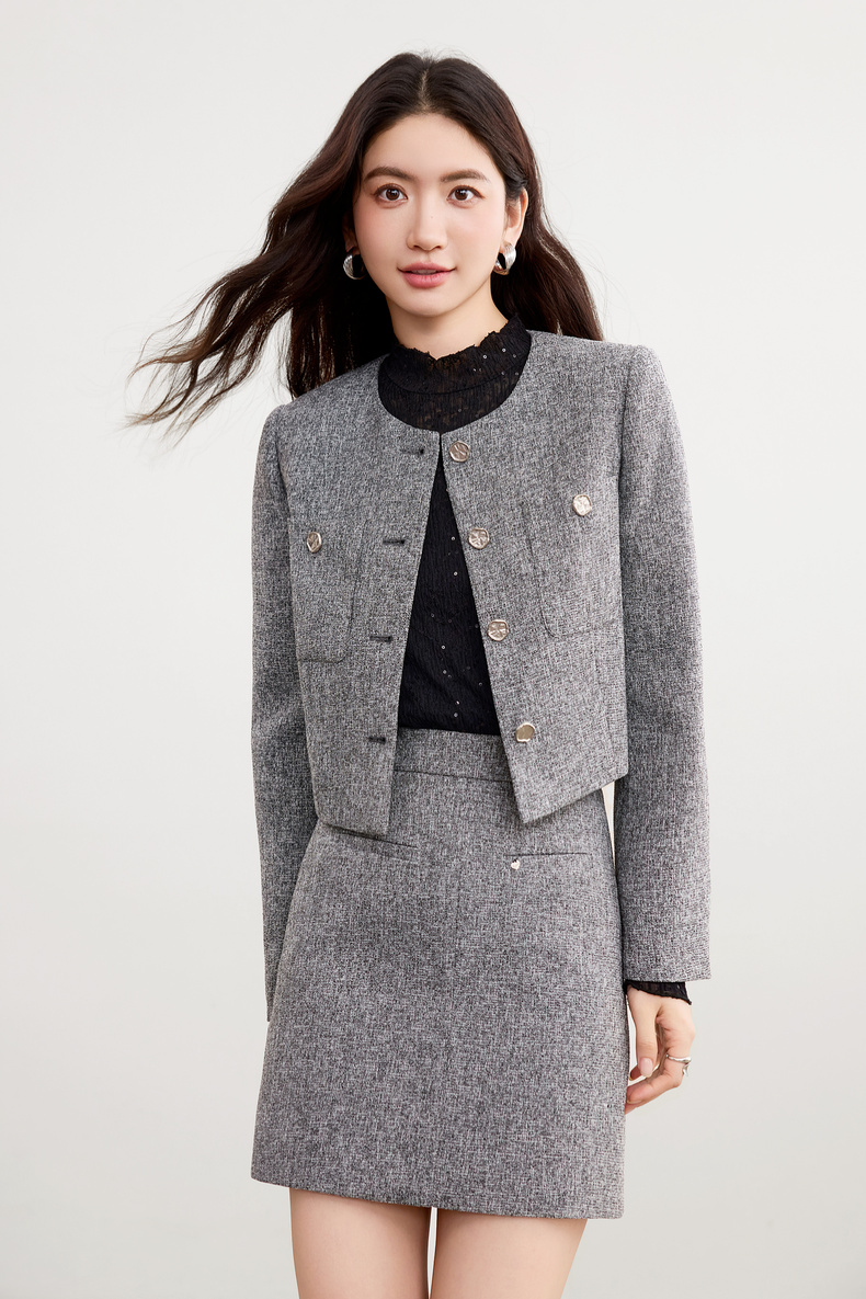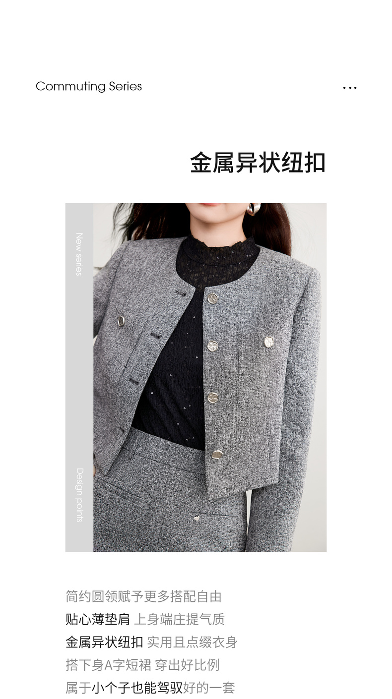 【内购】【小香风套装裙】优雅金属异状纽扣垫肩外套直筒A字裙两件套-153ZA3095