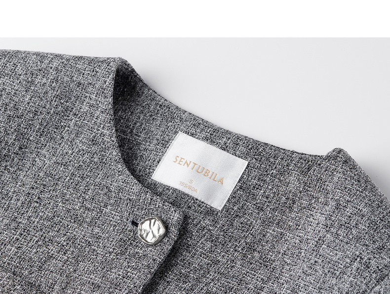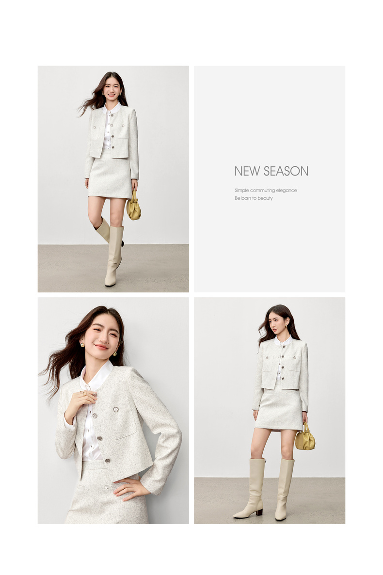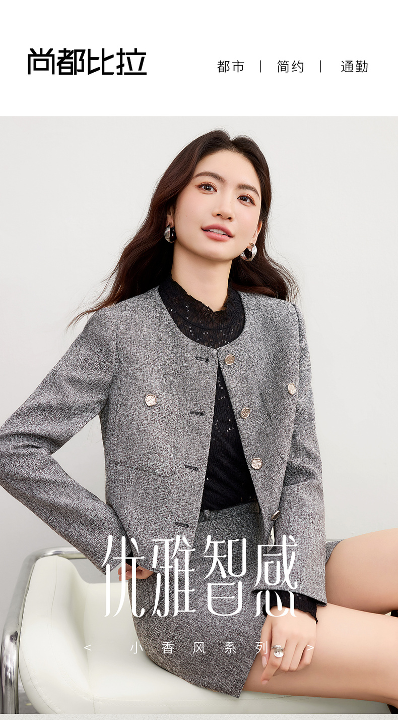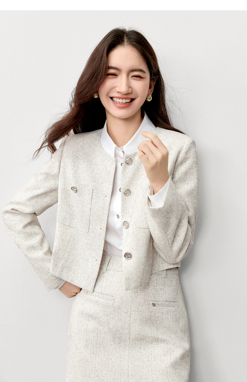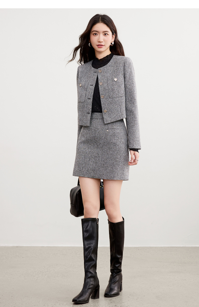 【内购】【小香风套装裙】优雅金属异状纽扣垫肩外套直筒A字裙两件套-153ZA3095