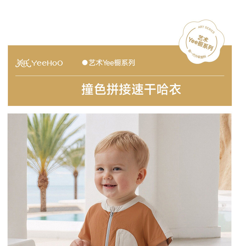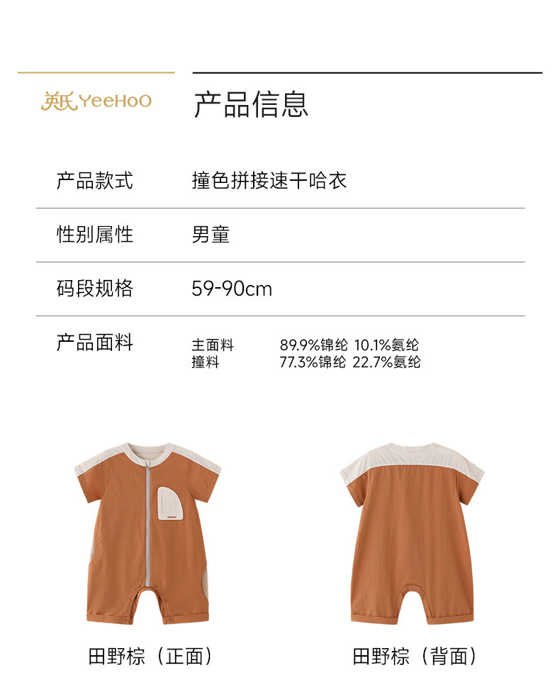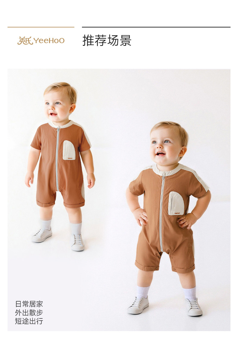 英氏婴儿连体衣男女童衣服夏季短袖宝宝吸汗速干透气YRHBJ2S048A