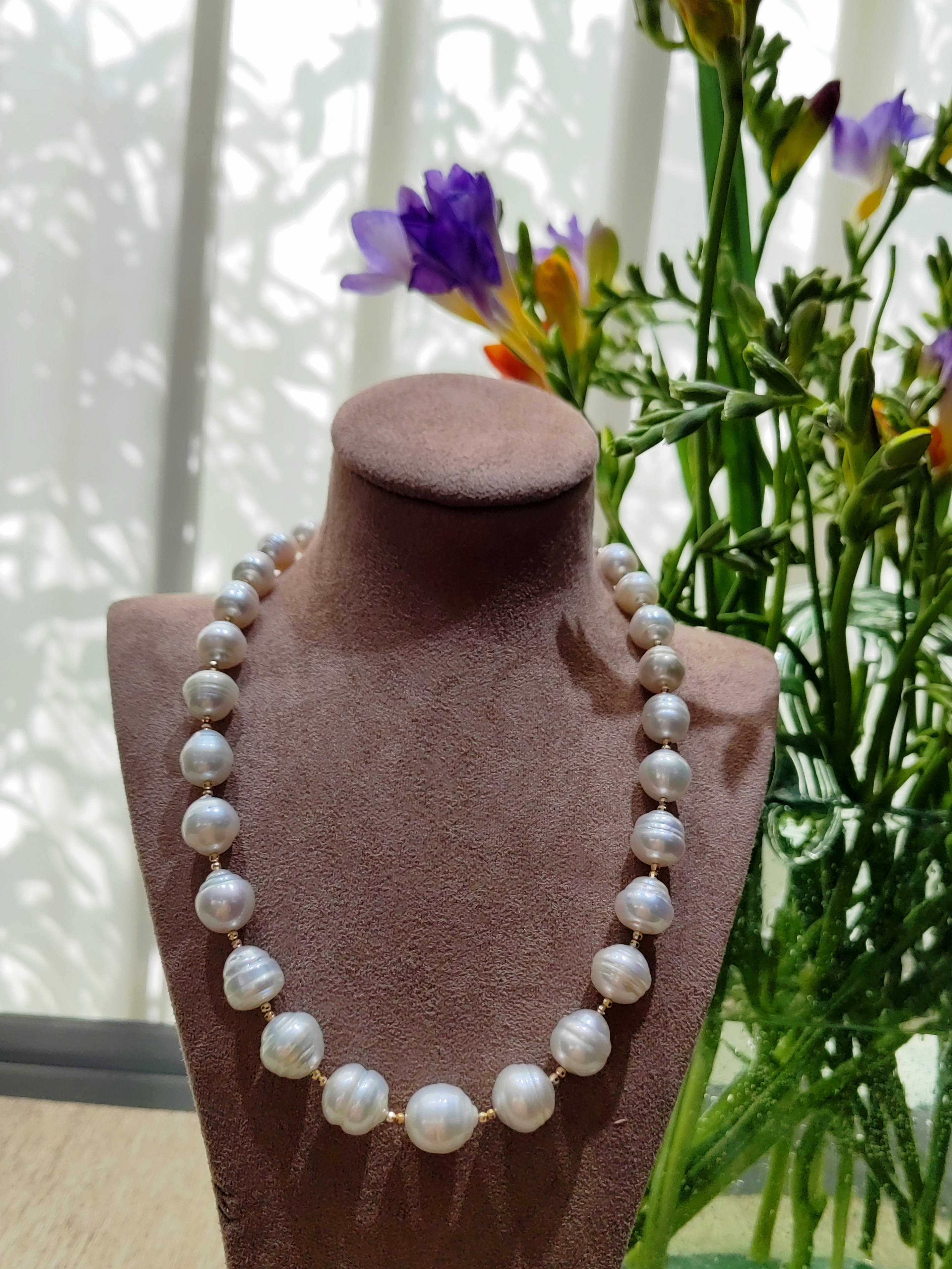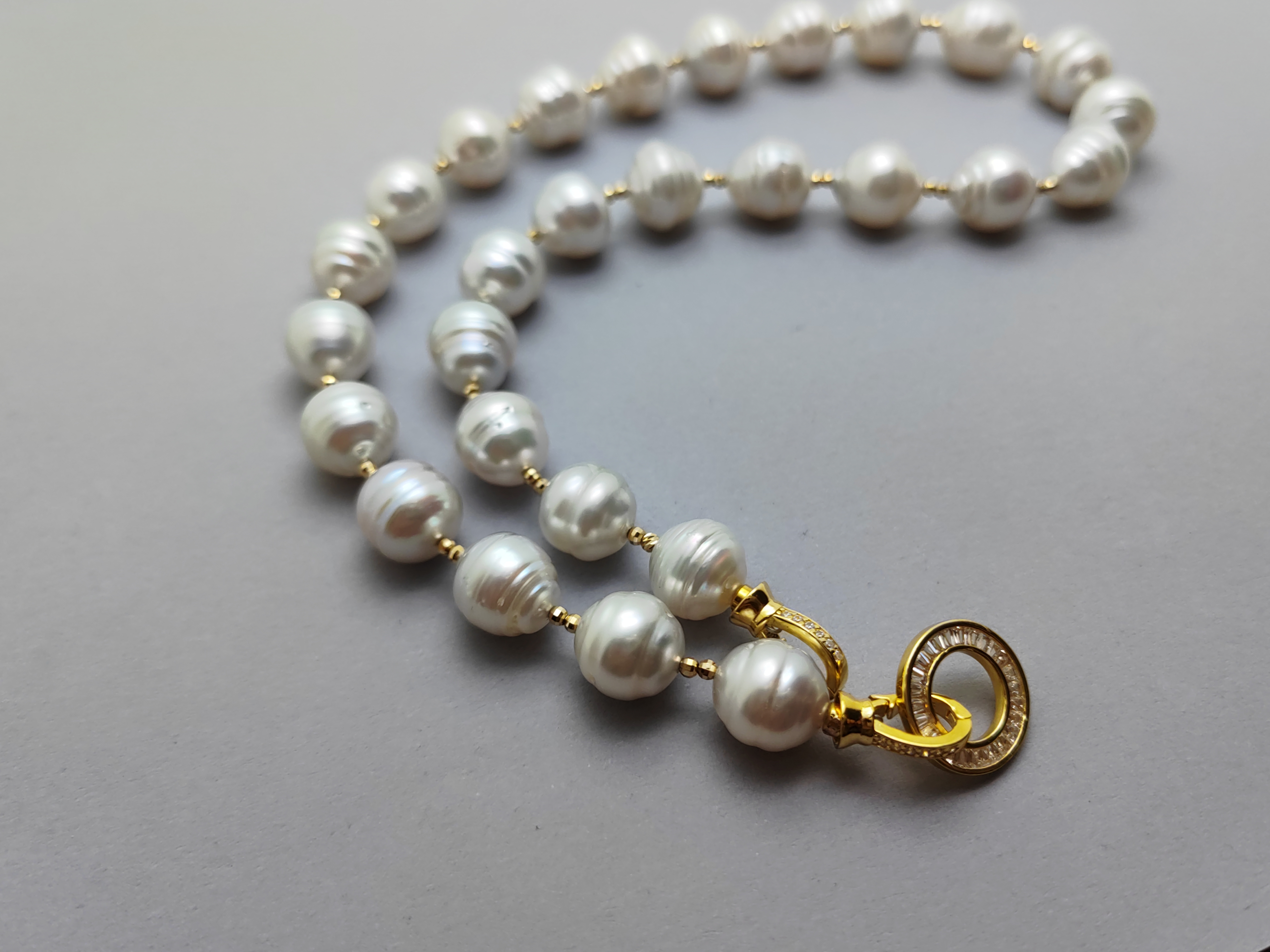珠光最好的海水螺纹珠,11-13mm,银扣头。