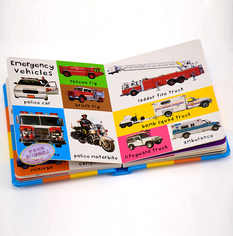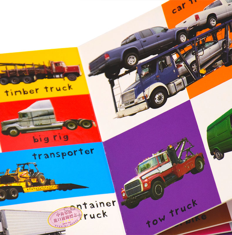 100个不同的卡车及其英语词汇,附以色彩鲜艳的相片,能有效地让刺激孩子的视觉,然后深深地印在脑海中。