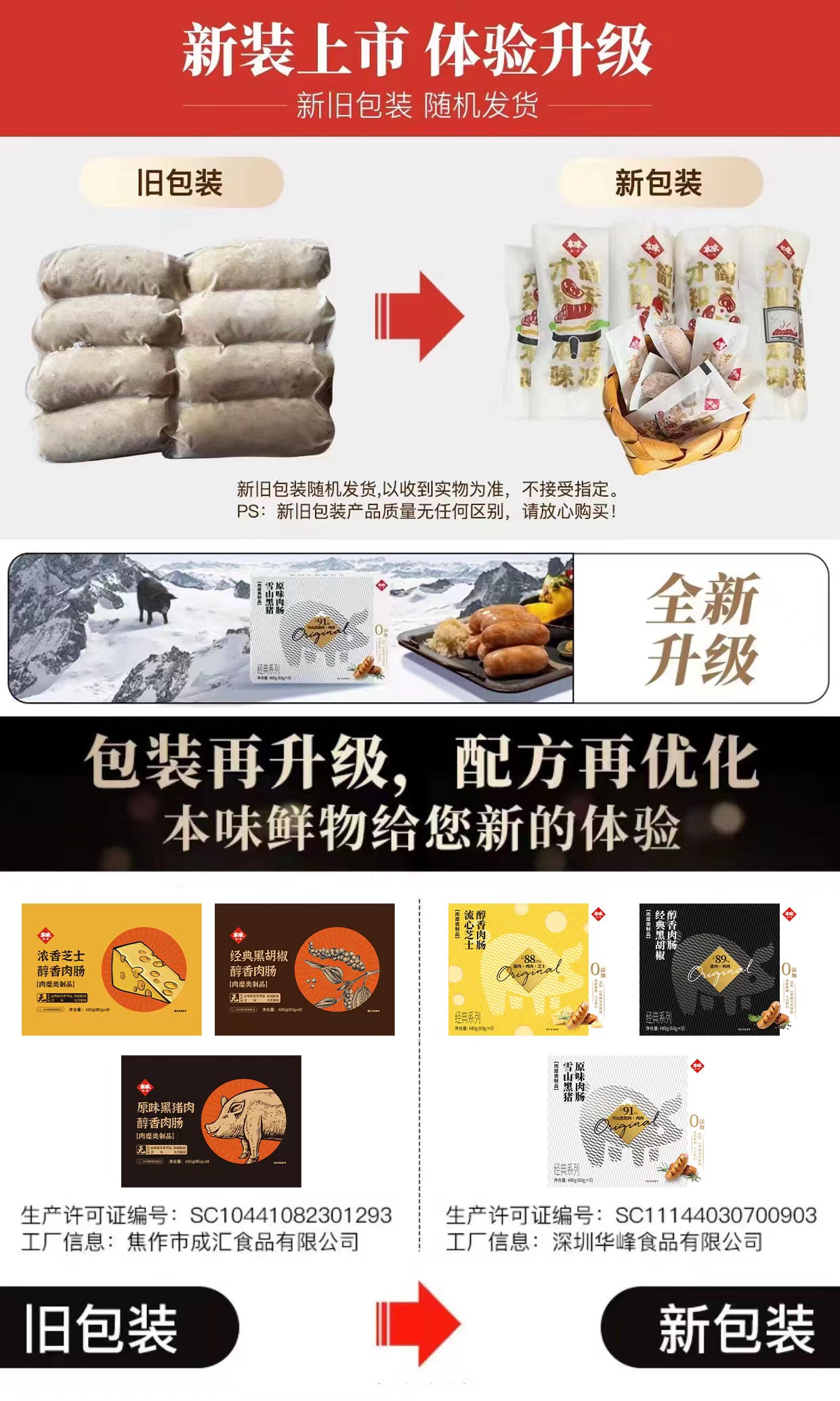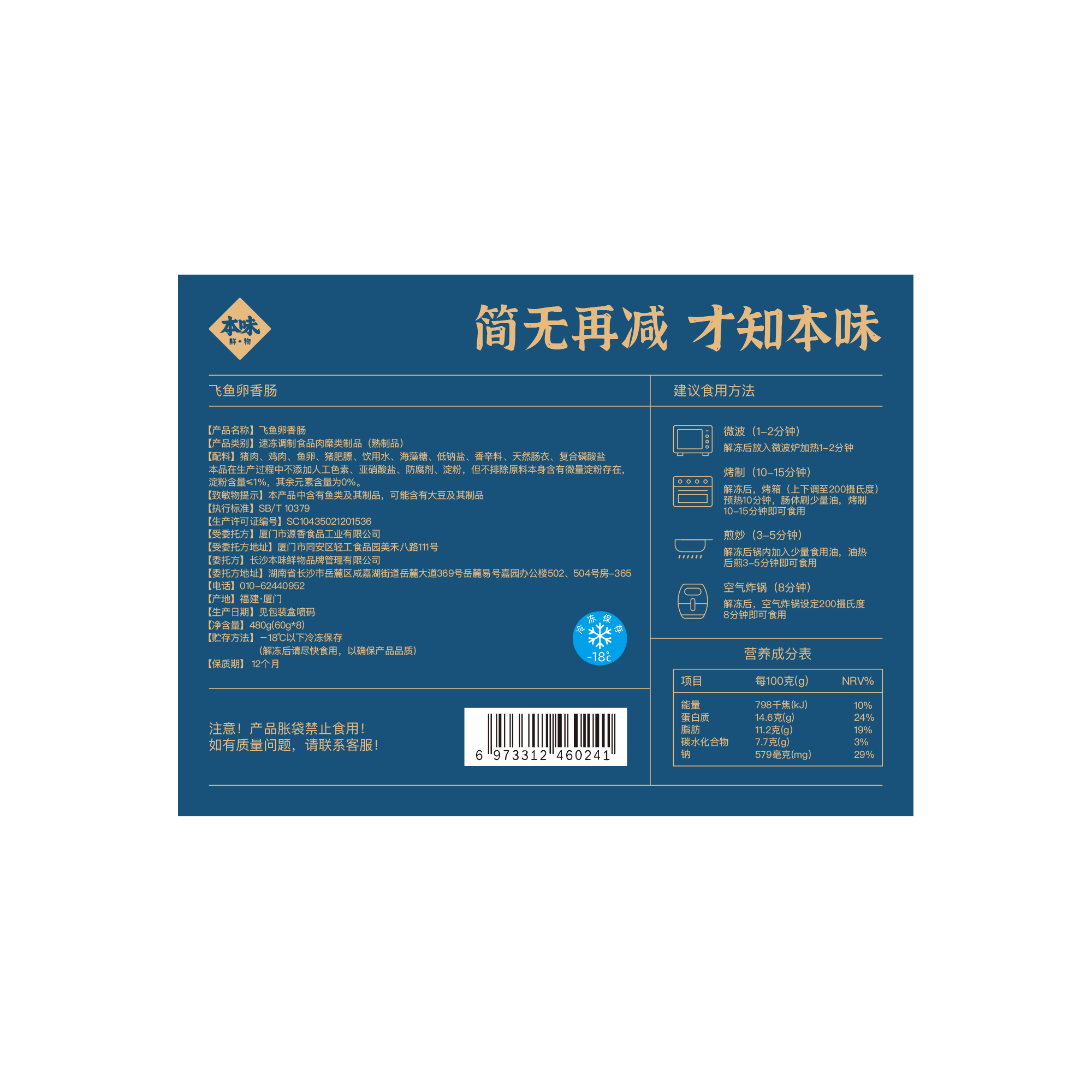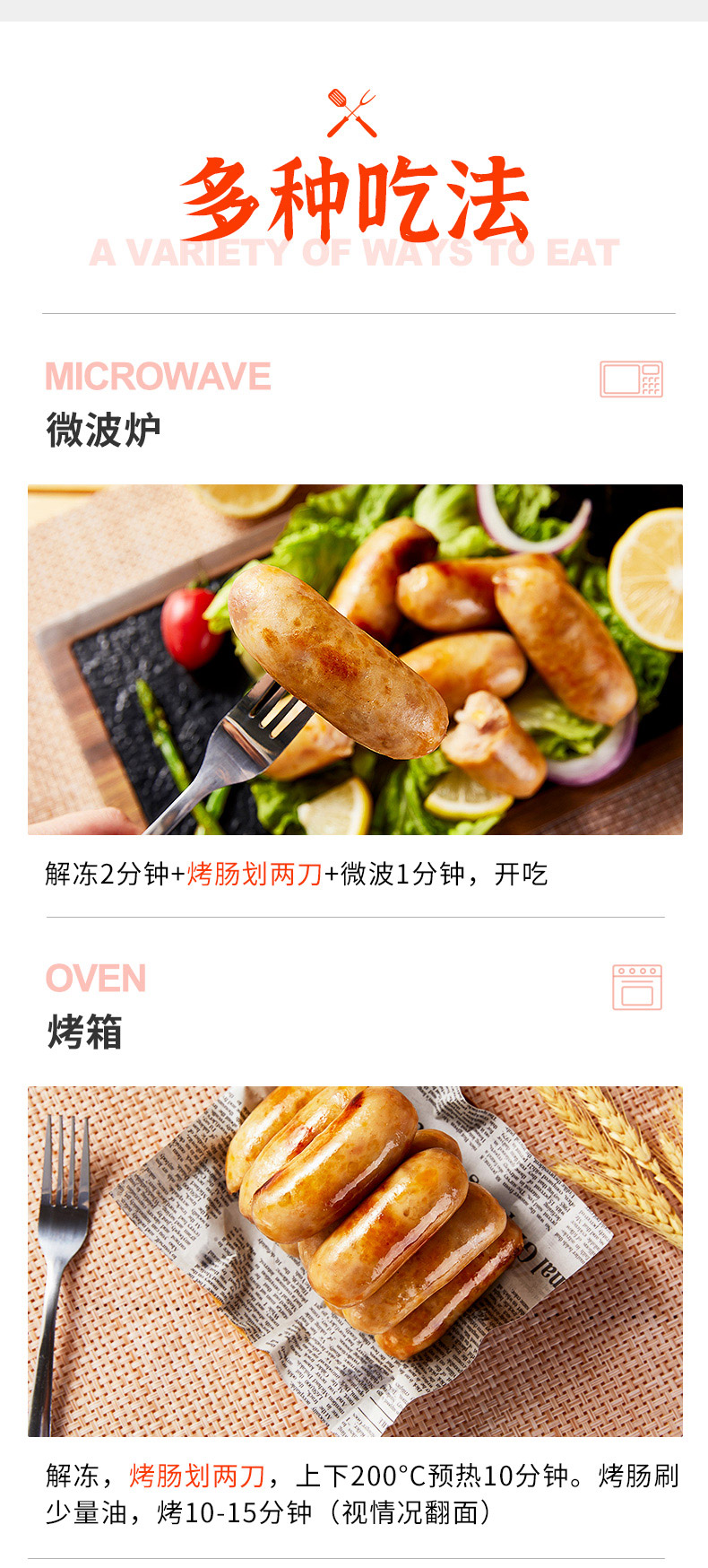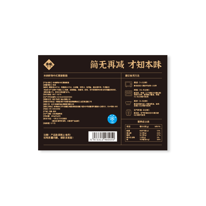 买四送三:买4盒赠正装480g烤肠*1盒(口味随机)+原切培根75g*1包+定制刀叉1对