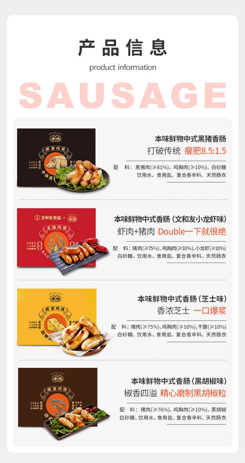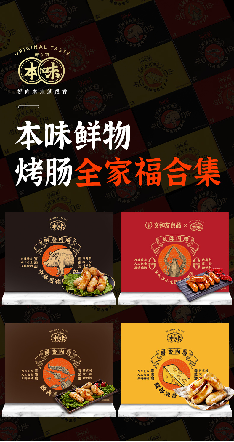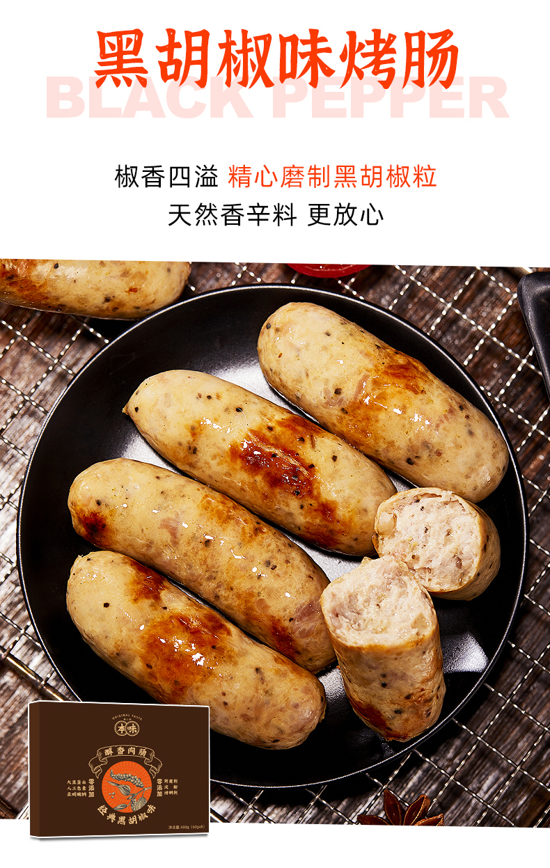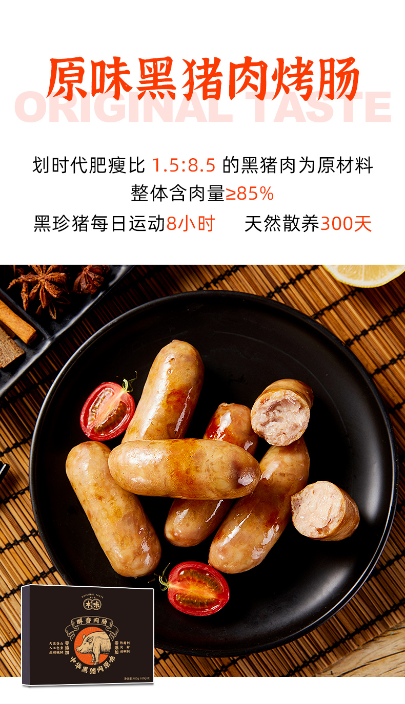 【买二送一】本味鲜物烤肠 480g*2盒装(8根/盒) 四种口味多重选择,黑猪肉味/黑椒/芝士/文和友小龙虾烤肠【85%含肉量】480g/盒(60g*8根 )