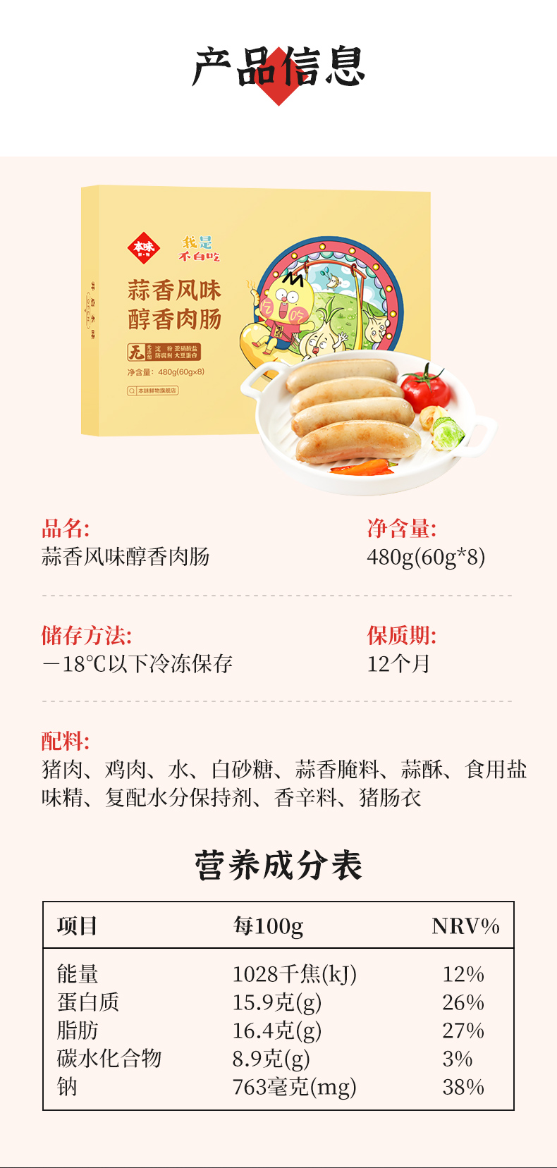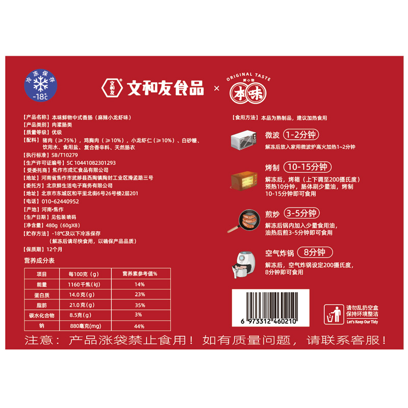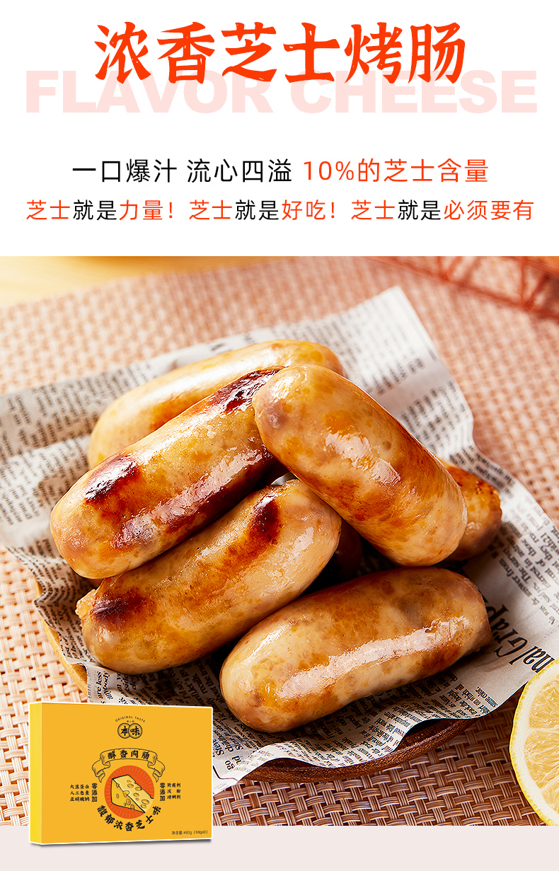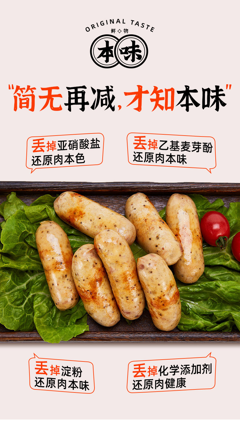 【买二送一】本味鲜物烤肠 480g*2盒装(8根/盒) 四种口味多重选择,黑猪肉味/黑椒/芝士/文和友小龙虾烤肠【85%含肉量】480g/盒(60g*8根 )