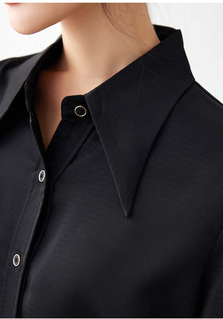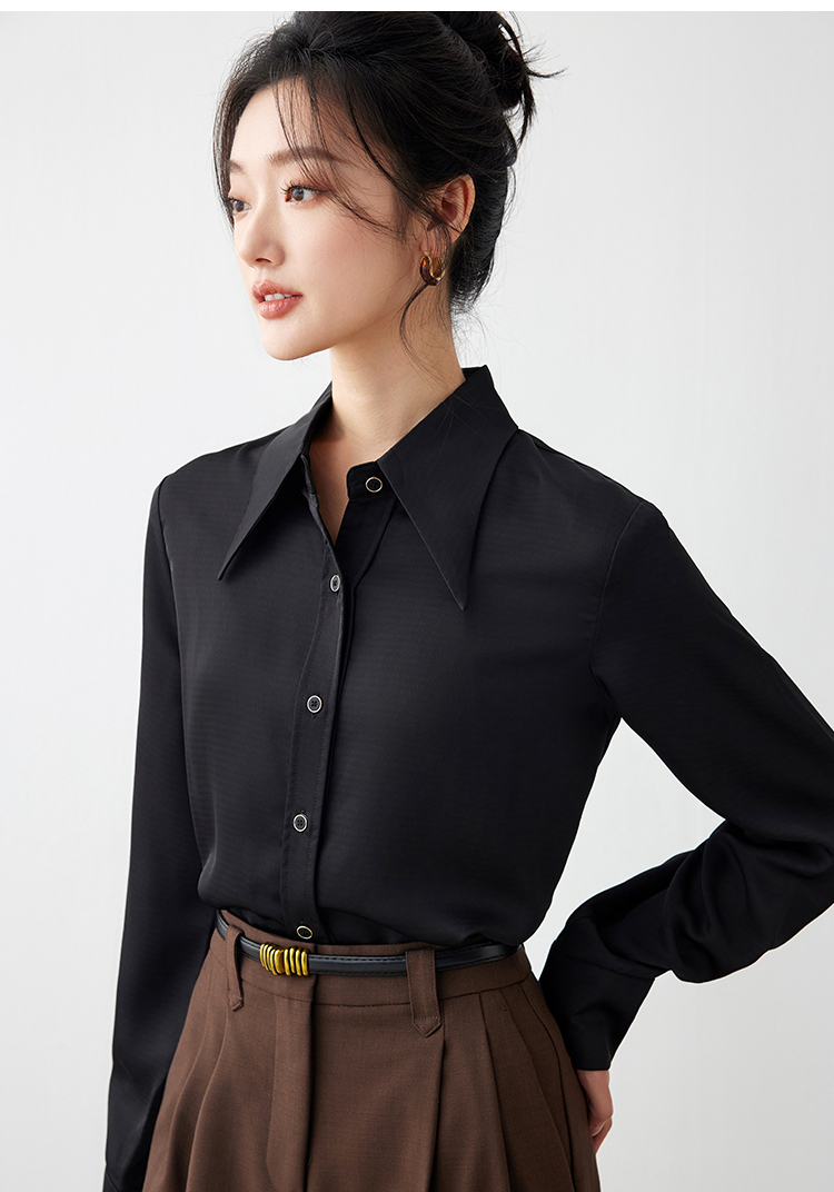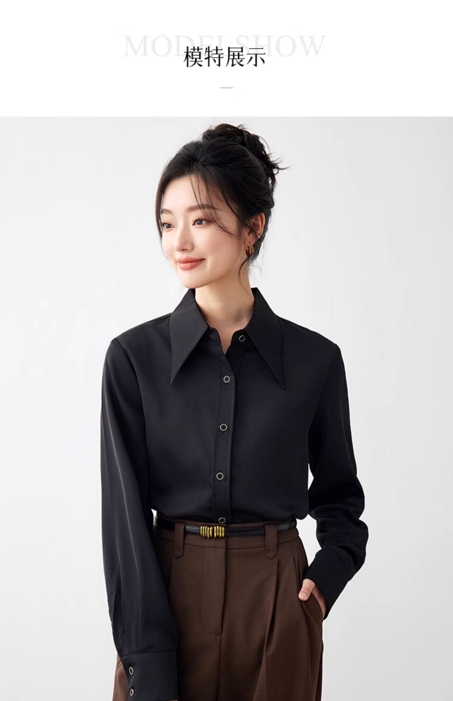 IWY/经典黑色职业衬衫女长袖早秋新款设计感教师内衬职业正装通勤工作服AB195