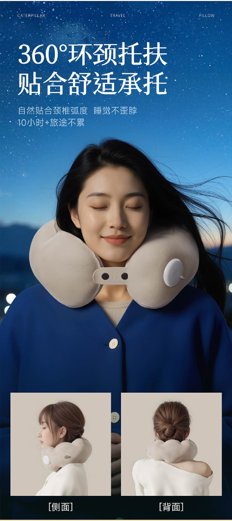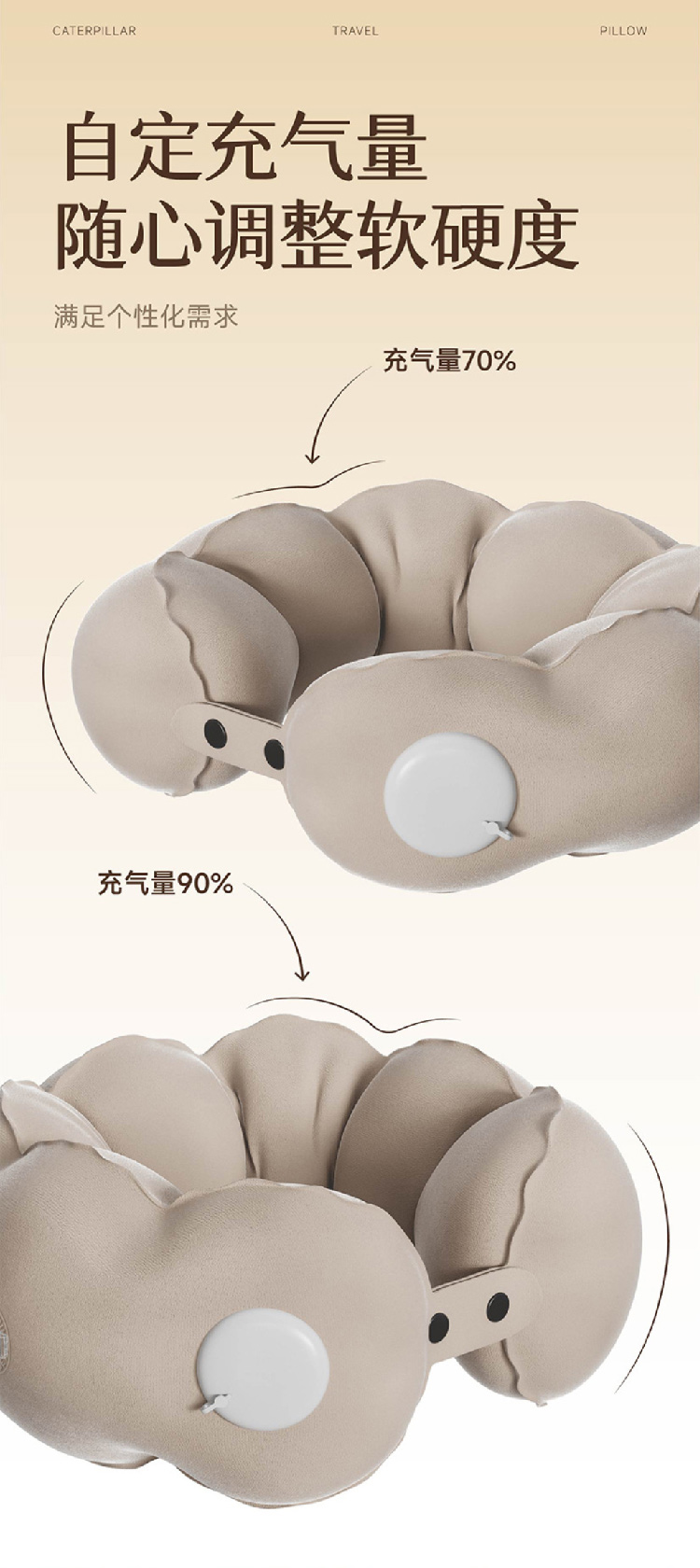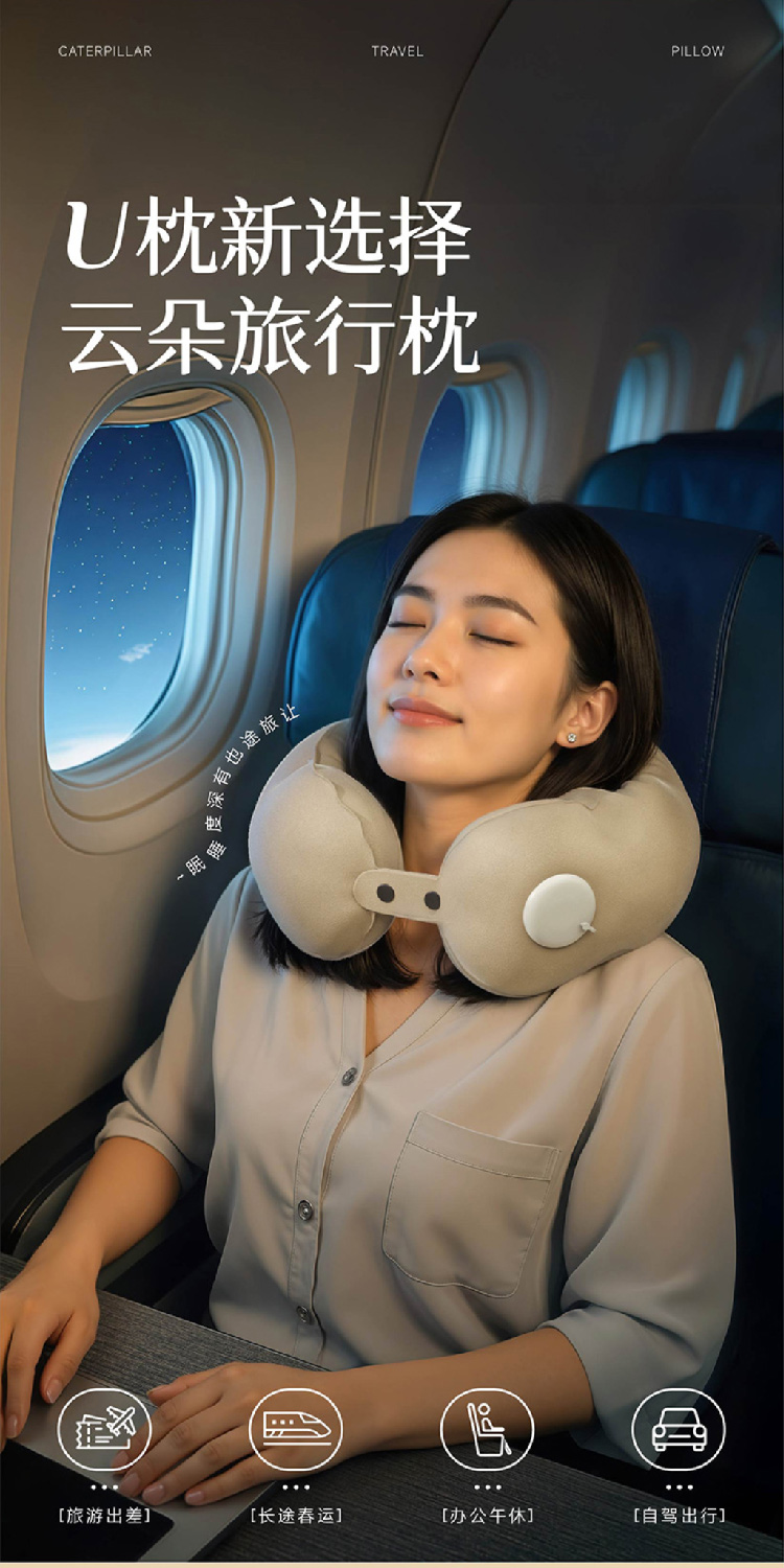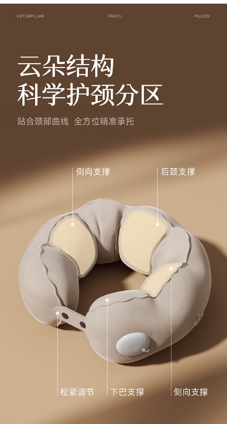 新款按压充气u型枕可折叠便携枕坐车飞机护颈枕U形枕头颈部靠枕