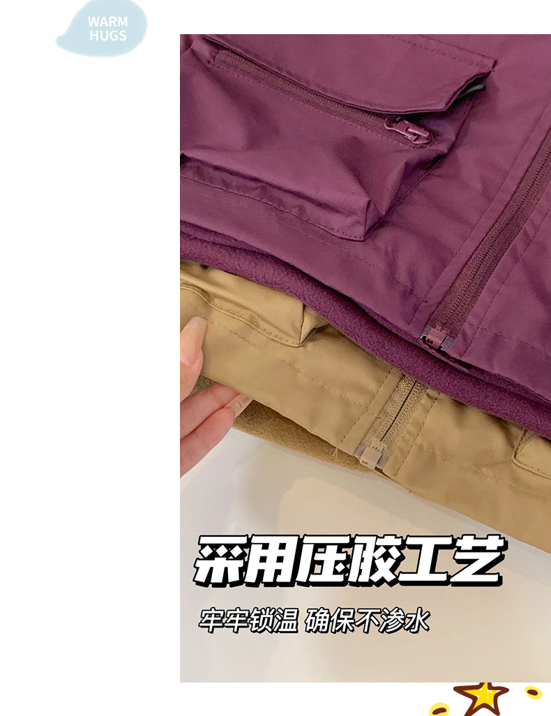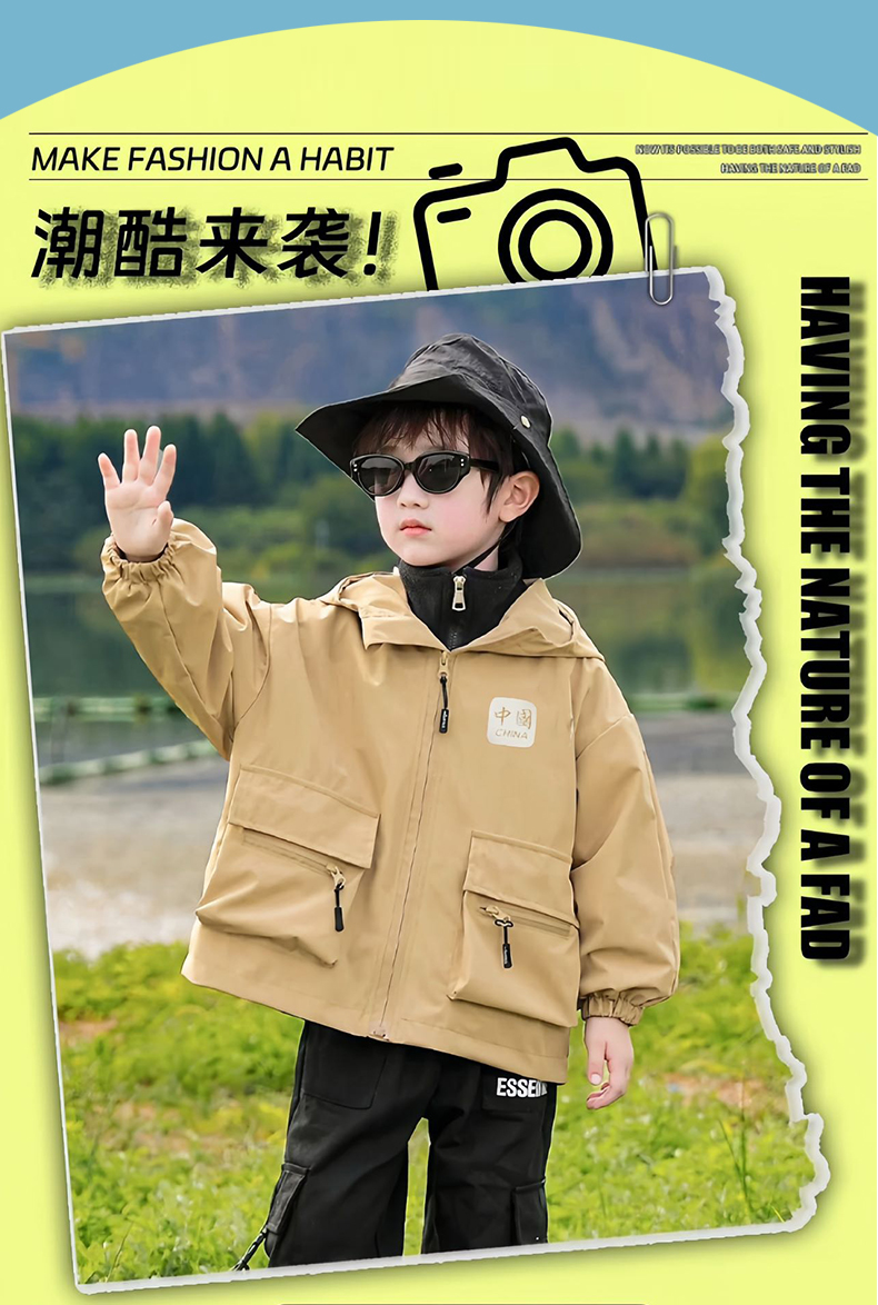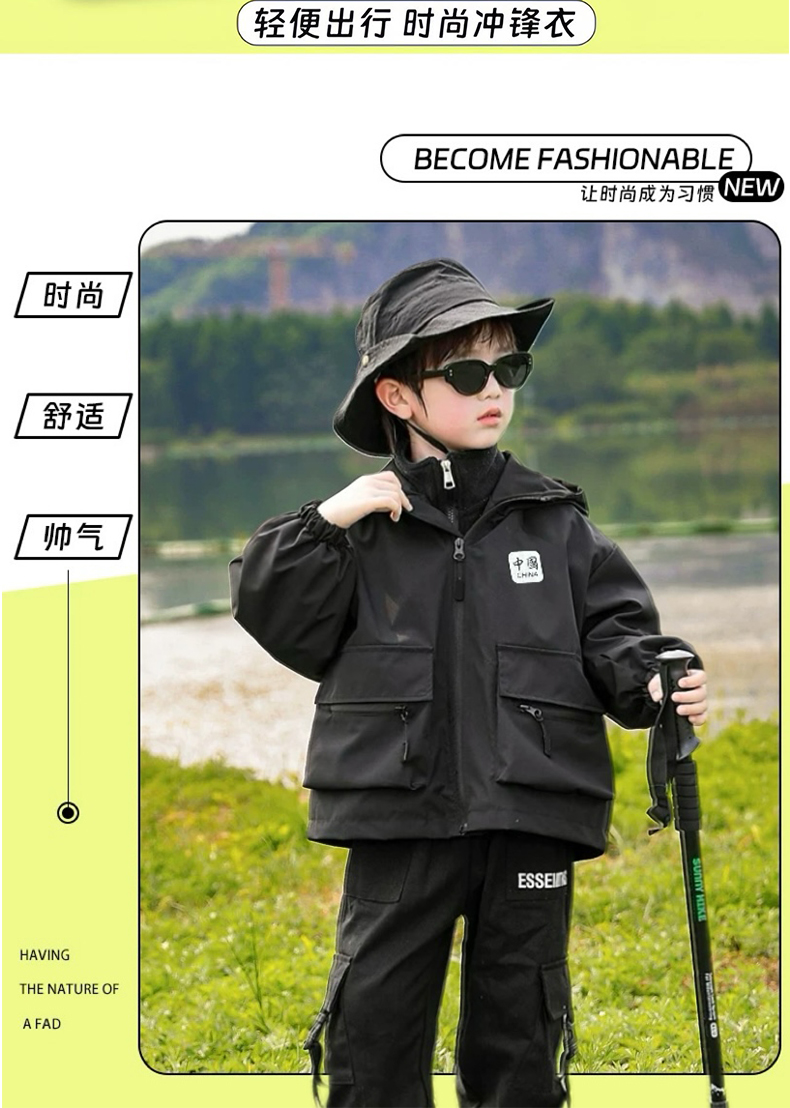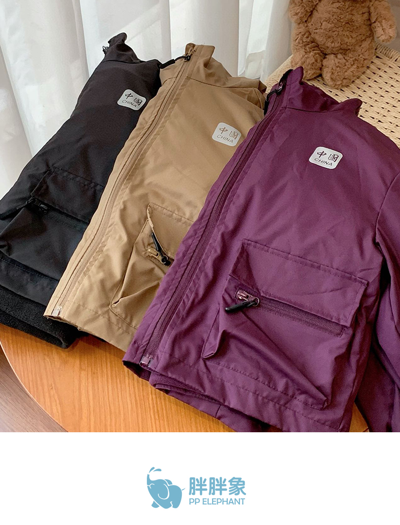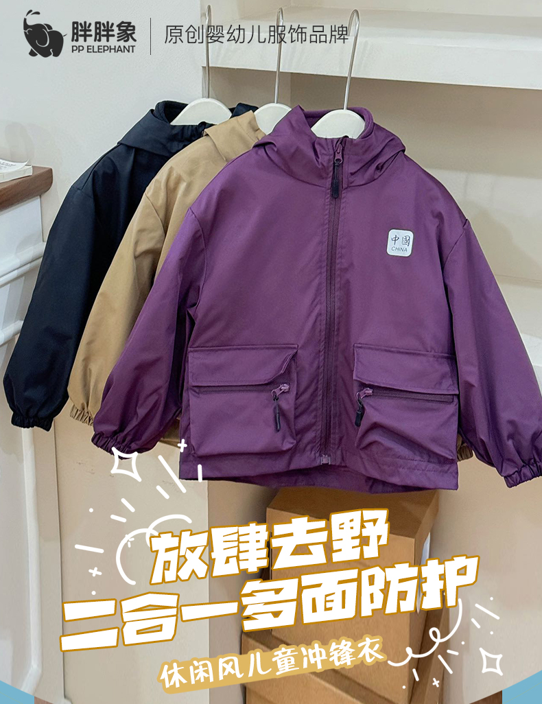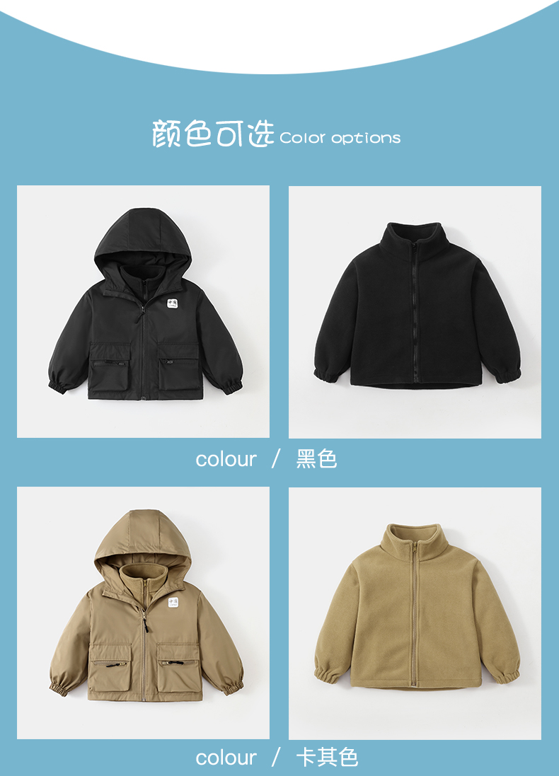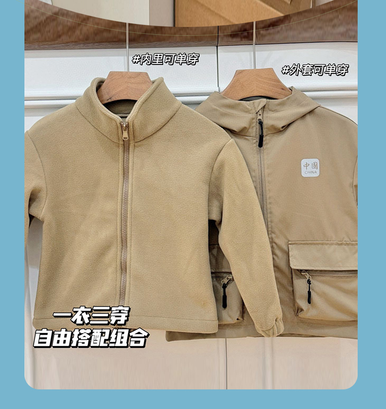 【穿三季软壳冲锋衣】胖胖象新款儿童连帽冲锋衣内胆两件套中大童保暖外套小孩秋冬装聚