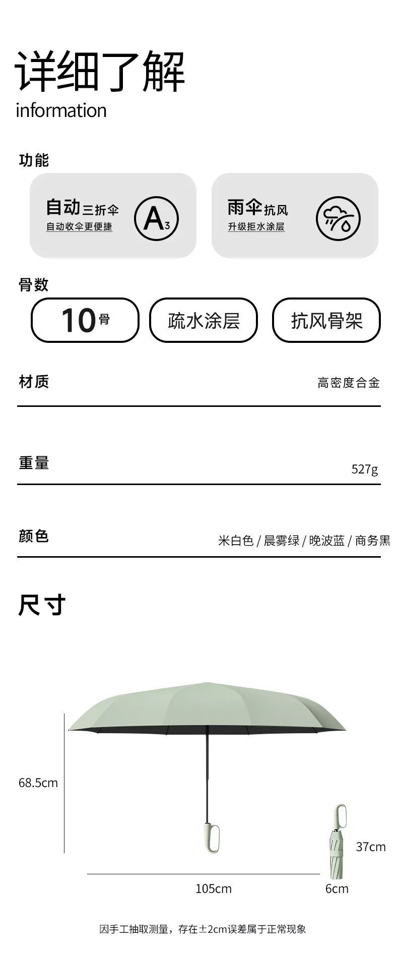 雨宝·自动晴雨伞 加大加厚伞面,可抗暴雨 UPF50+防晒