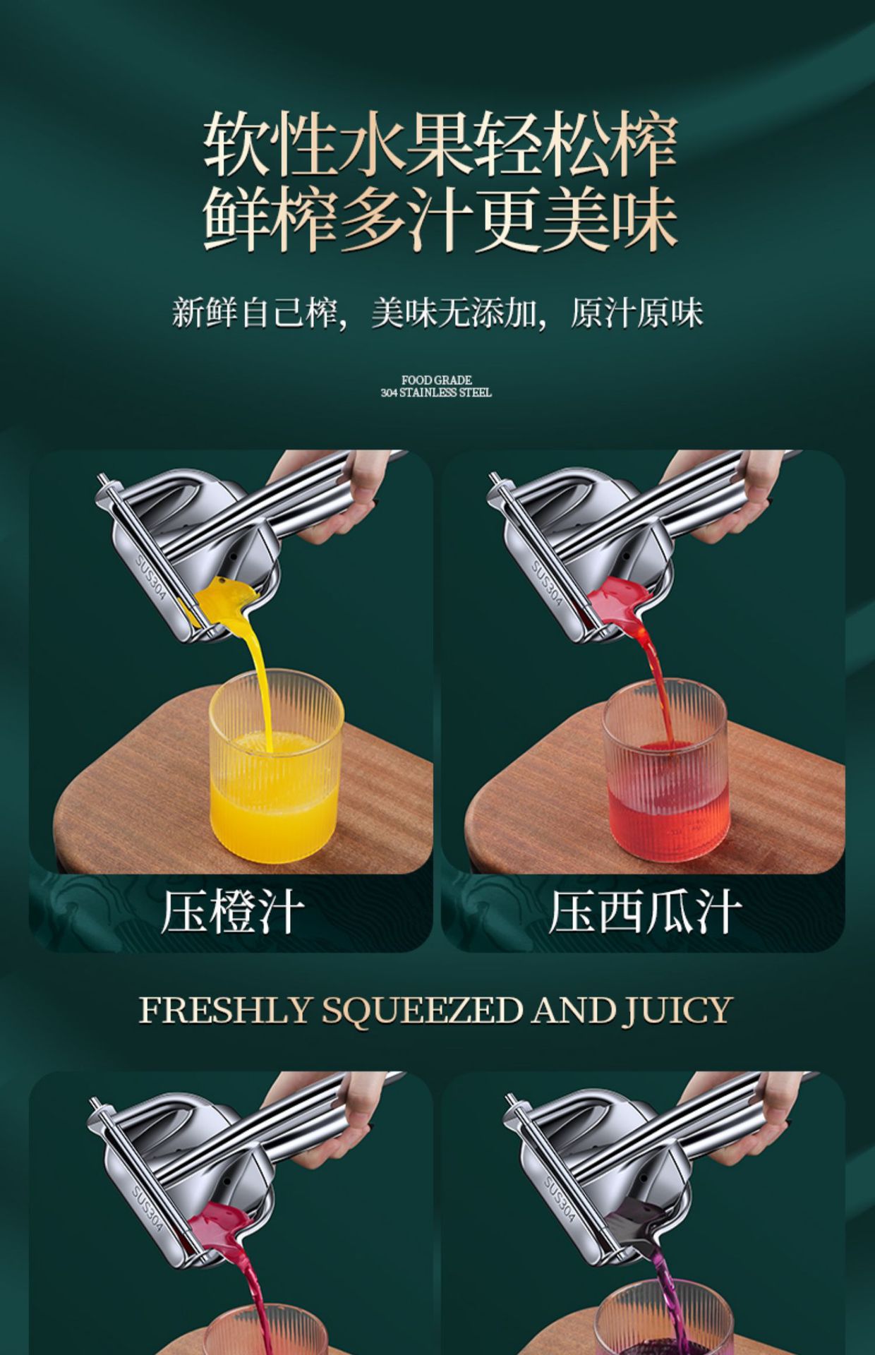 【3秒榨汁❗即榨即饮】304手动榨汁机甘蔗橙汁石榴压榨器压汁器柠檬西瓜鲜榨橙子挤压机。rh