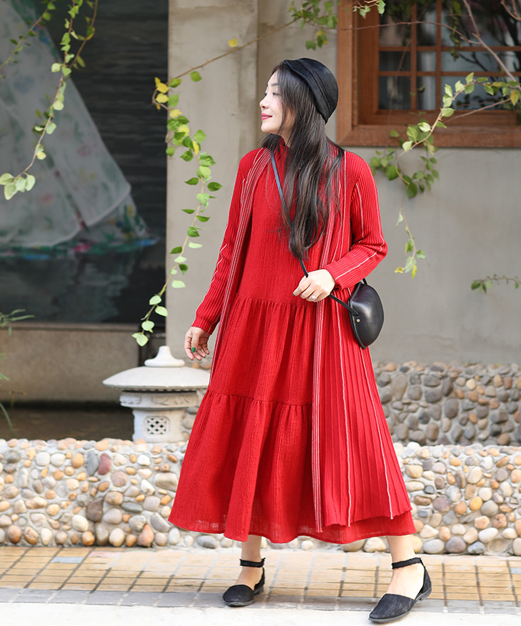 【林栖设计小店】新年红系列条纹羊毛混纺针织开衫酒红色