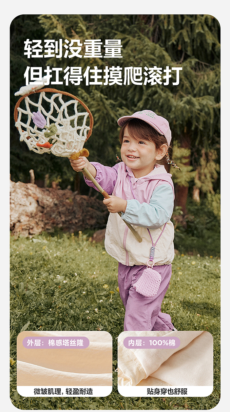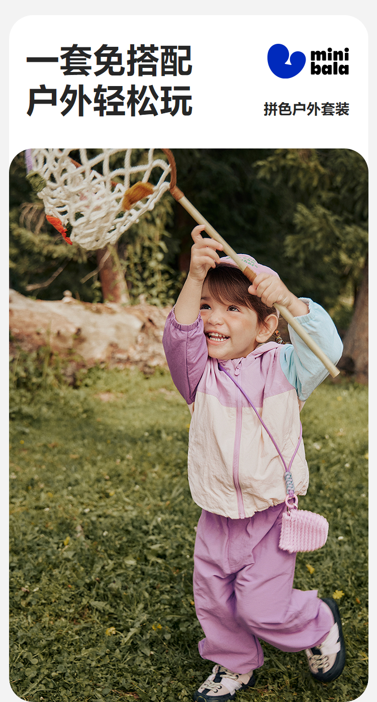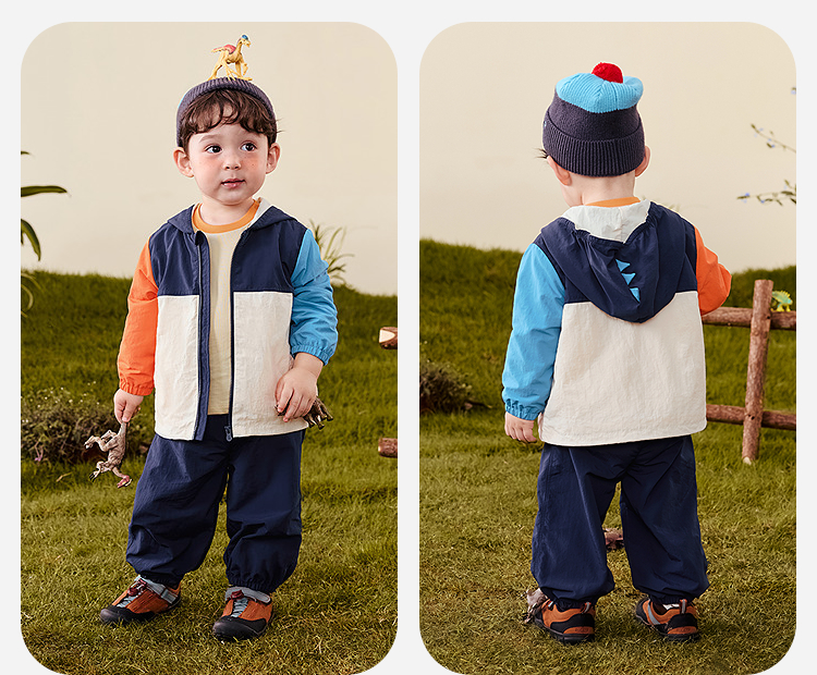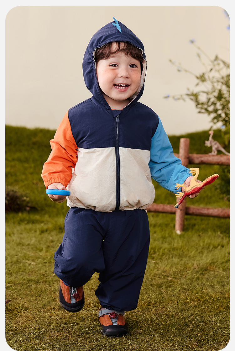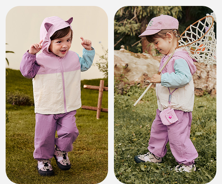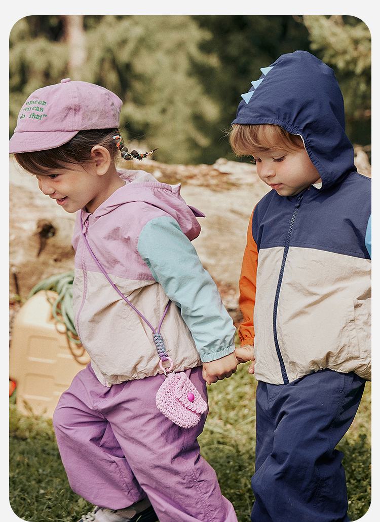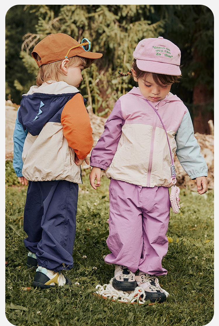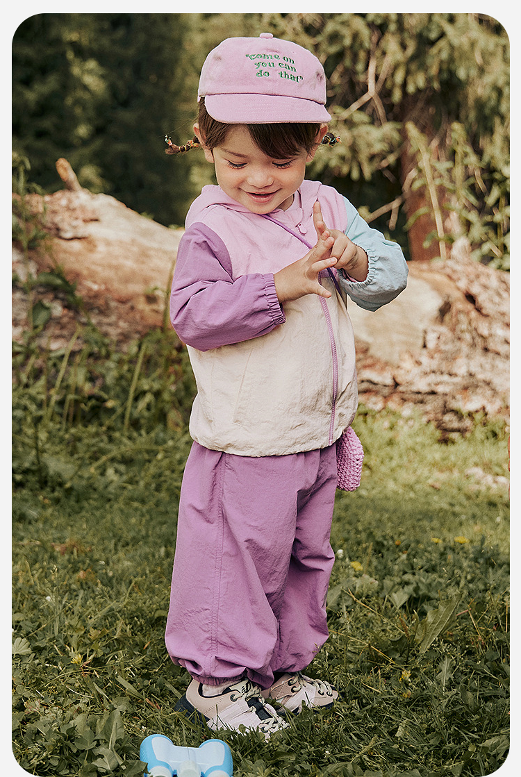迷你巴拉男女童连帽外套长袖套装拼色户外风两件套2025秋新品