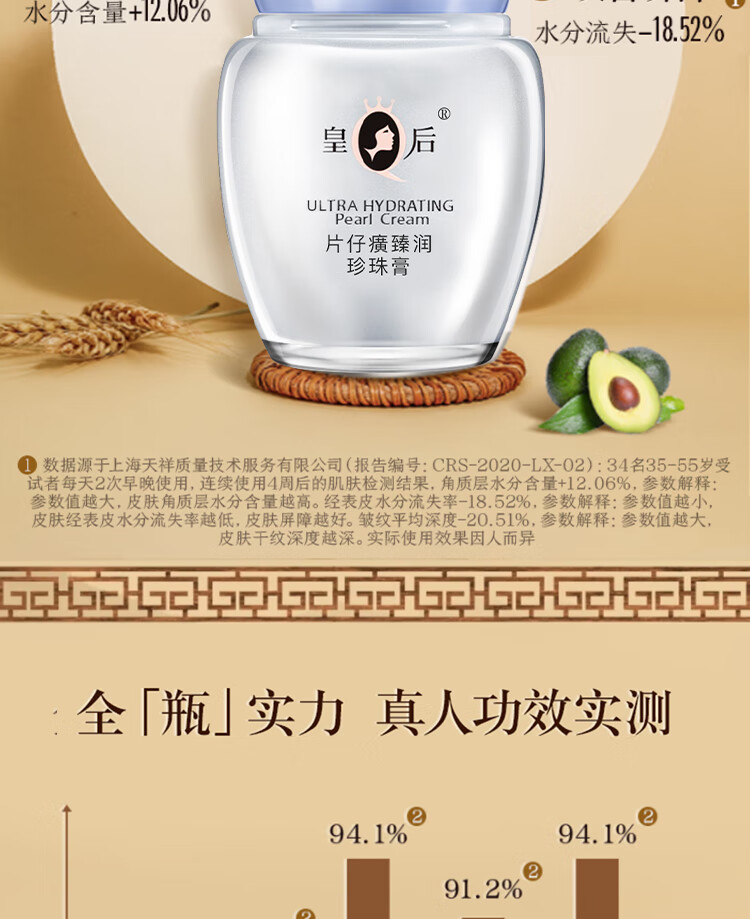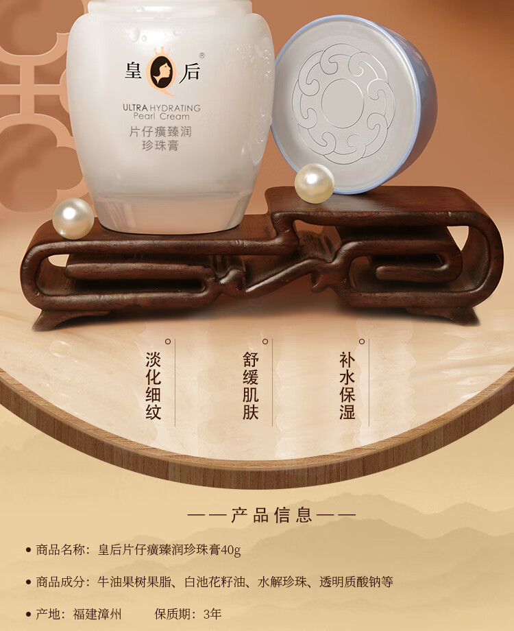 片仔癀皇后牌臻润珍珠膏40g 淡化细纹滋润保湿面霜护肤品