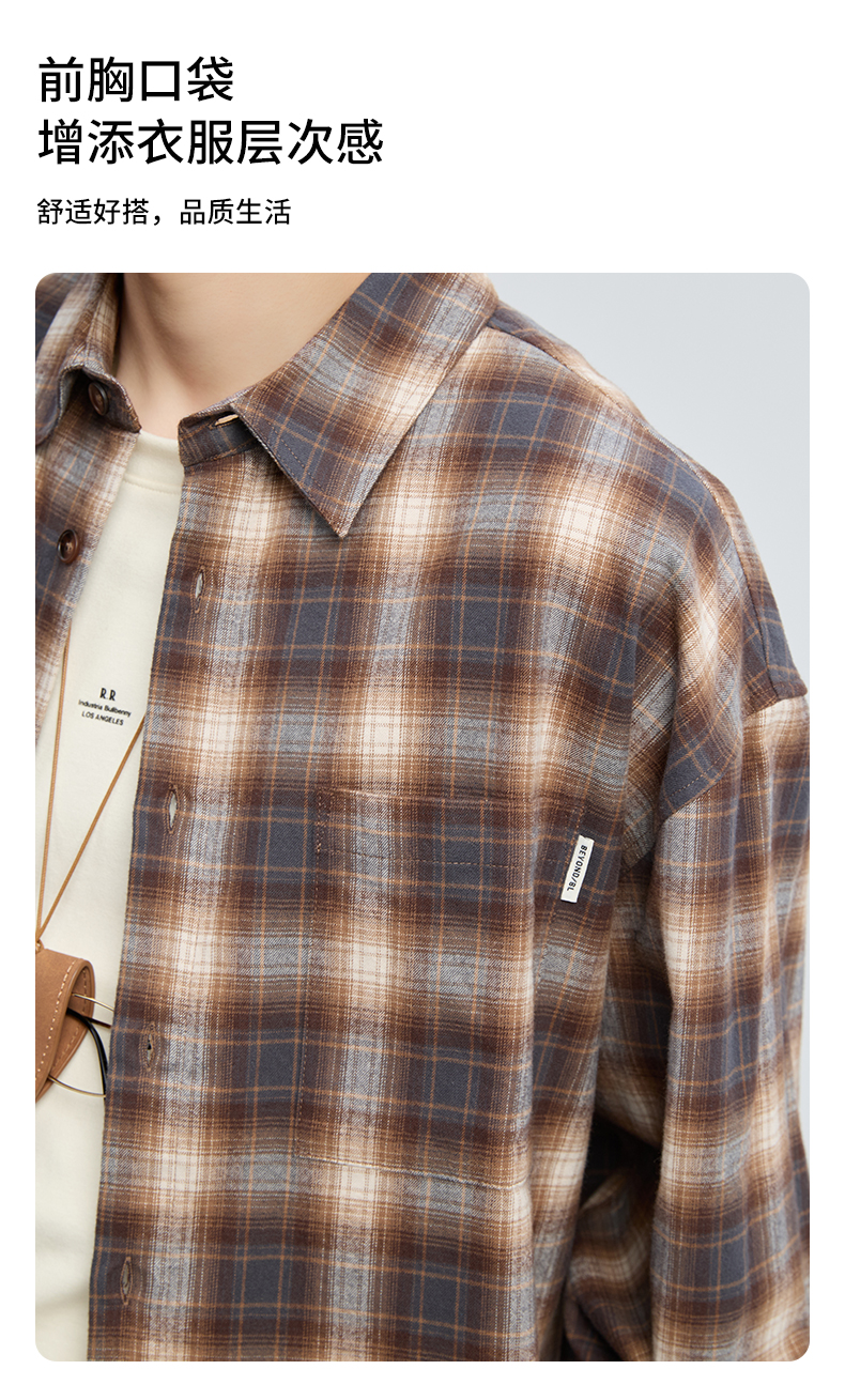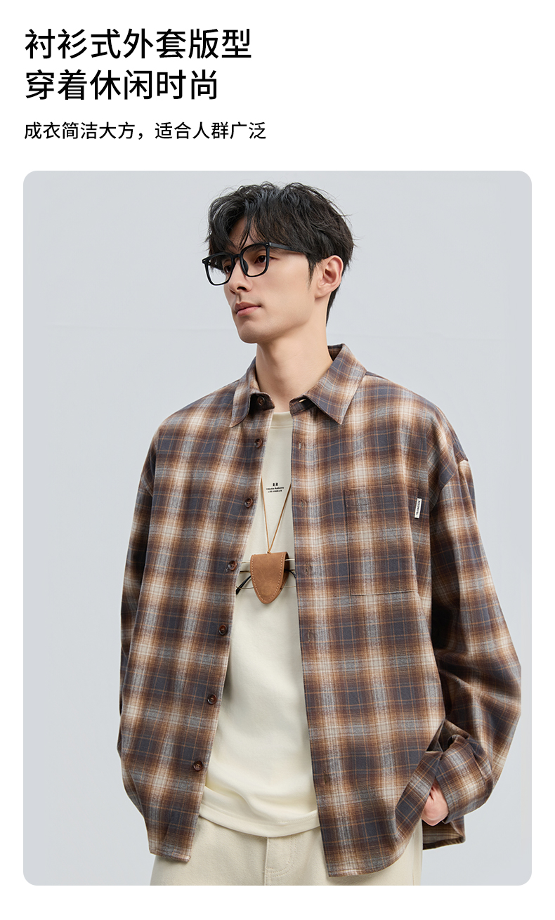 贝纳川2025秋季新品格子磨毛衬衣外套ECF311001
